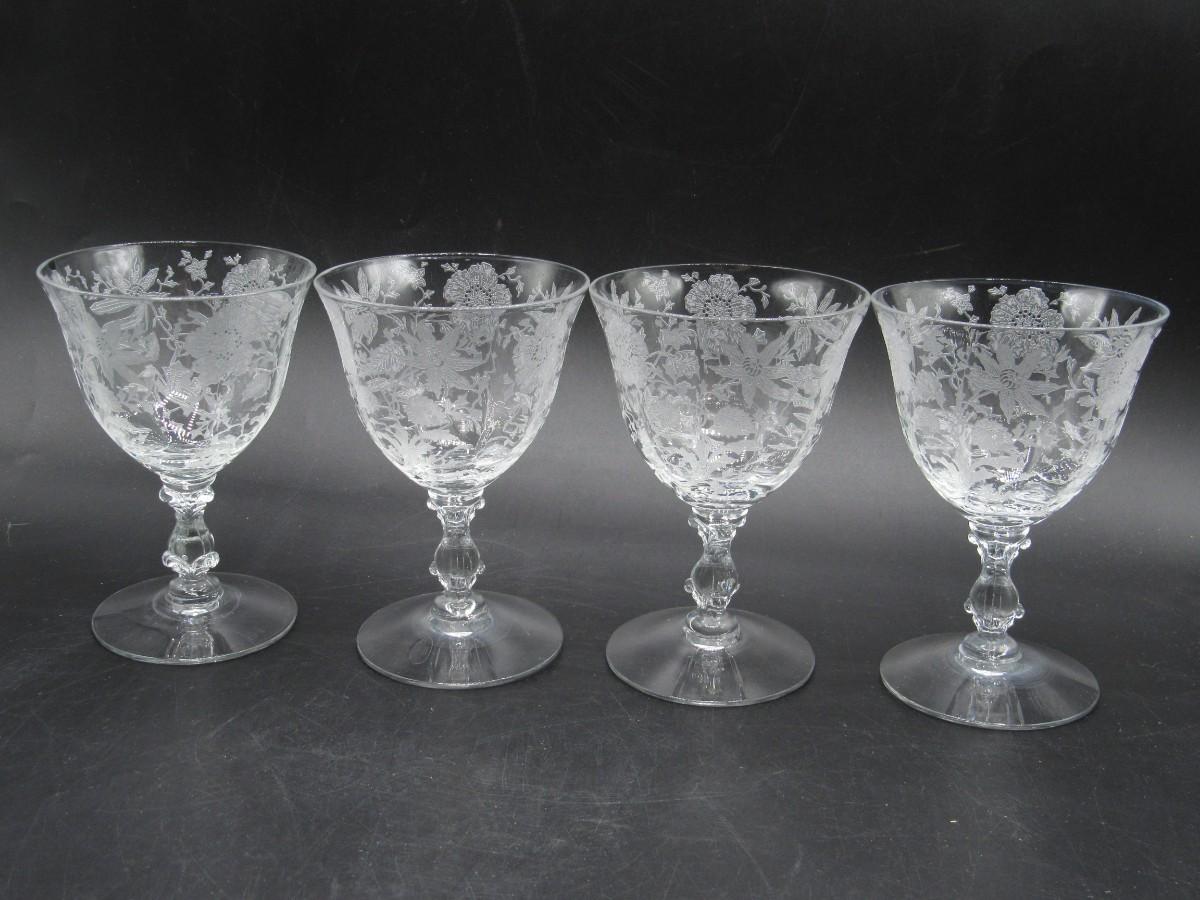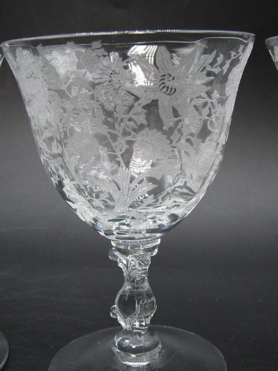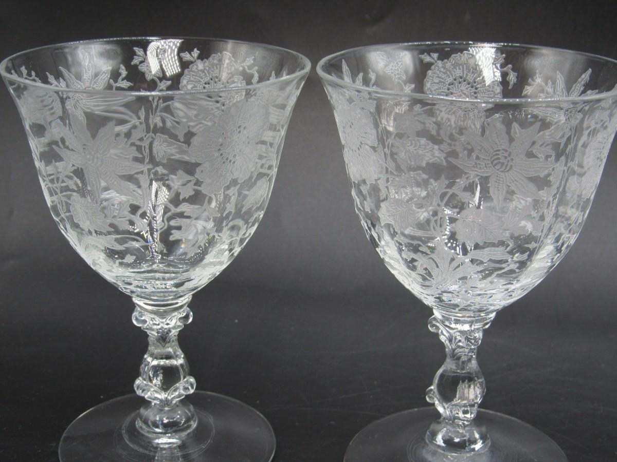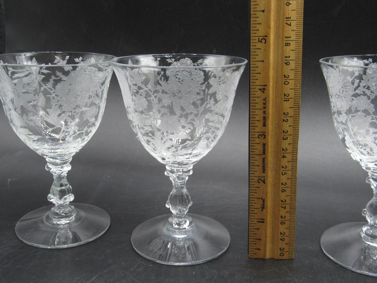 Lot of Vintage Cambridge Wildflower Pattern Stemmed Crystal Glass Champagne Drinking Glasses