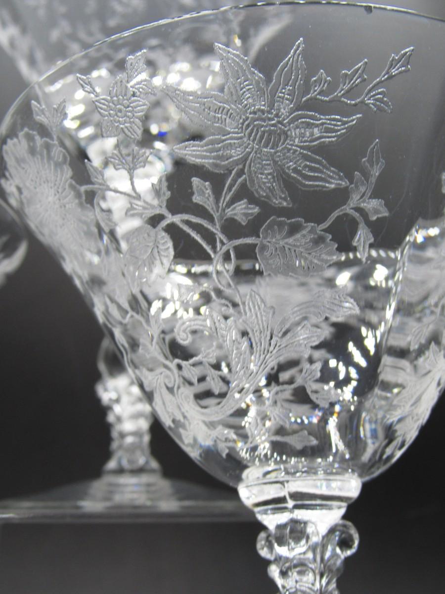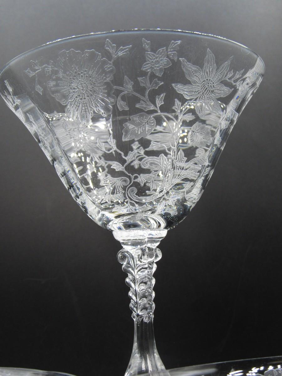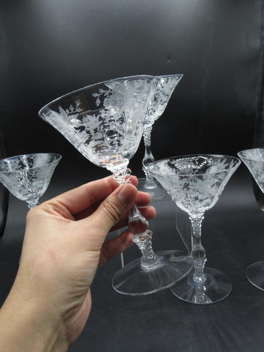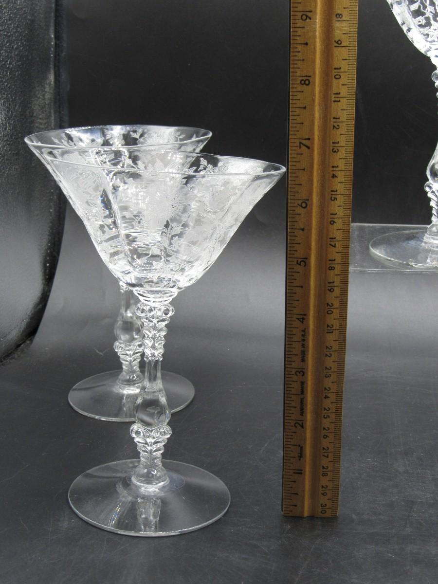 Lot of Vintage Cambridge Wildflower Pattern Martini Drinking Crystal Glasses