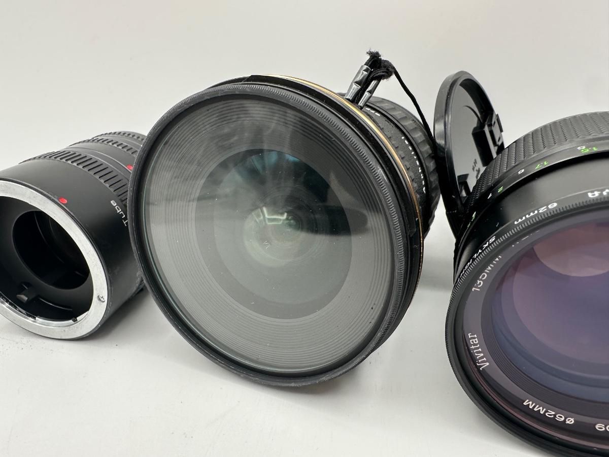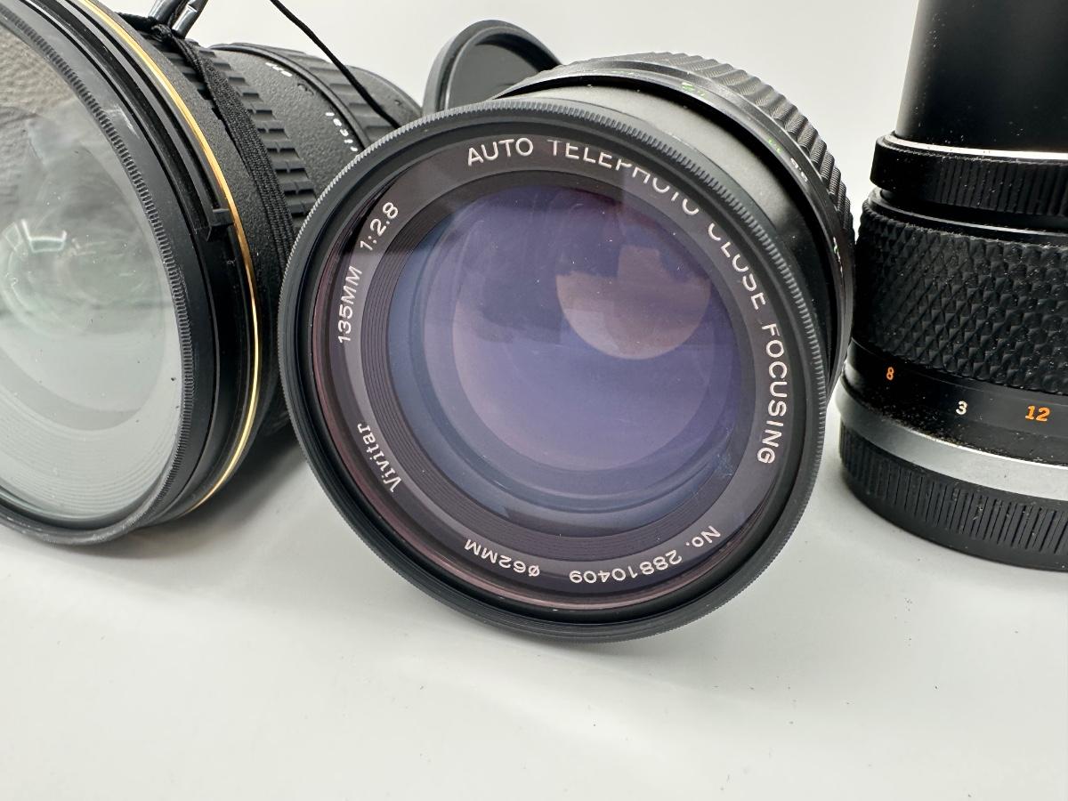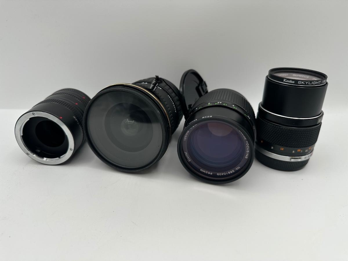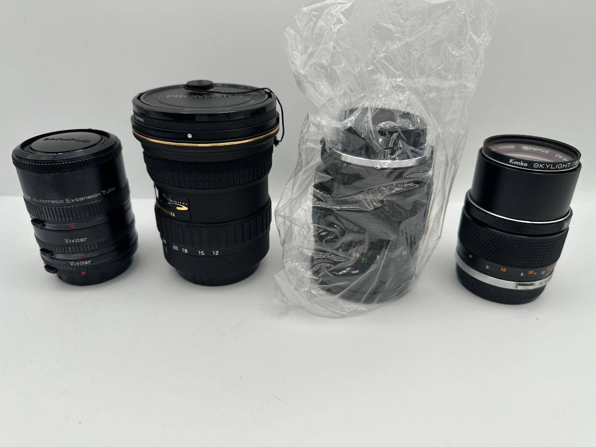 Lot of Vintage Camera Lenses – Vivitar 135mm f/2.8, Olympus OM-System 135mm, Promaster AF 12-24mm, Vivitar Extension Tube