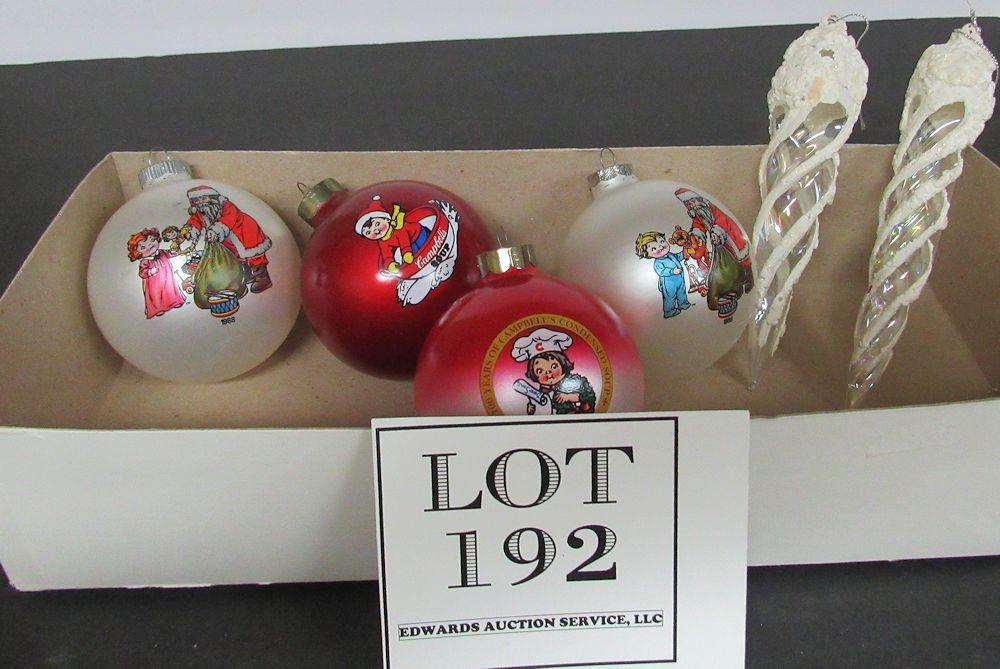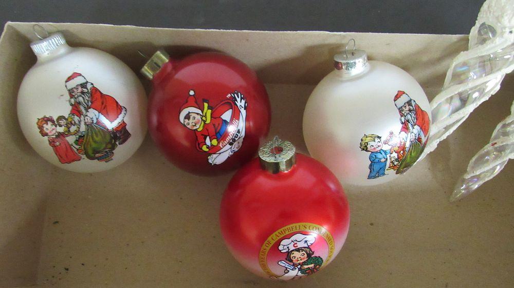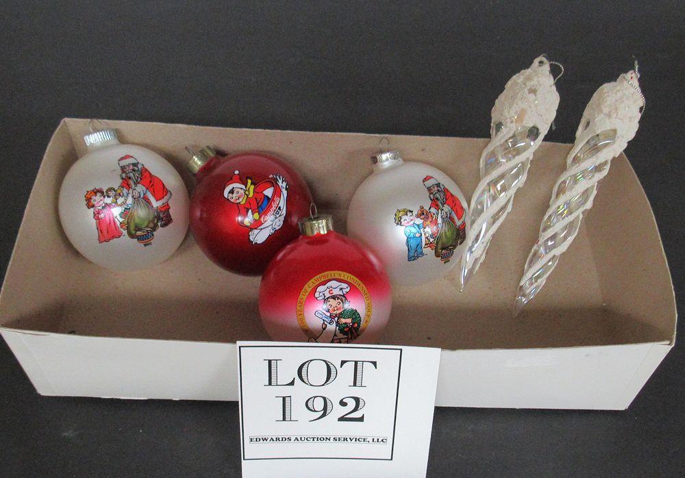 Lot of Vintage Campbell's Soup Glass Ornaments and Icicle Ornaments