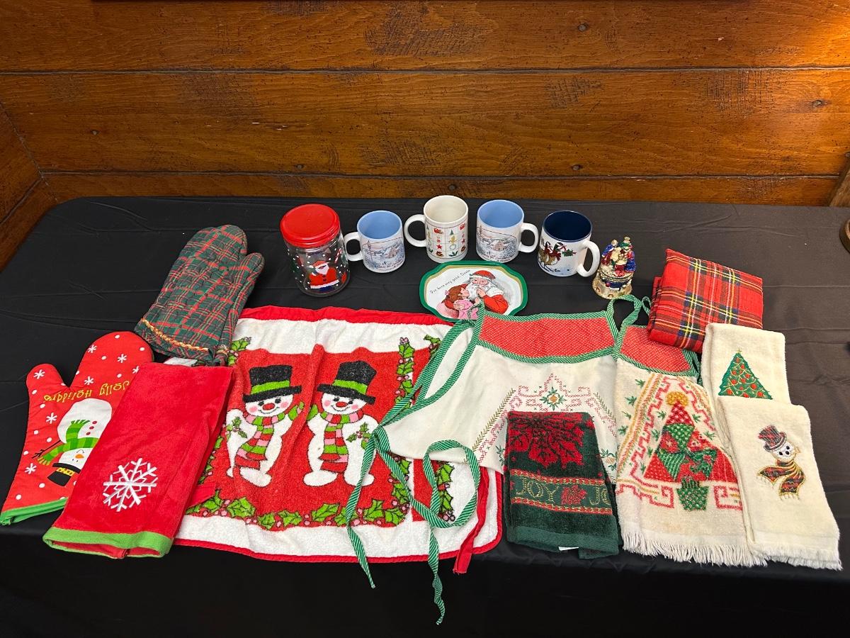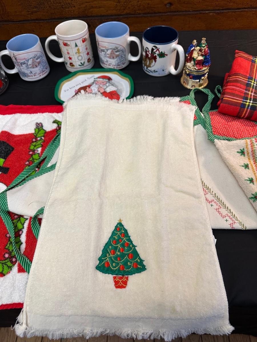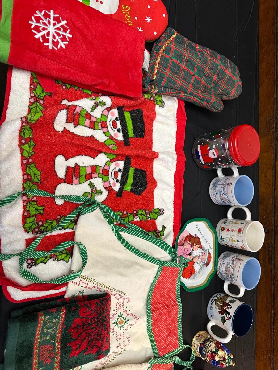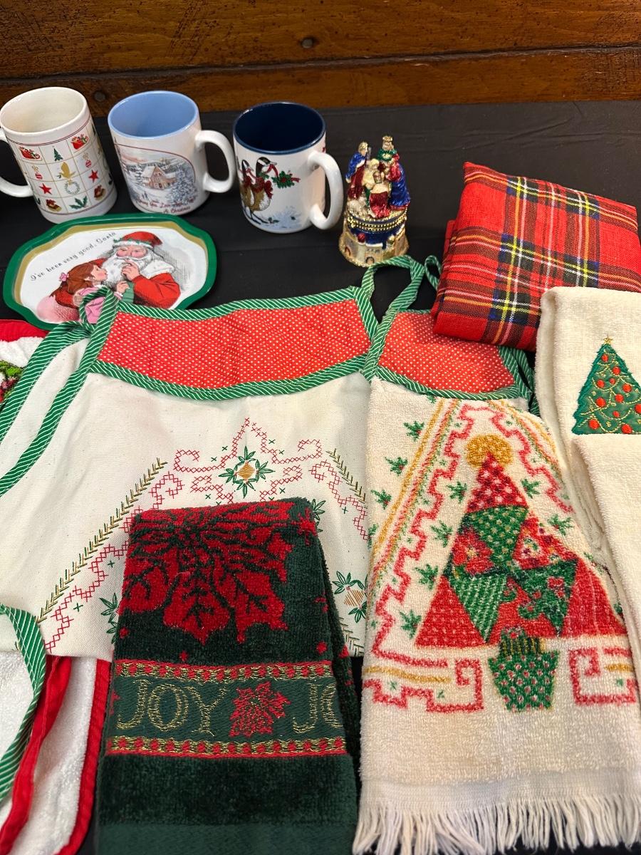 Lot of Vintage Christmas Decor including Mugs, Aprons and More!