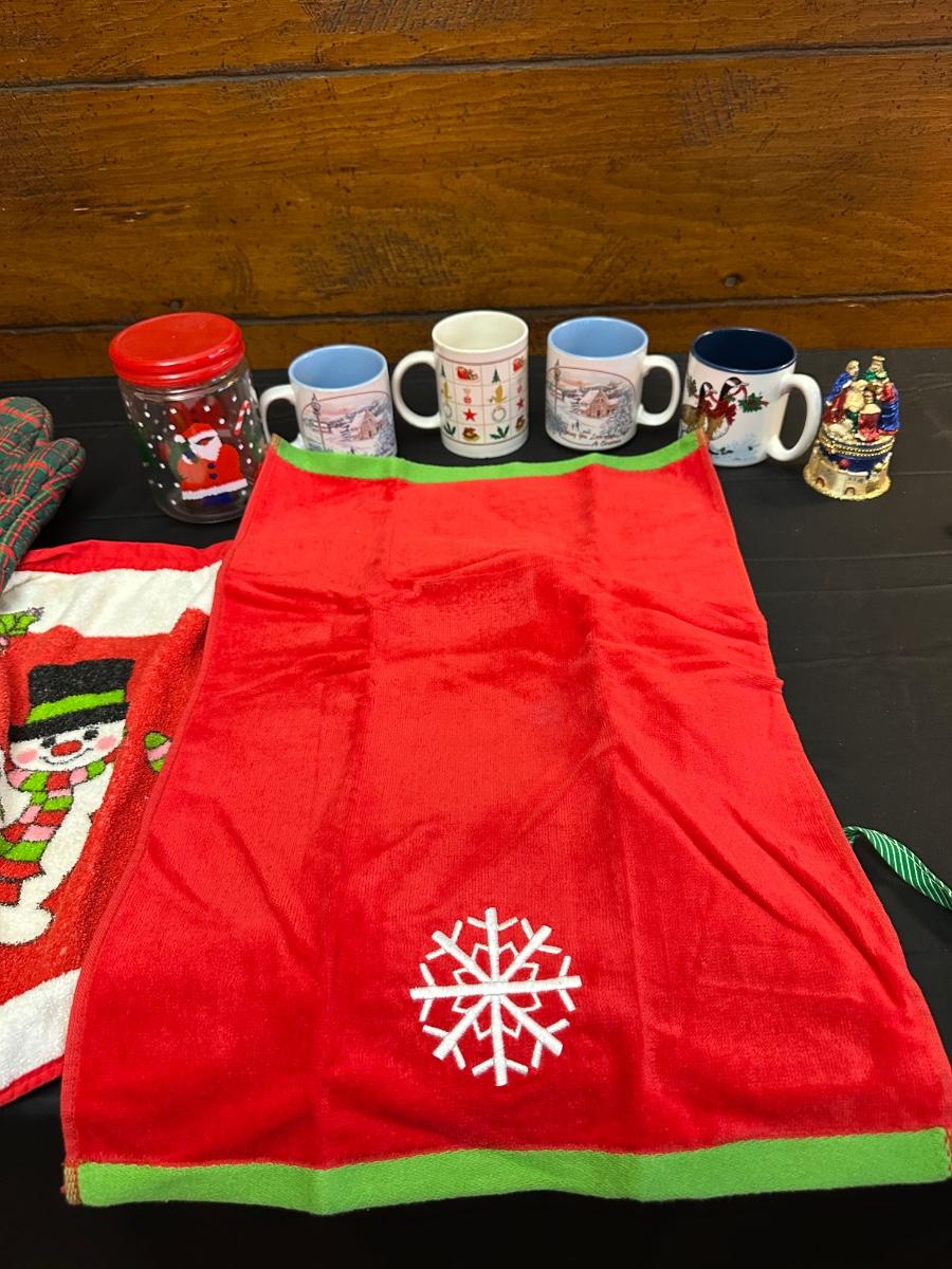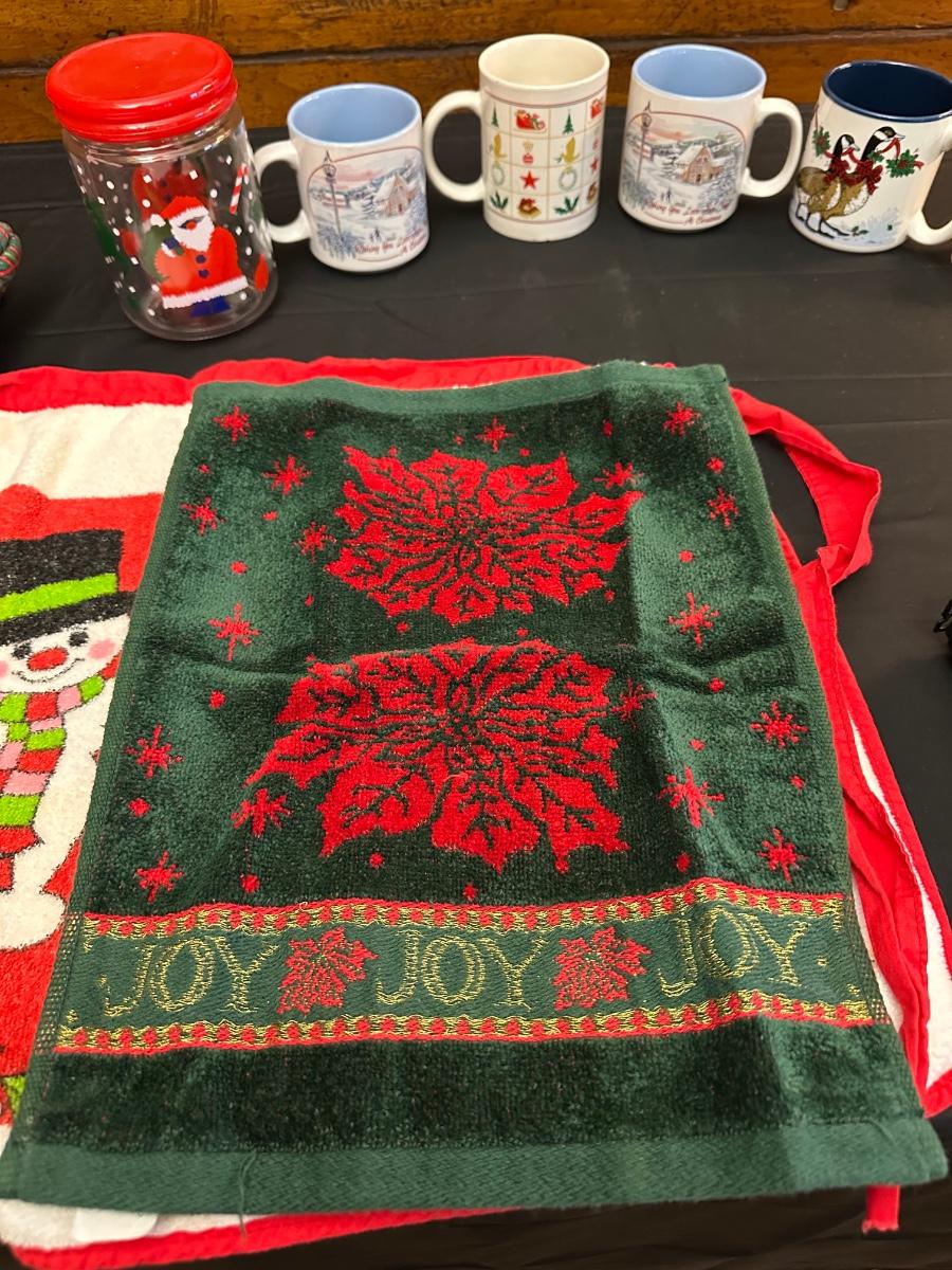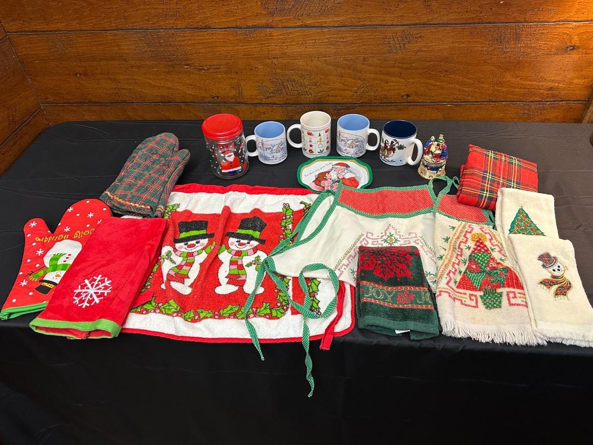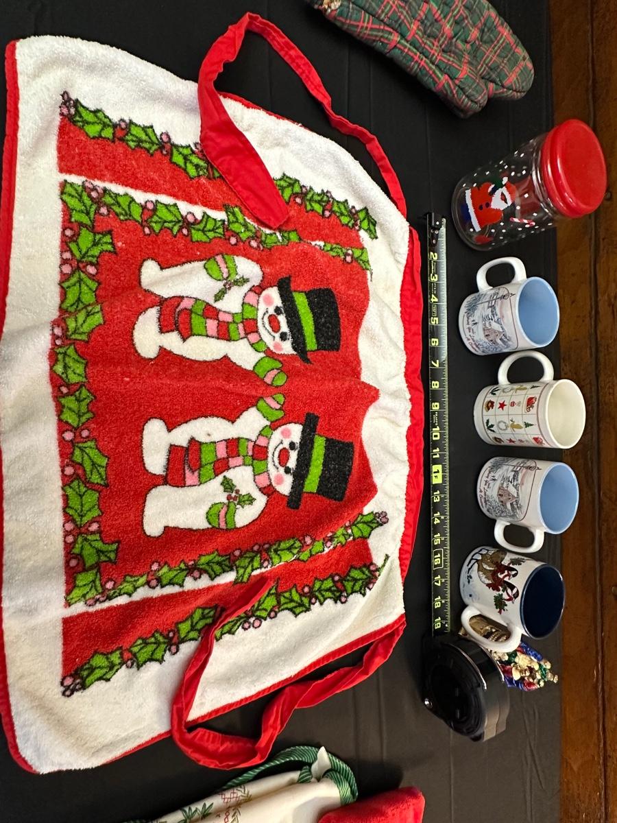 Lot of Vintage Christmas Decor including Mugs, Aprons and More!