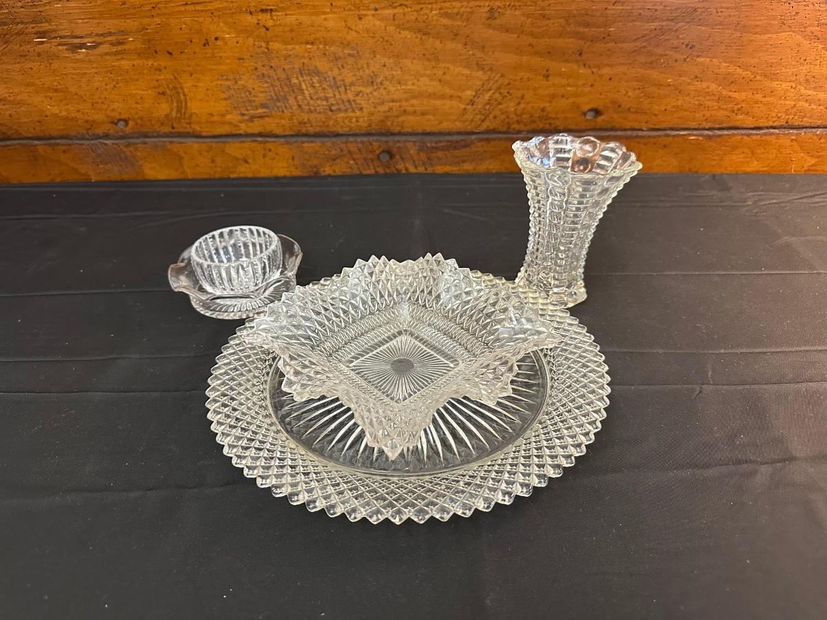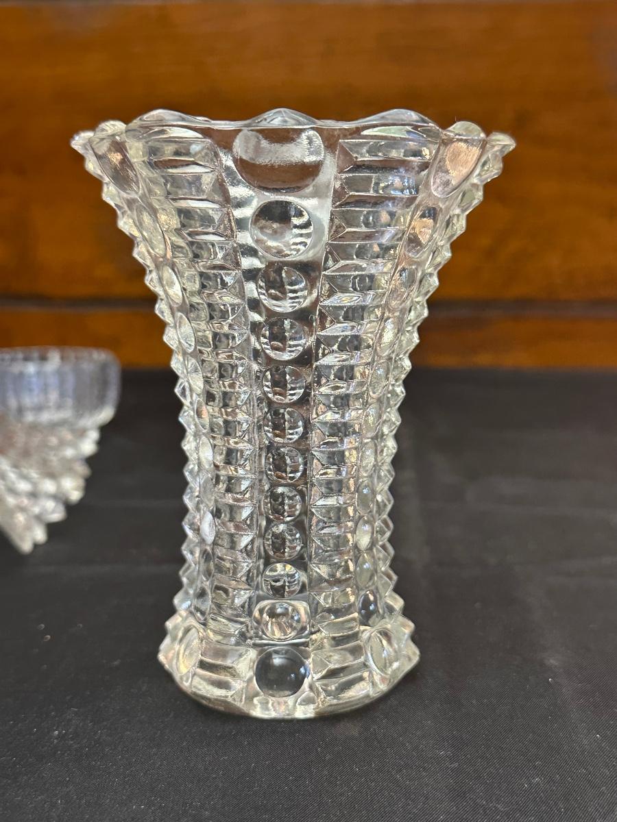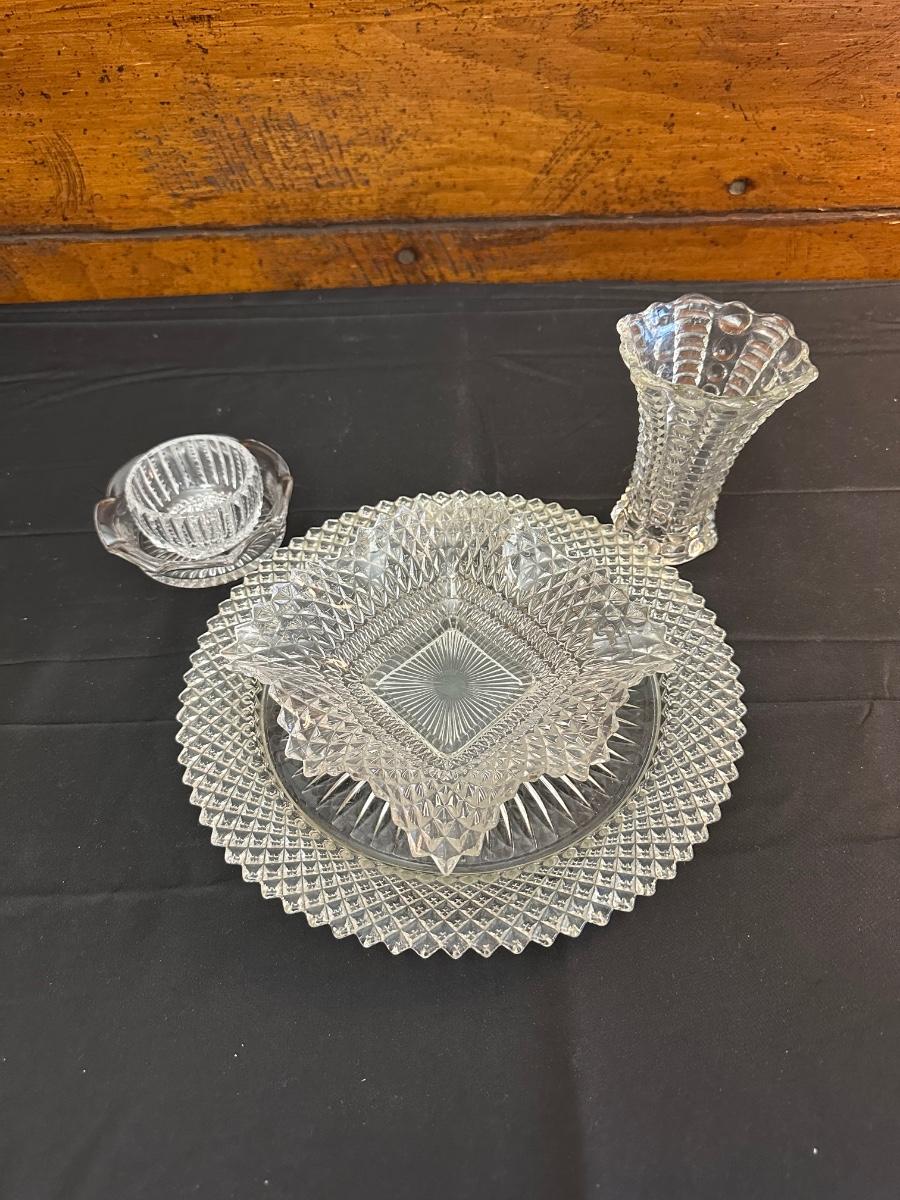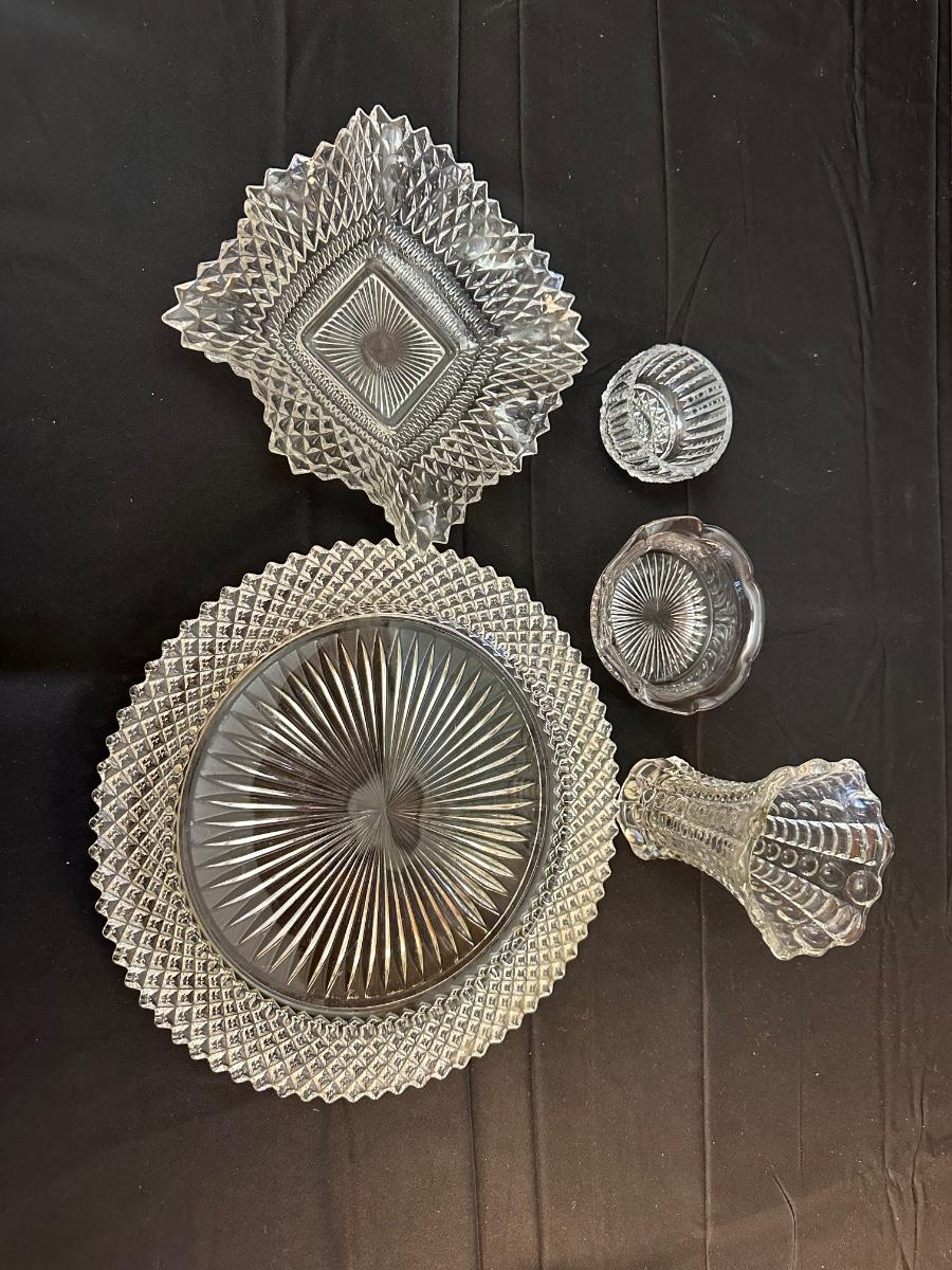 Lot of Vintage Clear Glass Dishes & Art Deco Style Vase