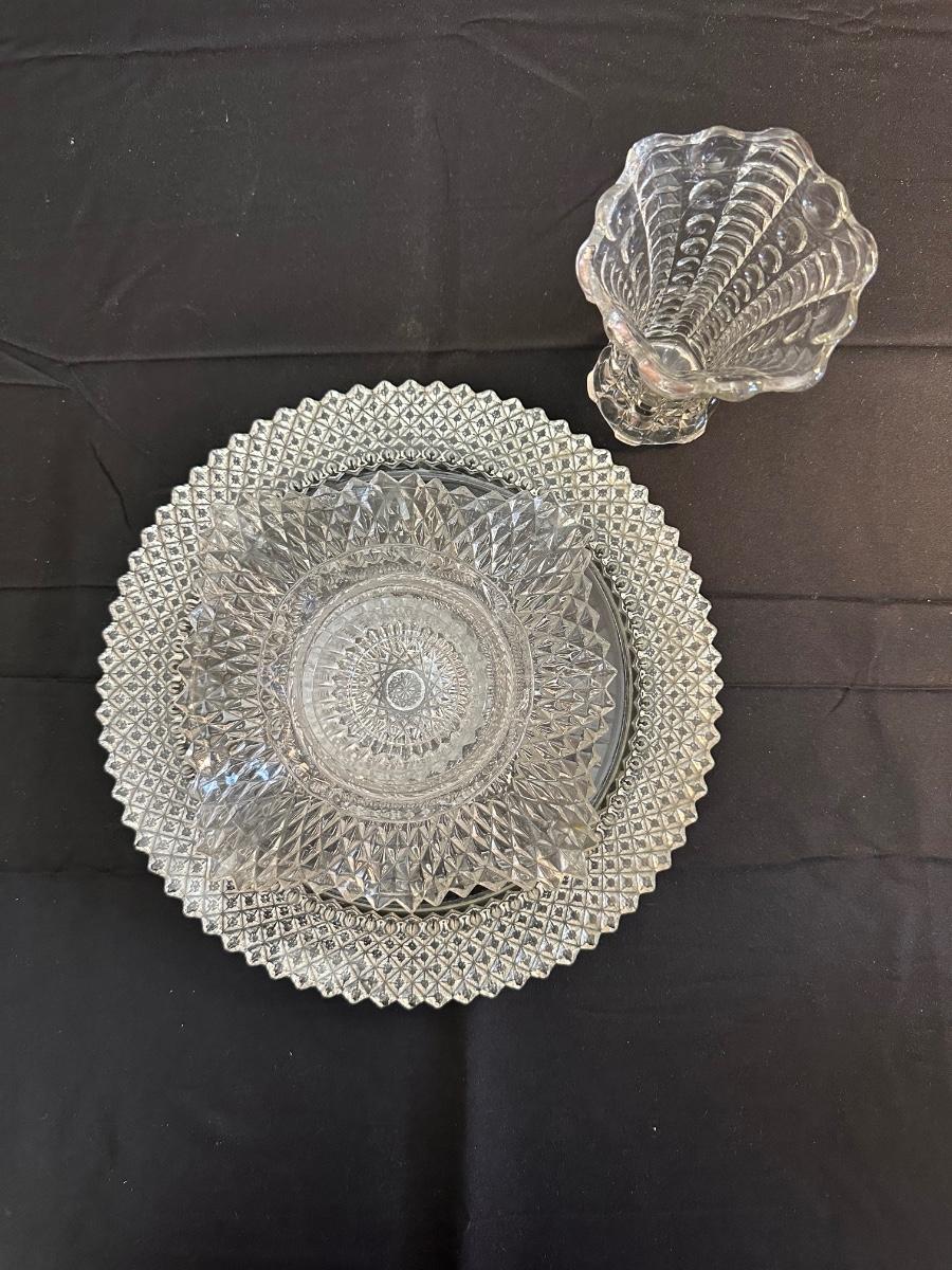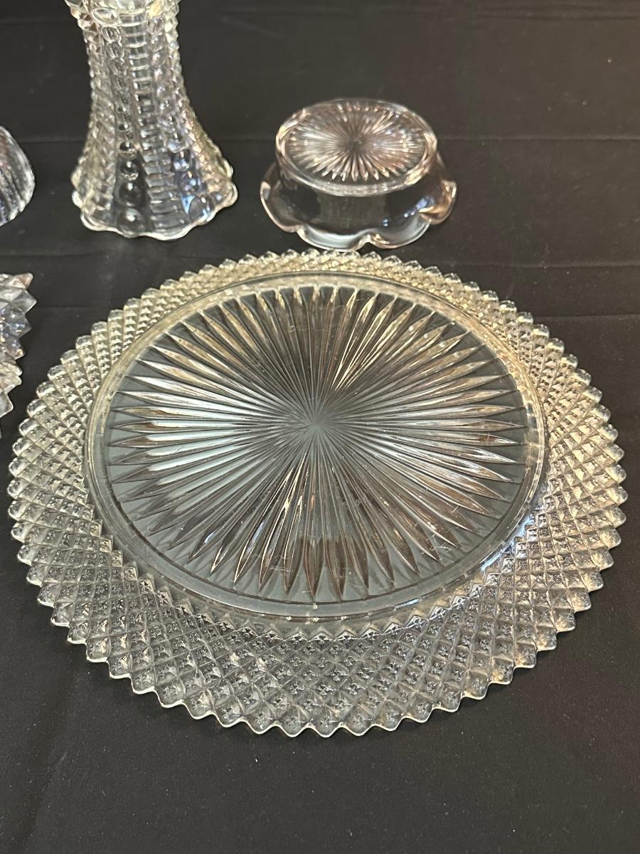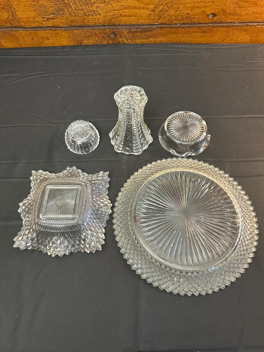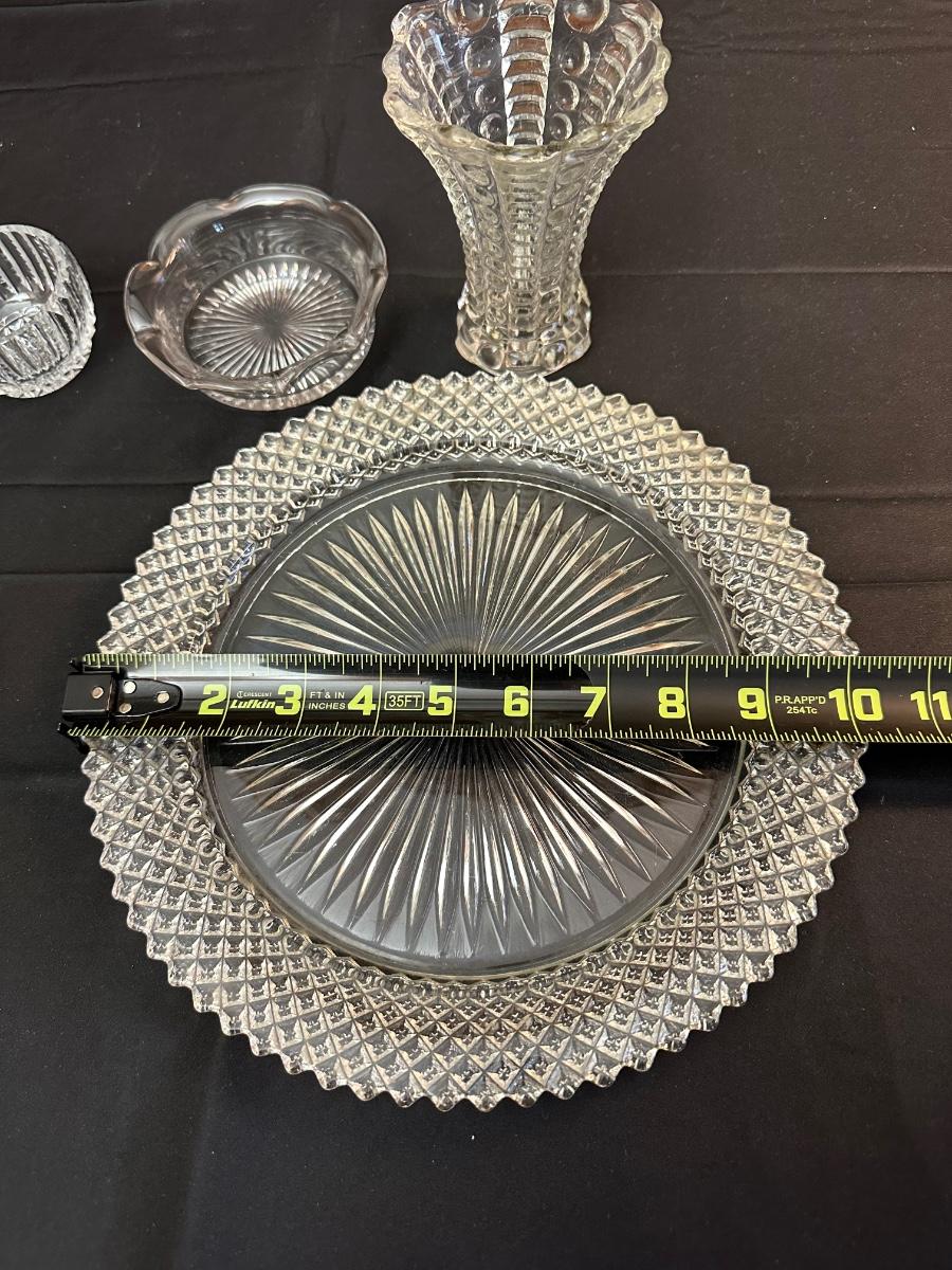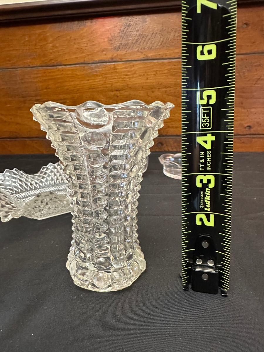Lot of Vintage Clear Glass Dishes & Art Deco Style Vase