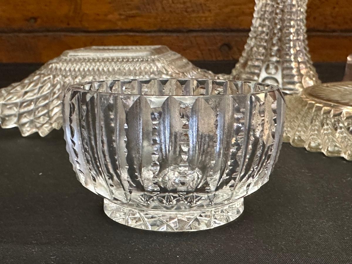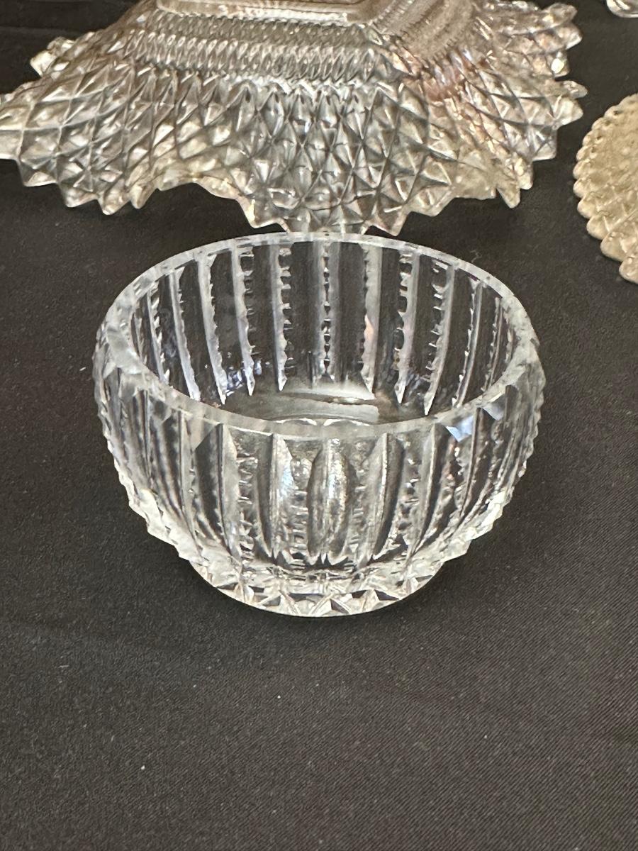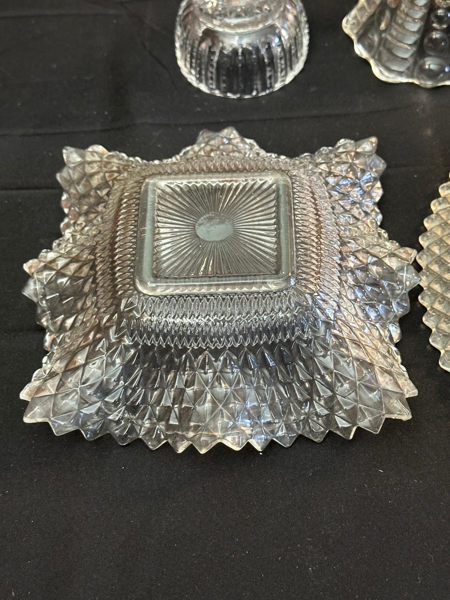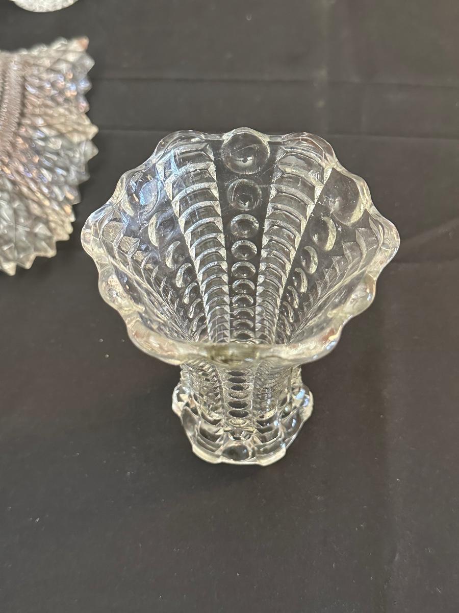 Lot of Vintage Clear Glass Dishes & Art Deco Style Vase
