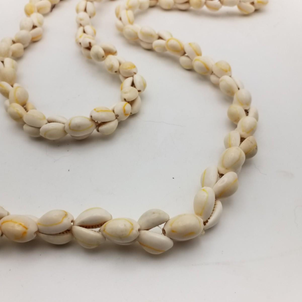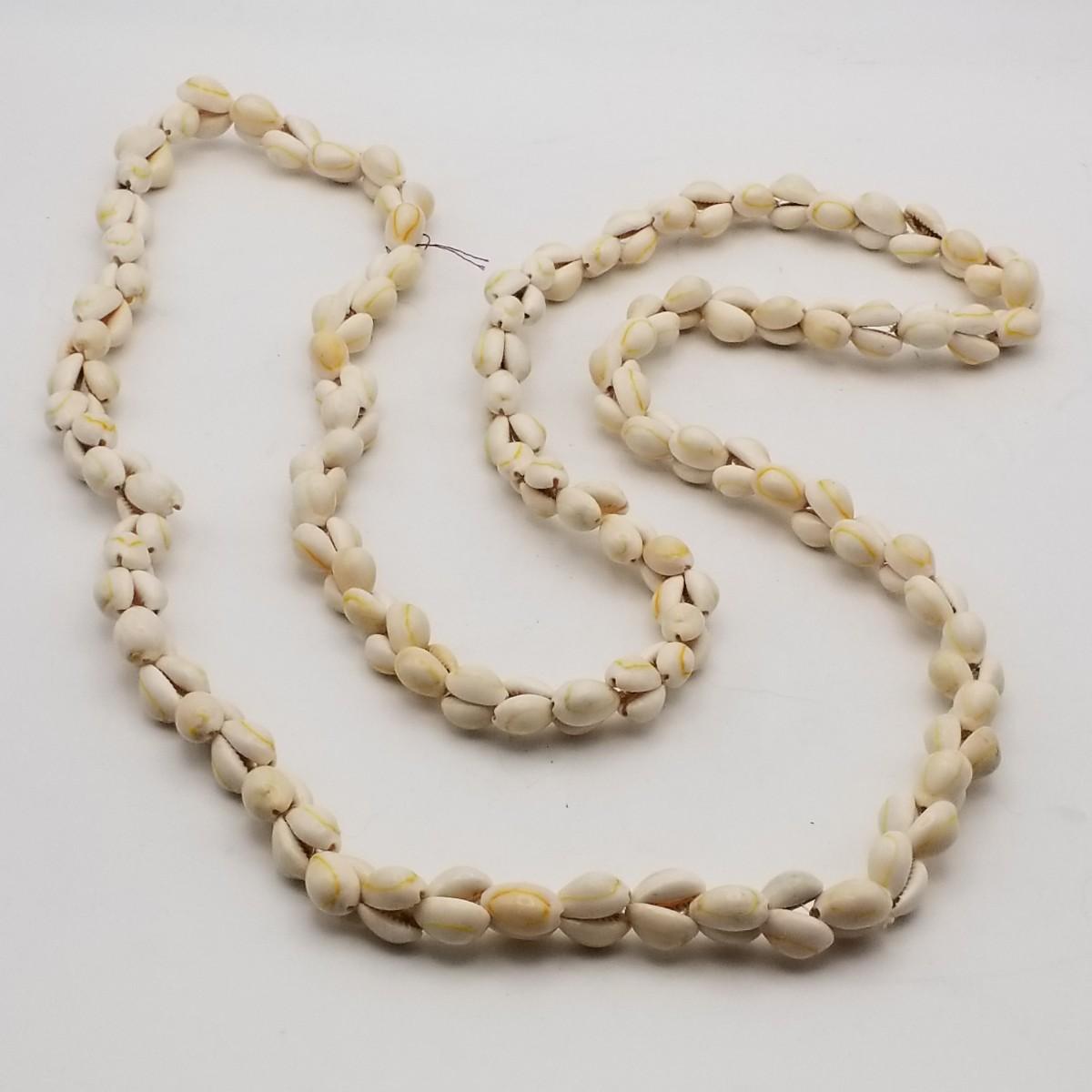 Long Cowrie Shell Necklace / Lei, approximately 52 inches long