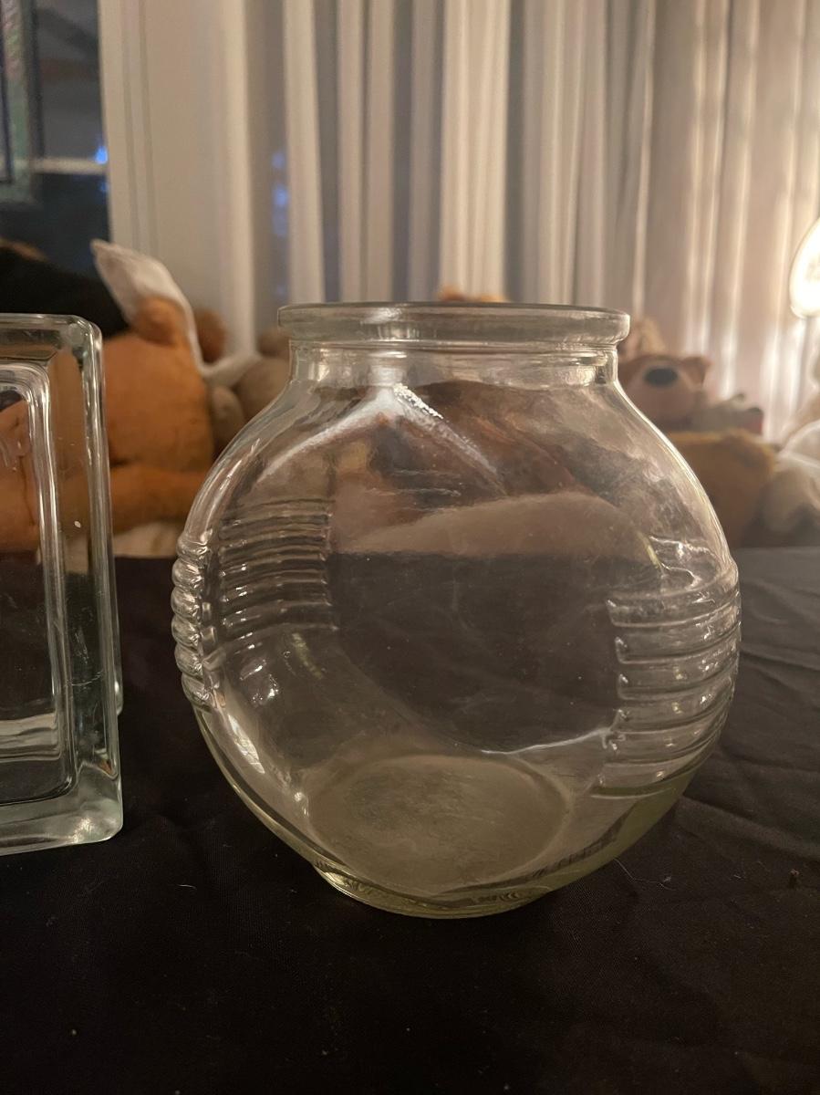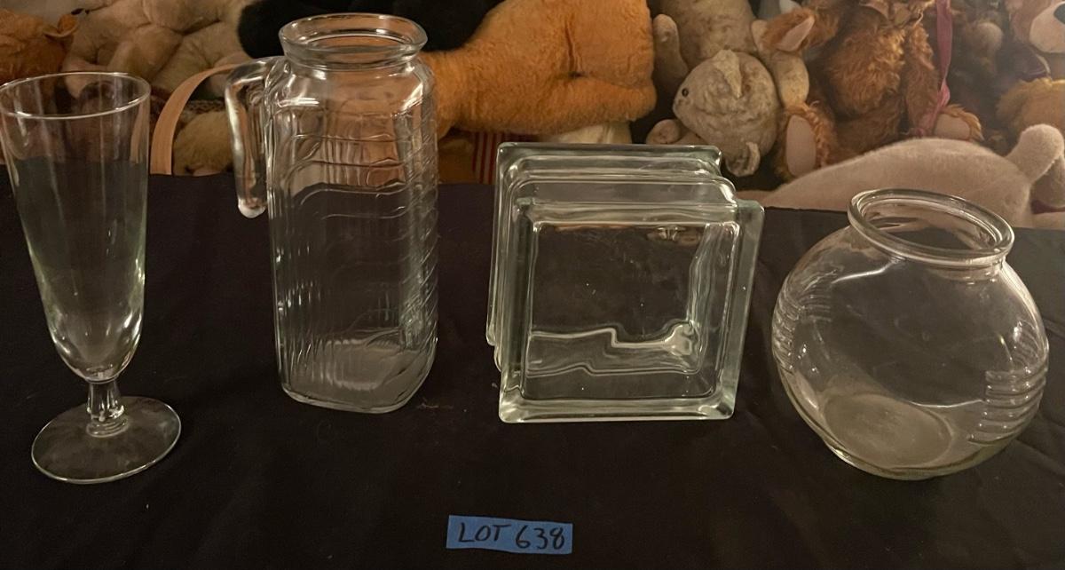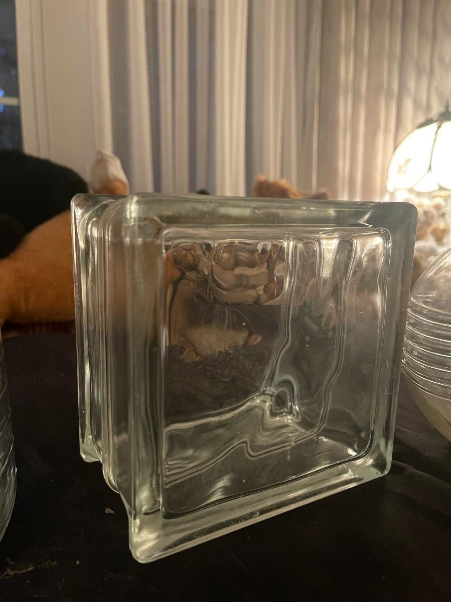 (4) piece vintage clear glass lot - unique block glass (looks like ice cube).
