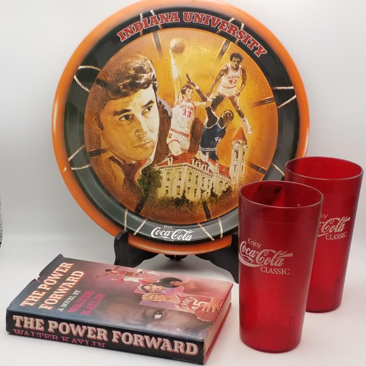 Title: Lot of Vintage Coca-Cola / IU / Basketball: Indiana University Basketball Bobby Knight 1976 Coca Cola Commemorative Tray, "The Power Forward" Book / Novel by Walter Kaylin, Set of 2 Red Plastic Coca Cola Classic Cups