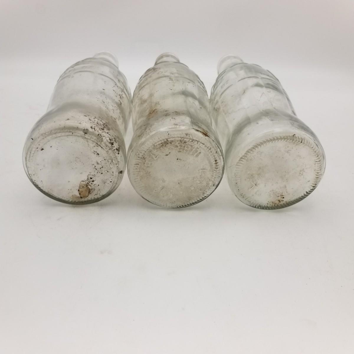 Set of 4 Soda Pop Bottles, 3 clear, 1 translucent Green tint with Rockville IND / Indiana mark on the bottom (See photo), approximately