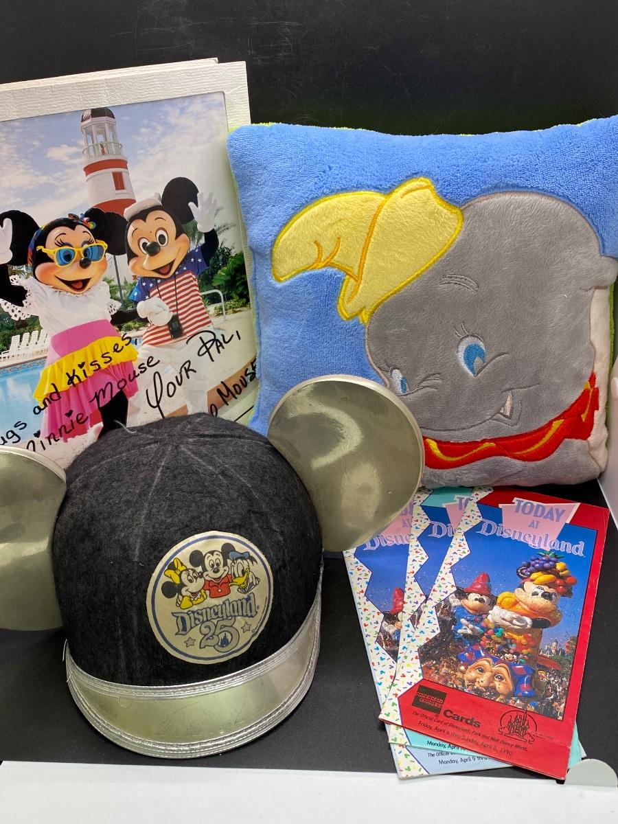 Lot of Vintage Collectible Disneyland 25th Anniversary Mickey Mouse Ears, Park Maps, Signed Photo & More