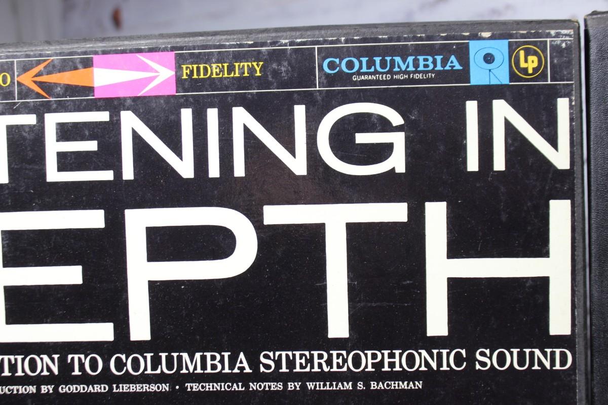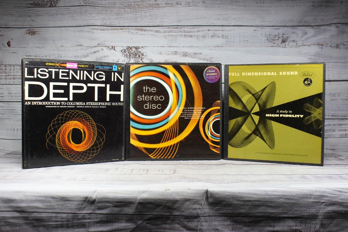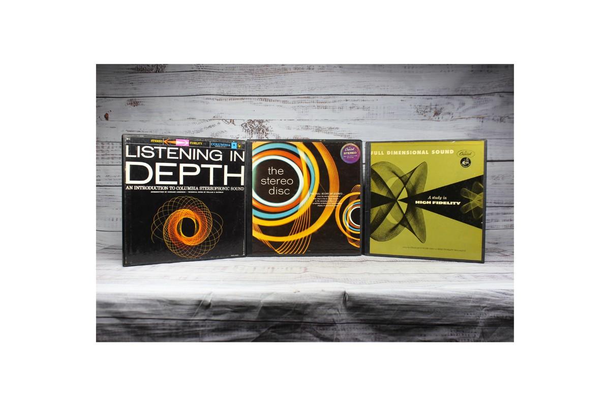 Lot of Vintage Columbia & Capitol Stereophonic Listening Records, there is no significant damage to the album covers or the inserts and is in good vintage condition. The records have not been played or tested and has only been check for completeness. The lot includes: Listening in Depth an Introduction to Stereophonic Sound, The Stereo Disc (Capitol Records), Full Dimensional Sound a Study in High Fidelity.