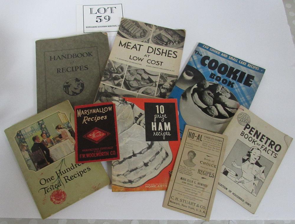 Lot of Vintage Cookbooks and Pamphlets, 1918 Handbook of Recipes, 1941 Cookie Book, 1934 Meat Dishes, More