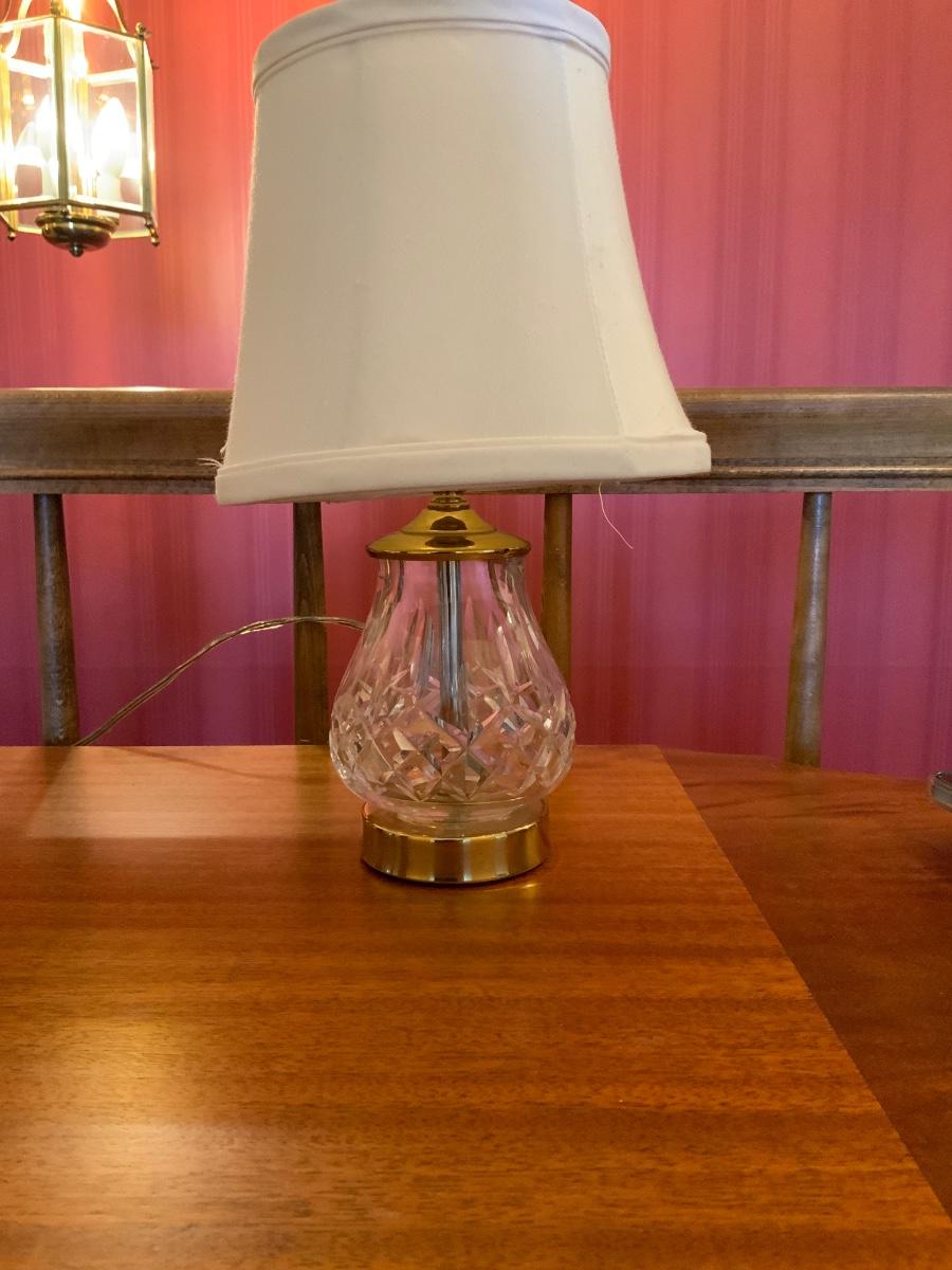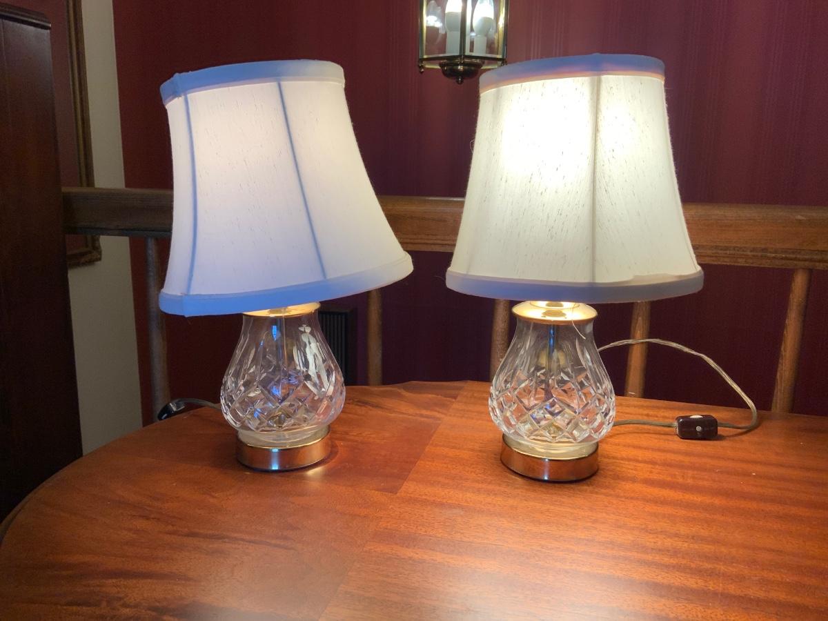 Lot of Vintage Waterford Crystal and Gold toned table lamps with shades