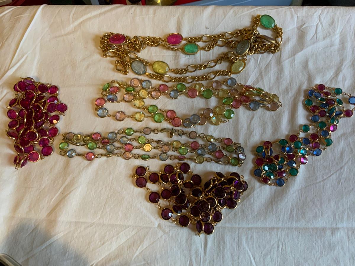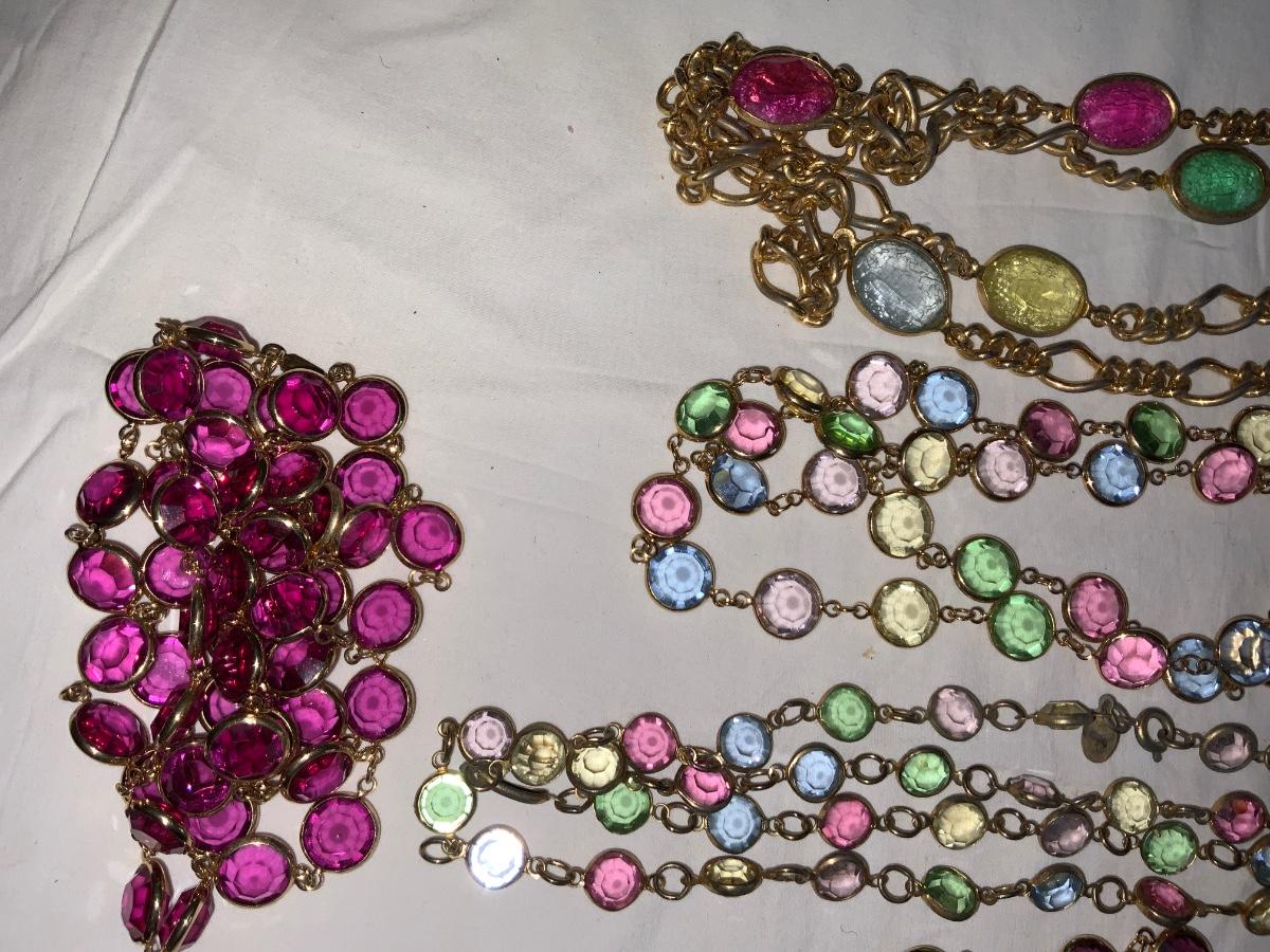 Nice set of Vintage Crystal Bezel Necklaces. Some have makers marks. Great colors!