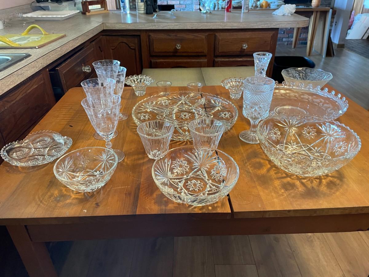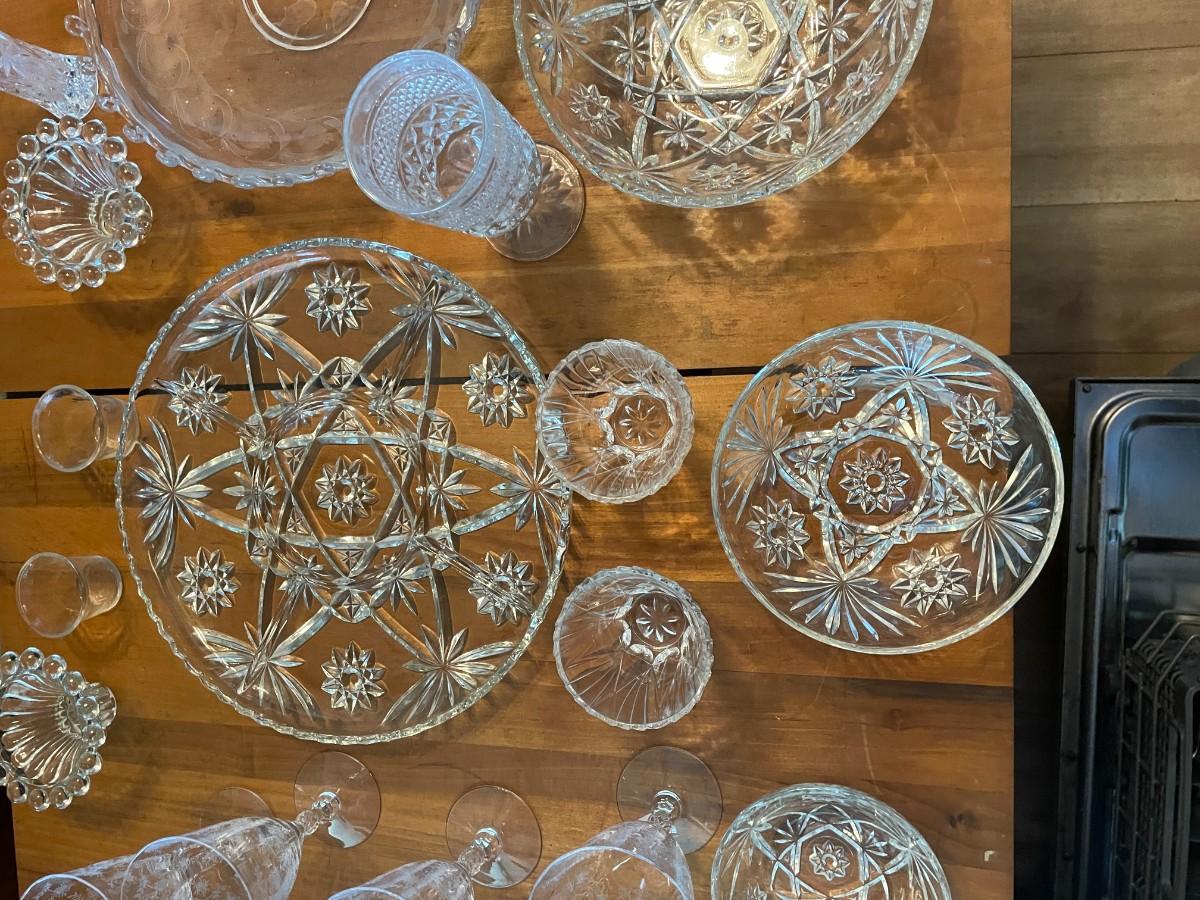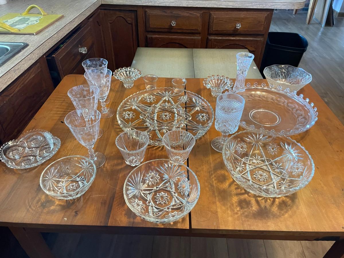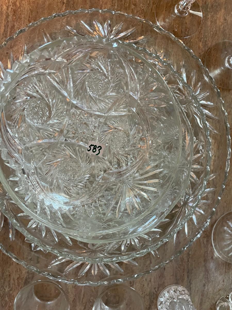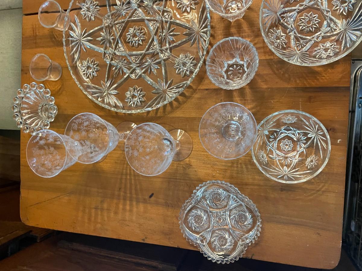 Lot of Vintage Crystal / Glass Platters, Bowls, Wine Glasses, etc.