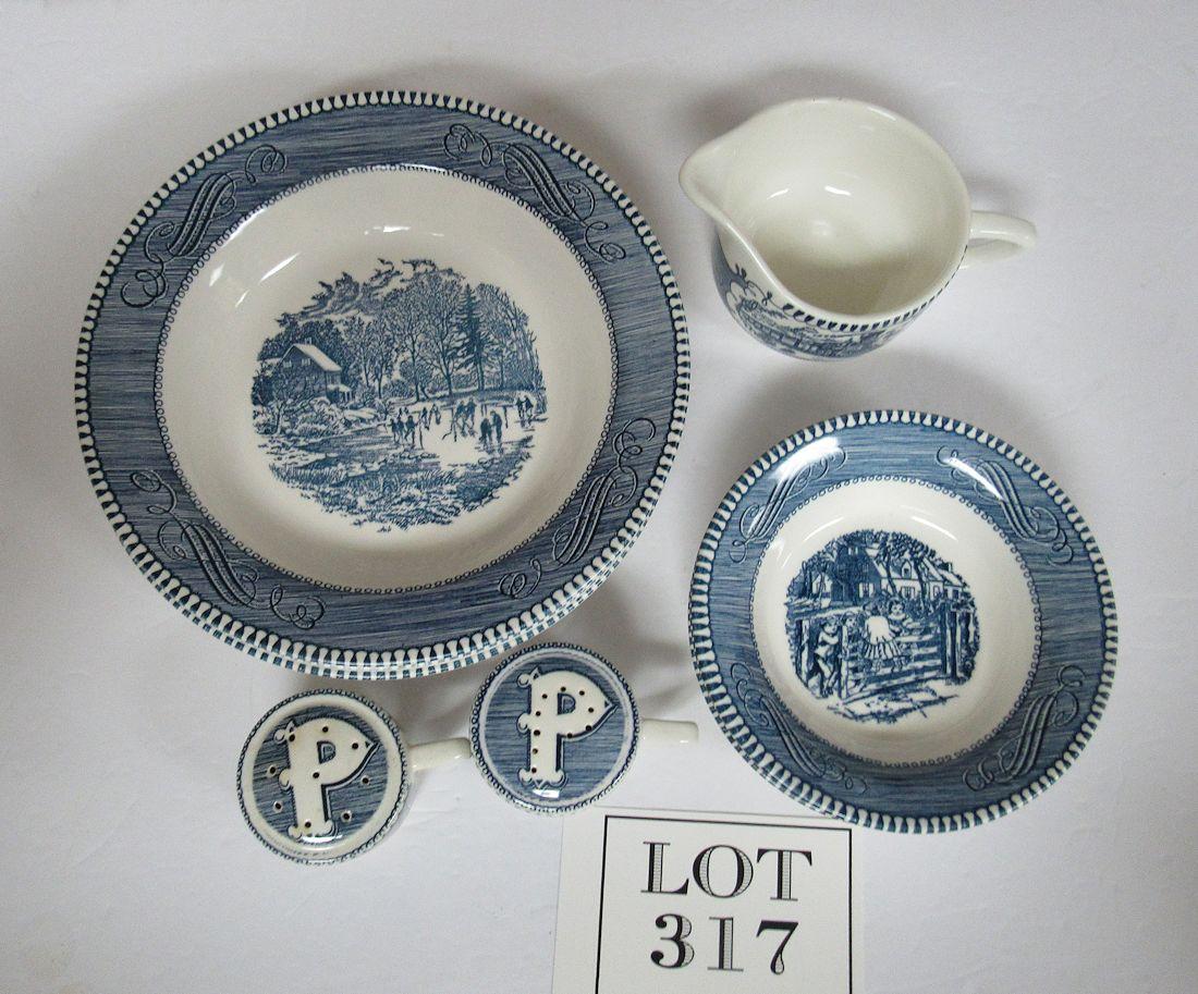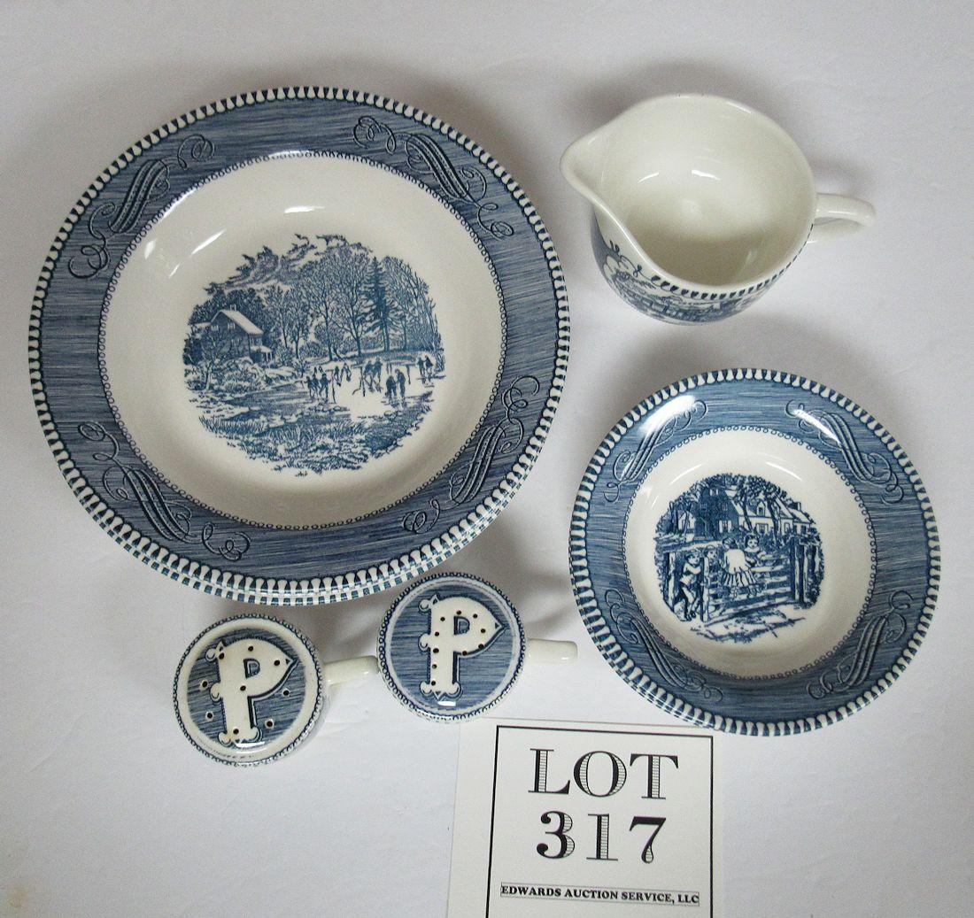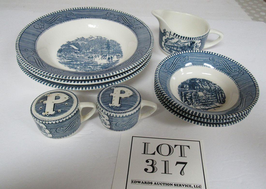 Lot of Vintage Currier and Ives 2 Soup Bowls, 2 Small Bowls, Creamer and 2 Peppers