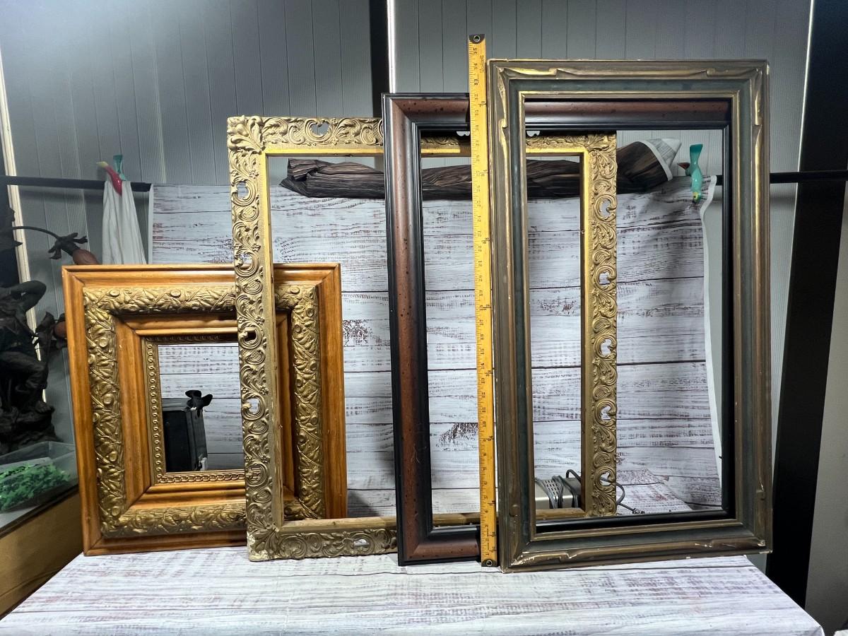 Lot of Vintage Decorative Photo Art Frames, there is some vintage wear to the frames, but there is no significant damage and is in overall fair useable condition. Check pictures for more details and for sizing.