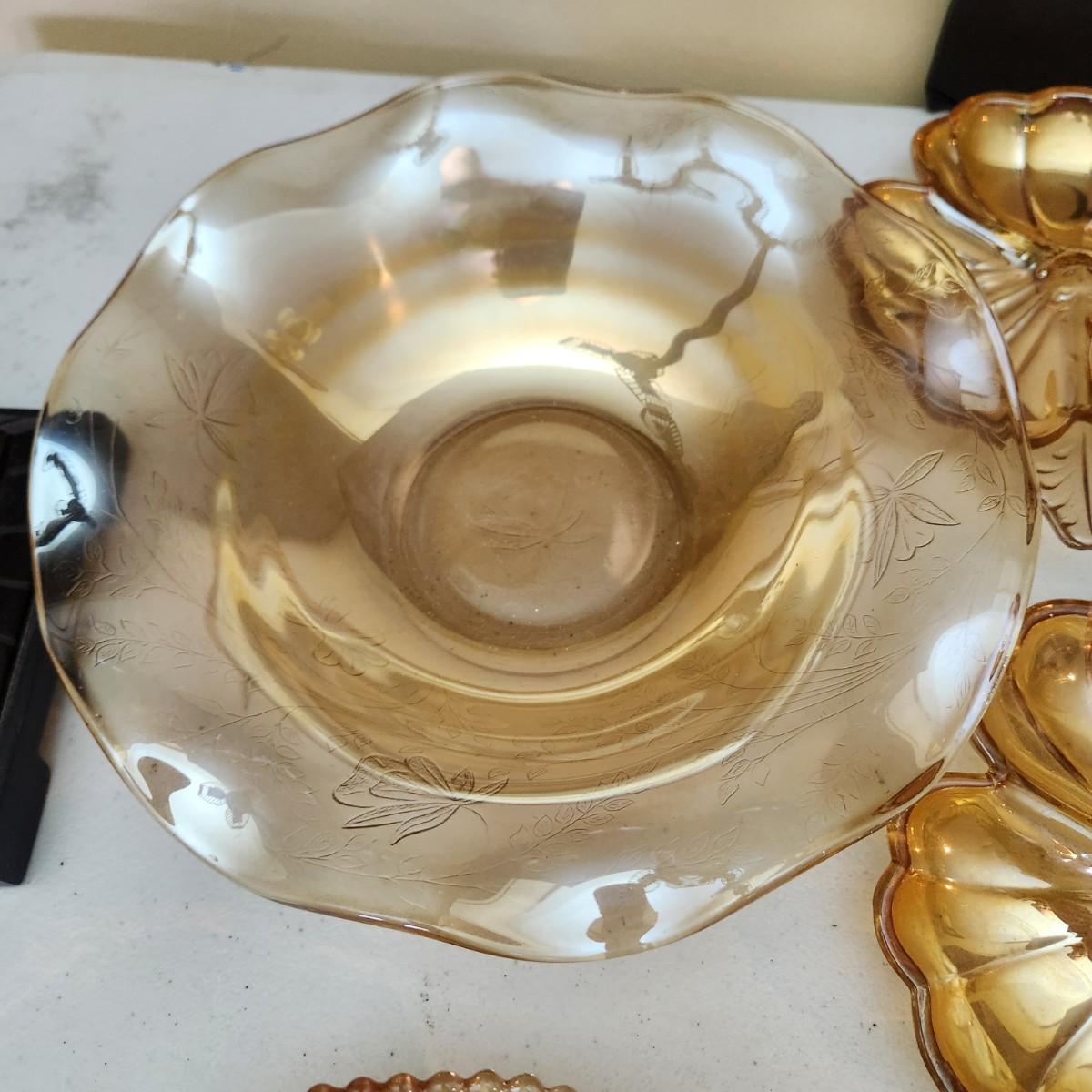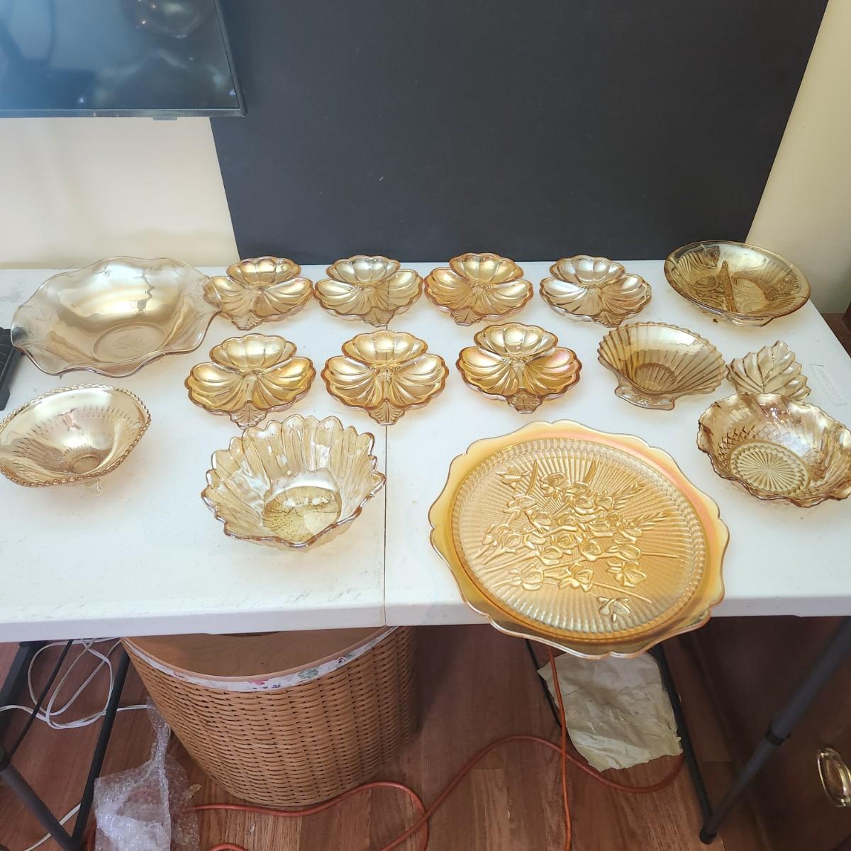 lot of Vintage Depression Glassware Jeannette Marigold, Iris ,Iridescent