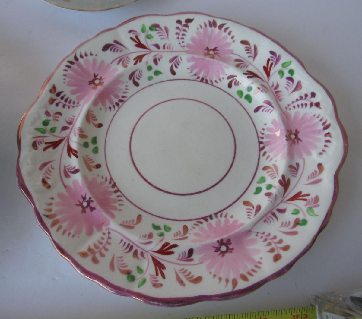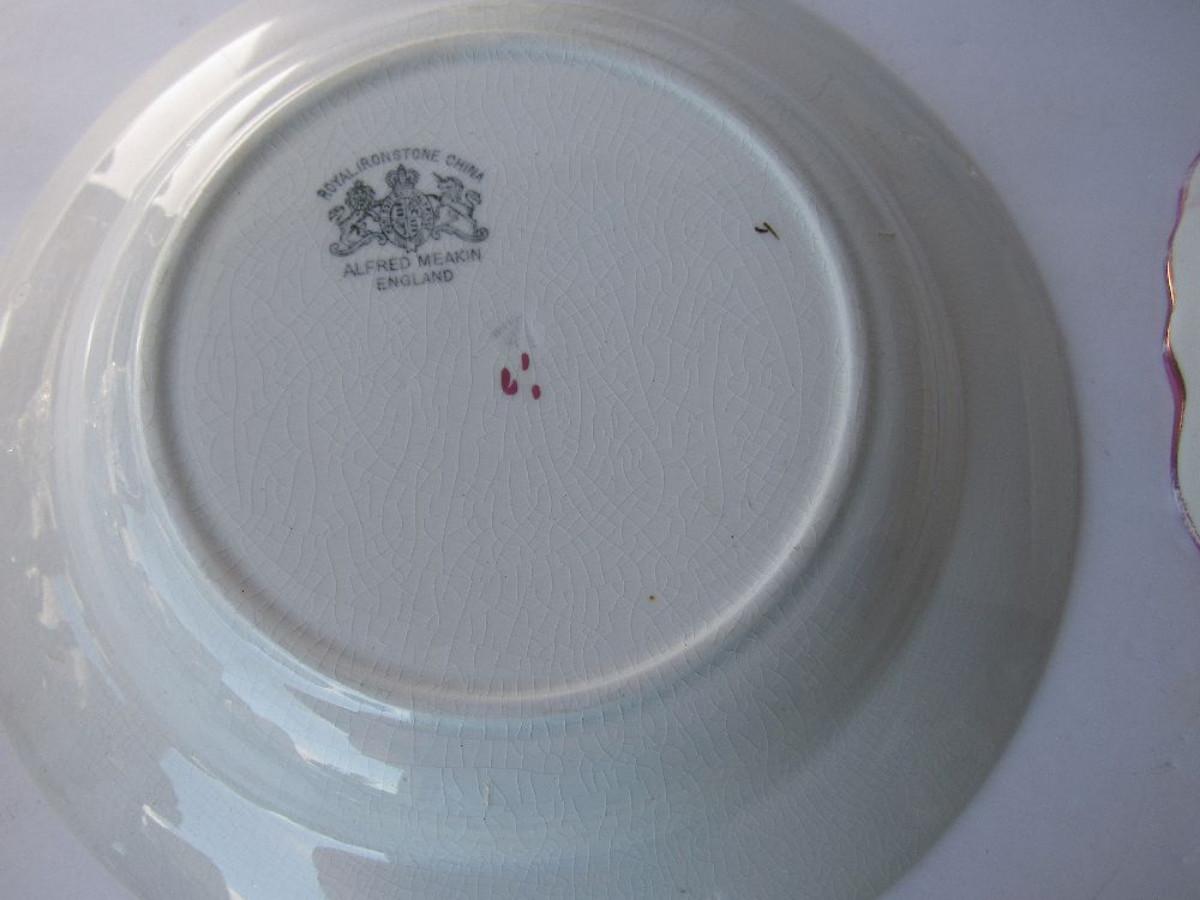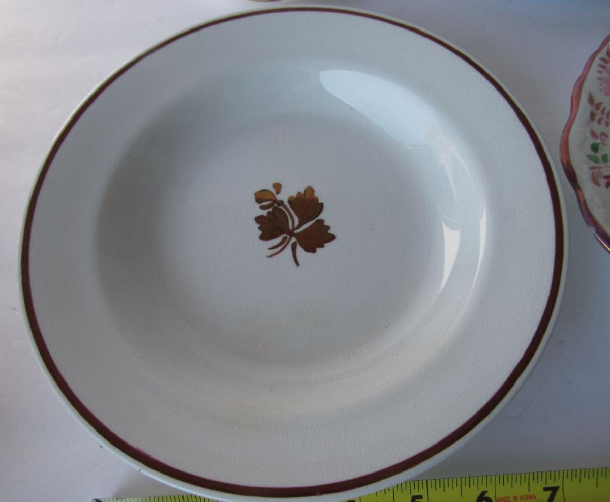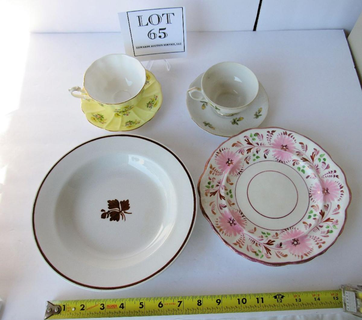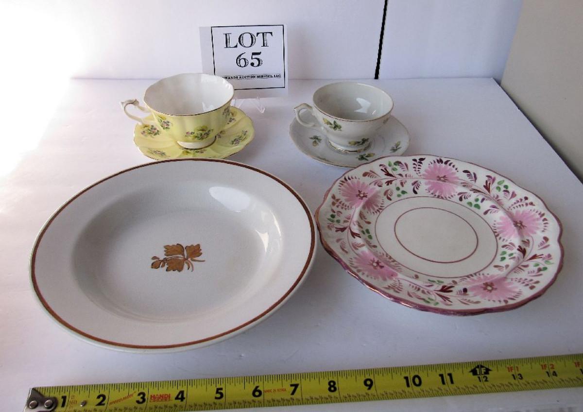 Lot of Vintage Dishes: Ironstone Tea Leaf Soup Bowl, Lusterware Plate and Cup/Saucer Sets