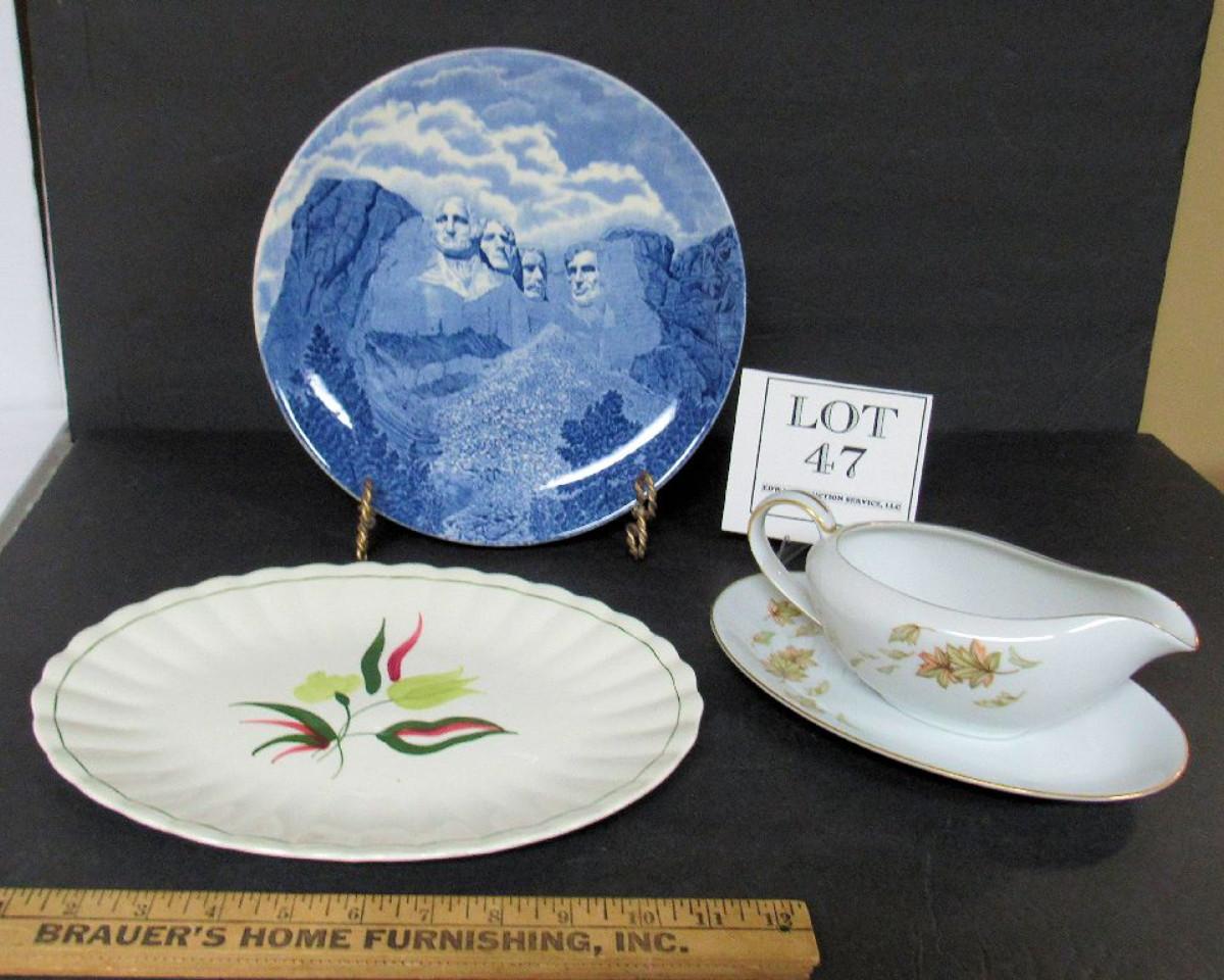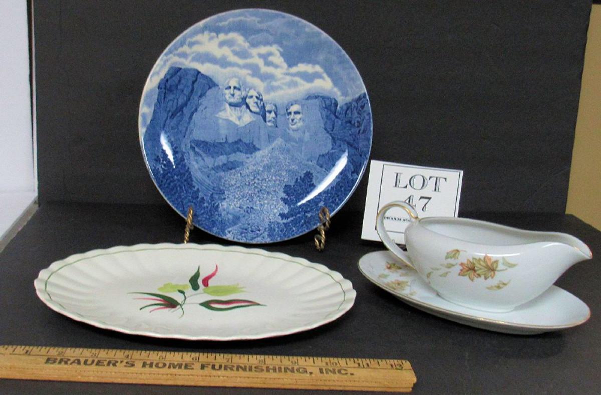 Lot of Vintage Dishes, Mt Rushmore Plate, Norcrest Autumn Fantasy Gravy/Tray, Blue Ridge Platter