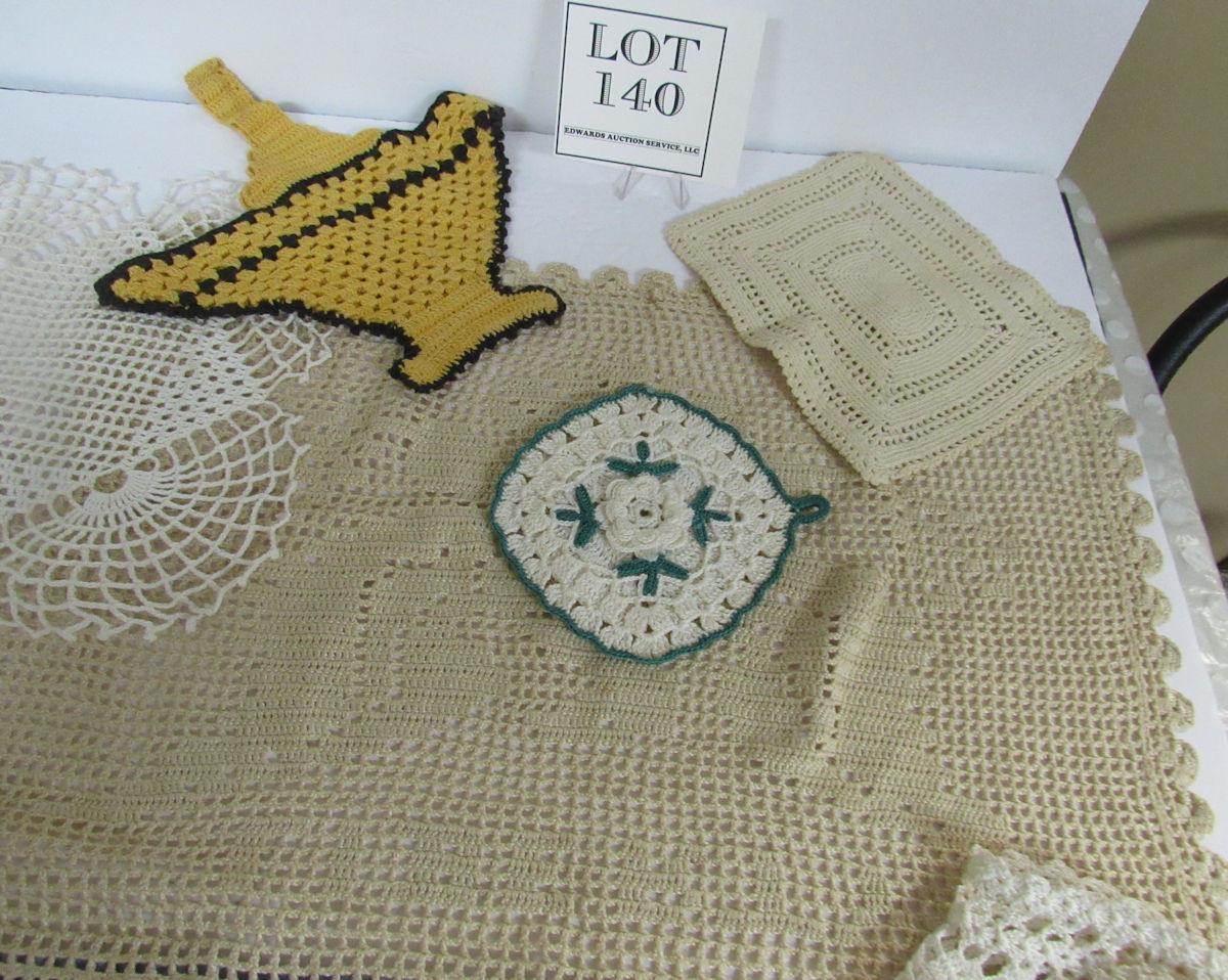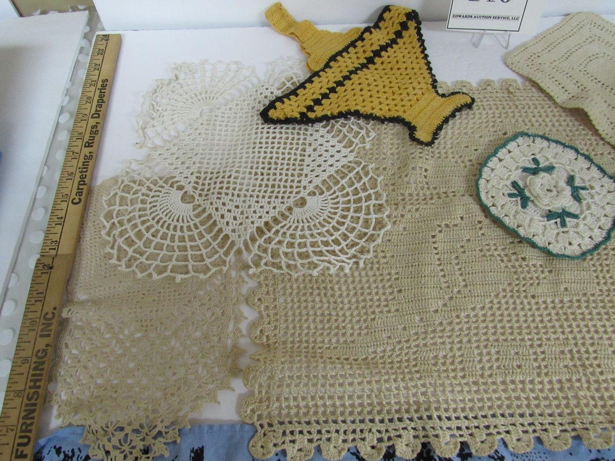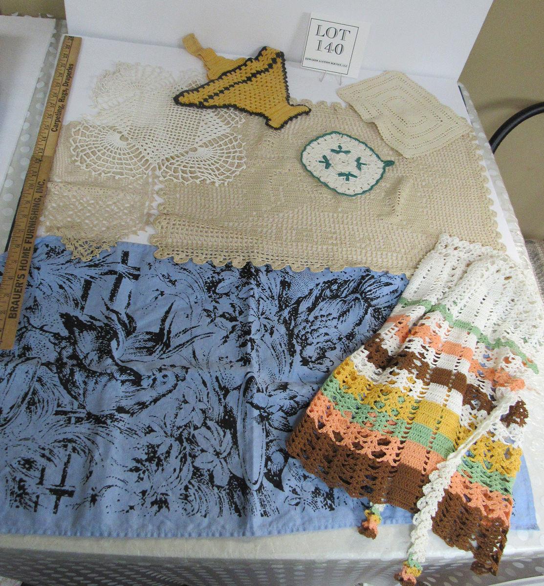 Lot of Vintage Doileys, Towel, Apron, Pot Holders