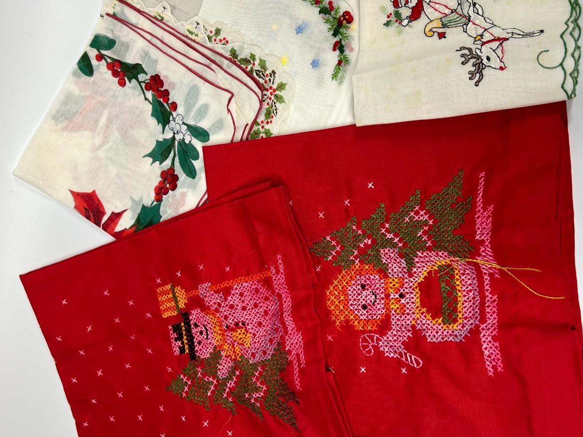 Lot of Vintage Doilies Holiday Linen Tea Place Mats, there is no signifncant rips or damage to the pieces in the lot and is in good vintage condition. Check pictures for more details and for sizing.