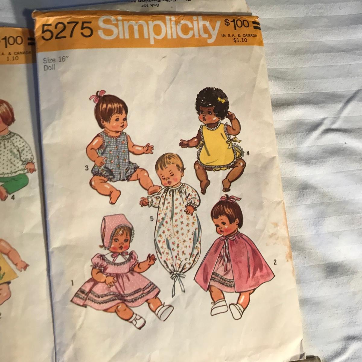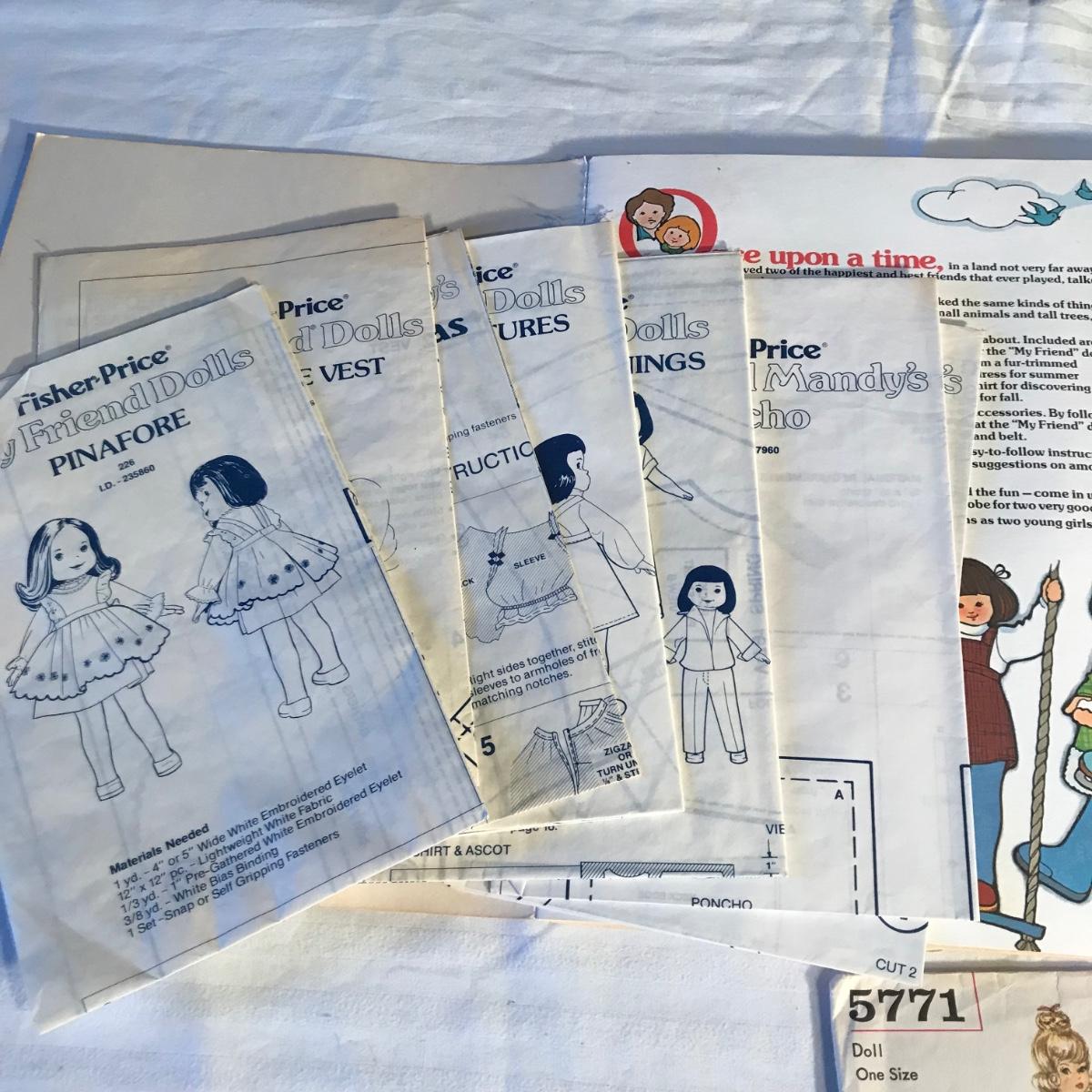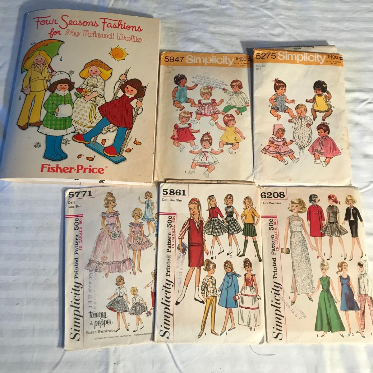 Fisher-Price Four Seasons Fashions for My Friend Dolls Patterns - looks like only 1 was cut. 2 Simplicity baby doll patterns, and 3 Barbie-like doll patterns.