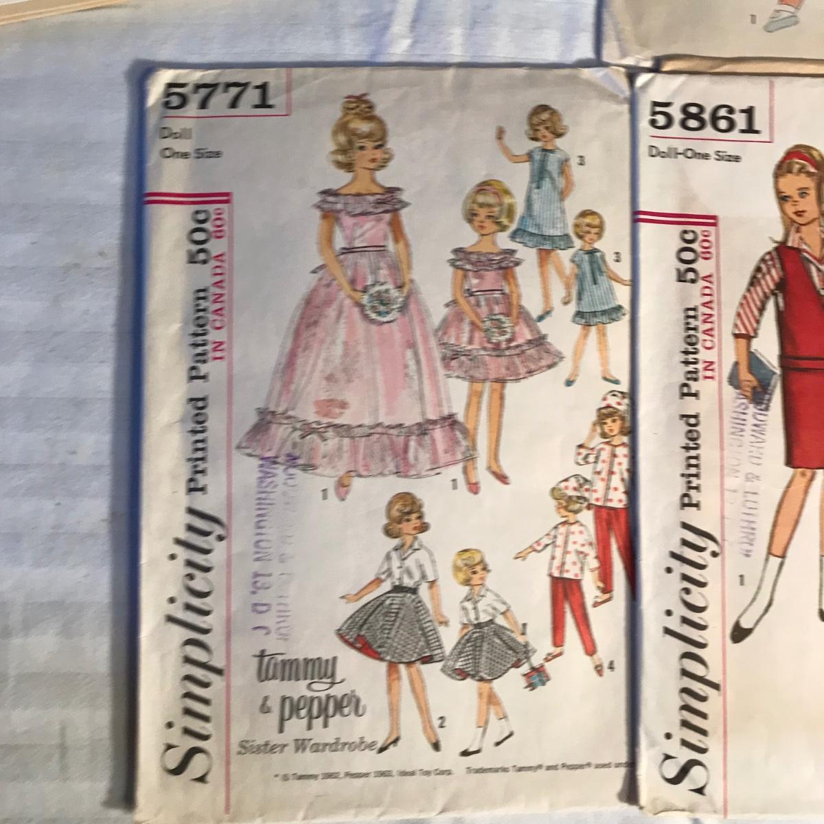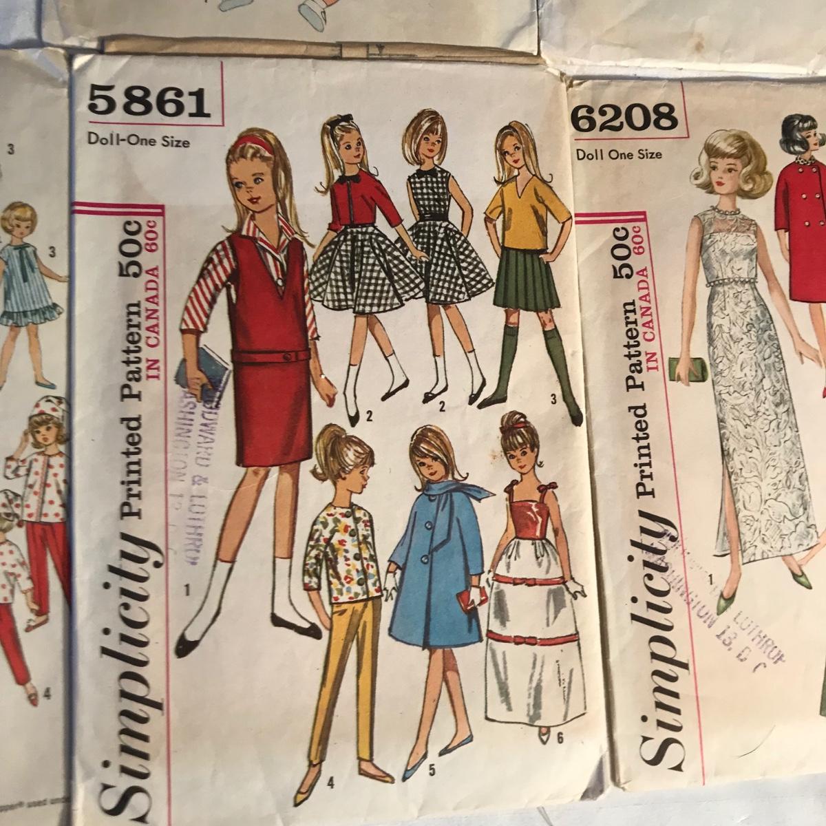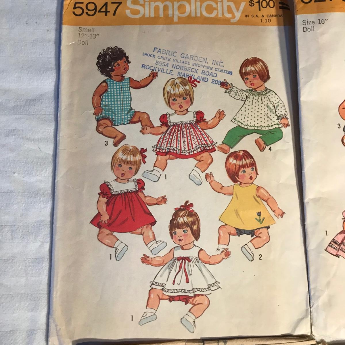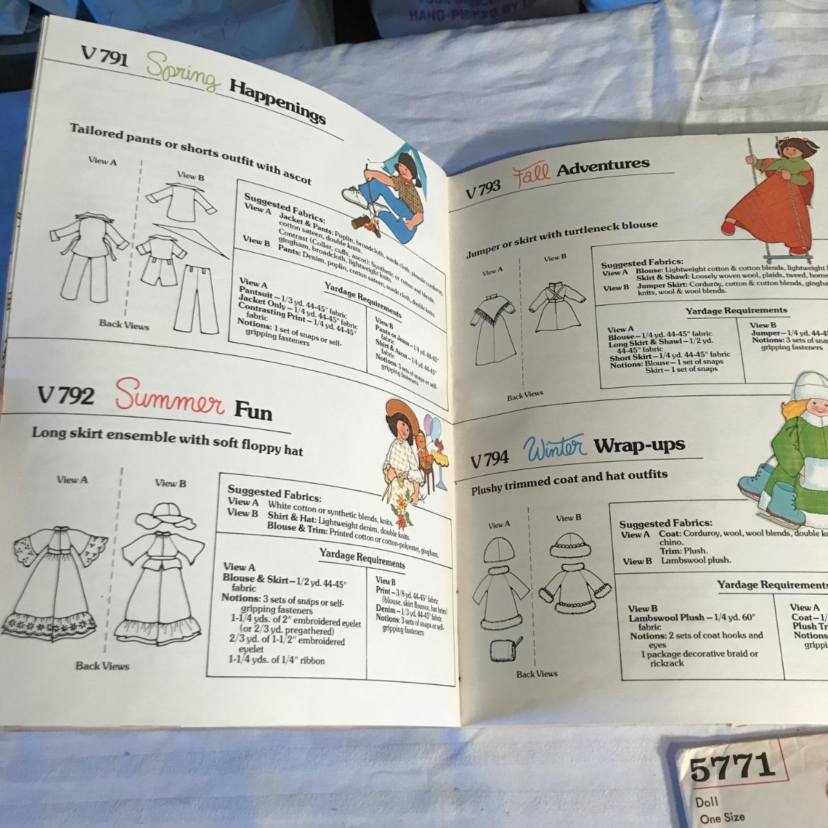 Fisher-Price Four Seasons Fashions for My Friend Dolls Patterns - looks like only 1 was cut. 2 Simplicity baby doll patterns, and 3 Barbie-like doll patterns.