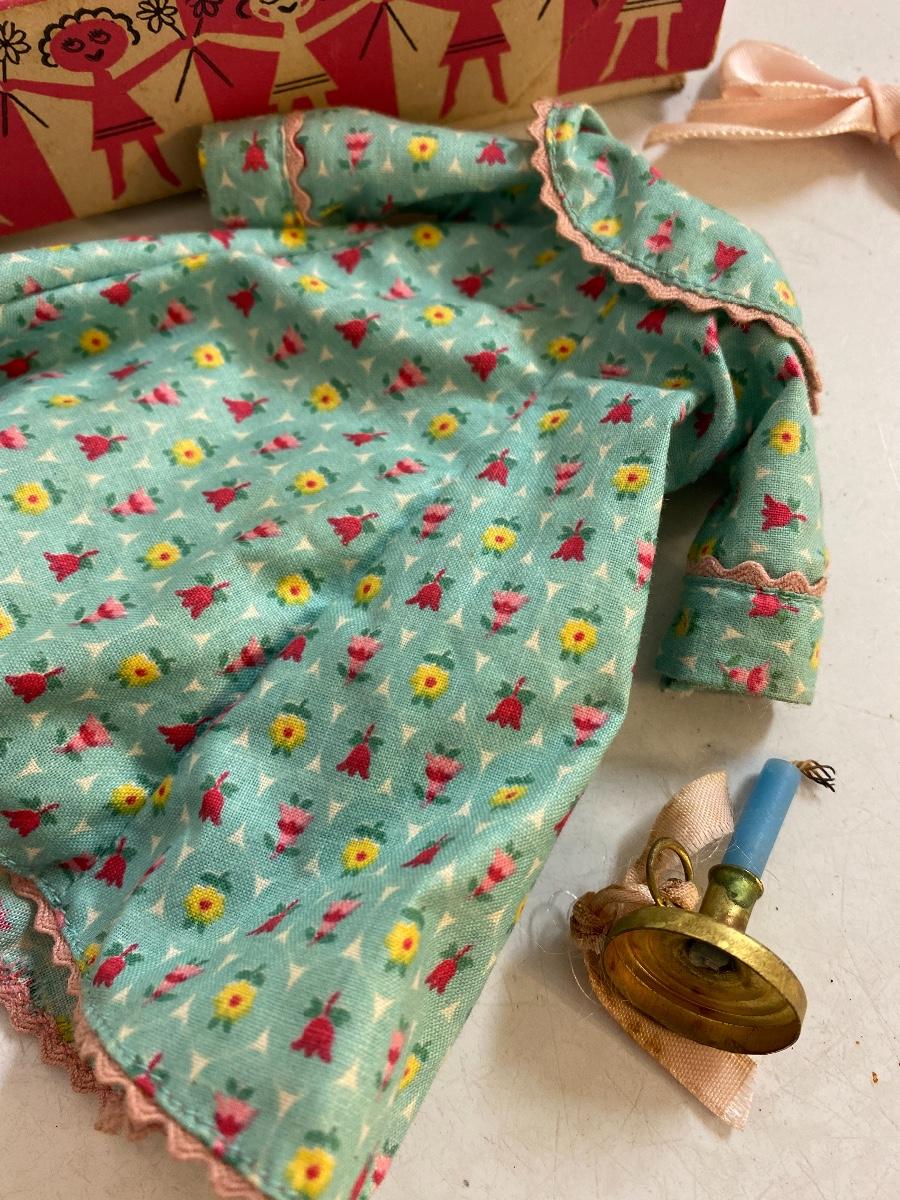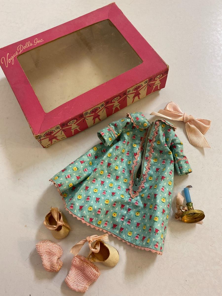 Lot of Vintage doll PAJAMAS with candlestick and shoes styled by Vogue Dolls, Inc including the box. In good vintage condition