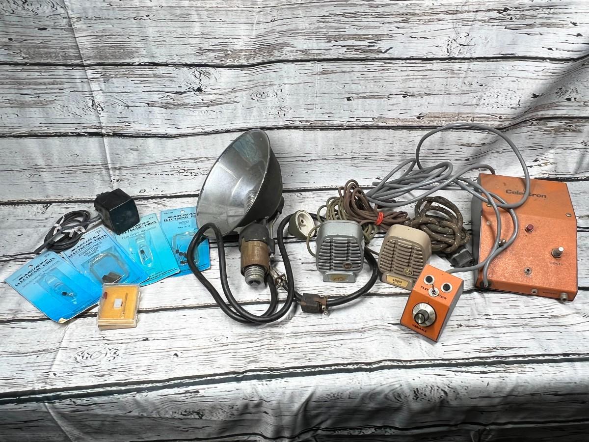 Lot of Vintage Electronic Components, Flash Units, Microphones & More