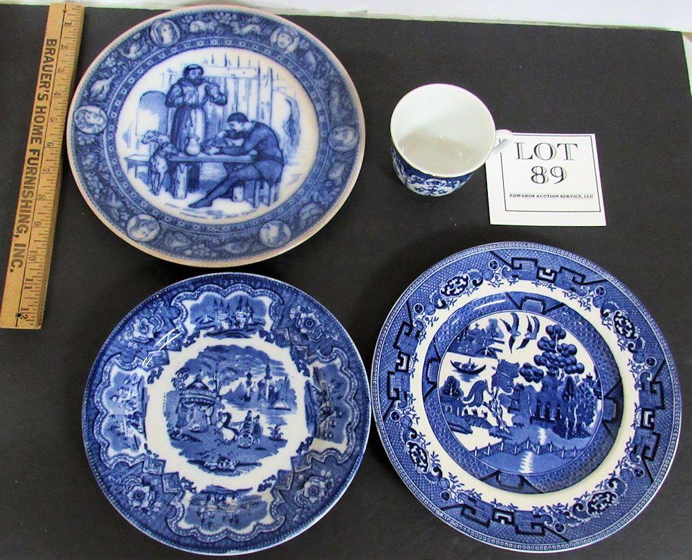 Lot of Vintage Flow Blue and Transferware Blue/White Plates