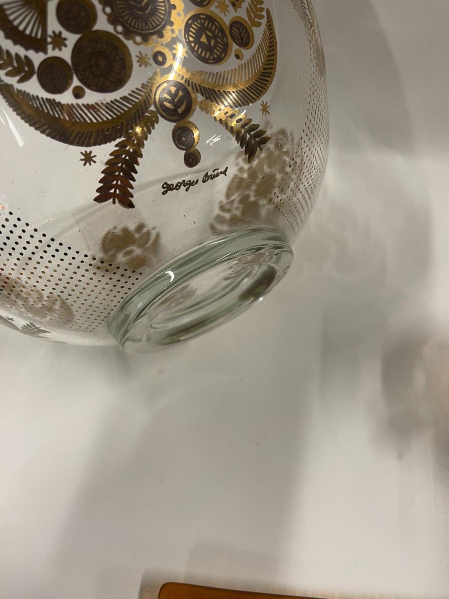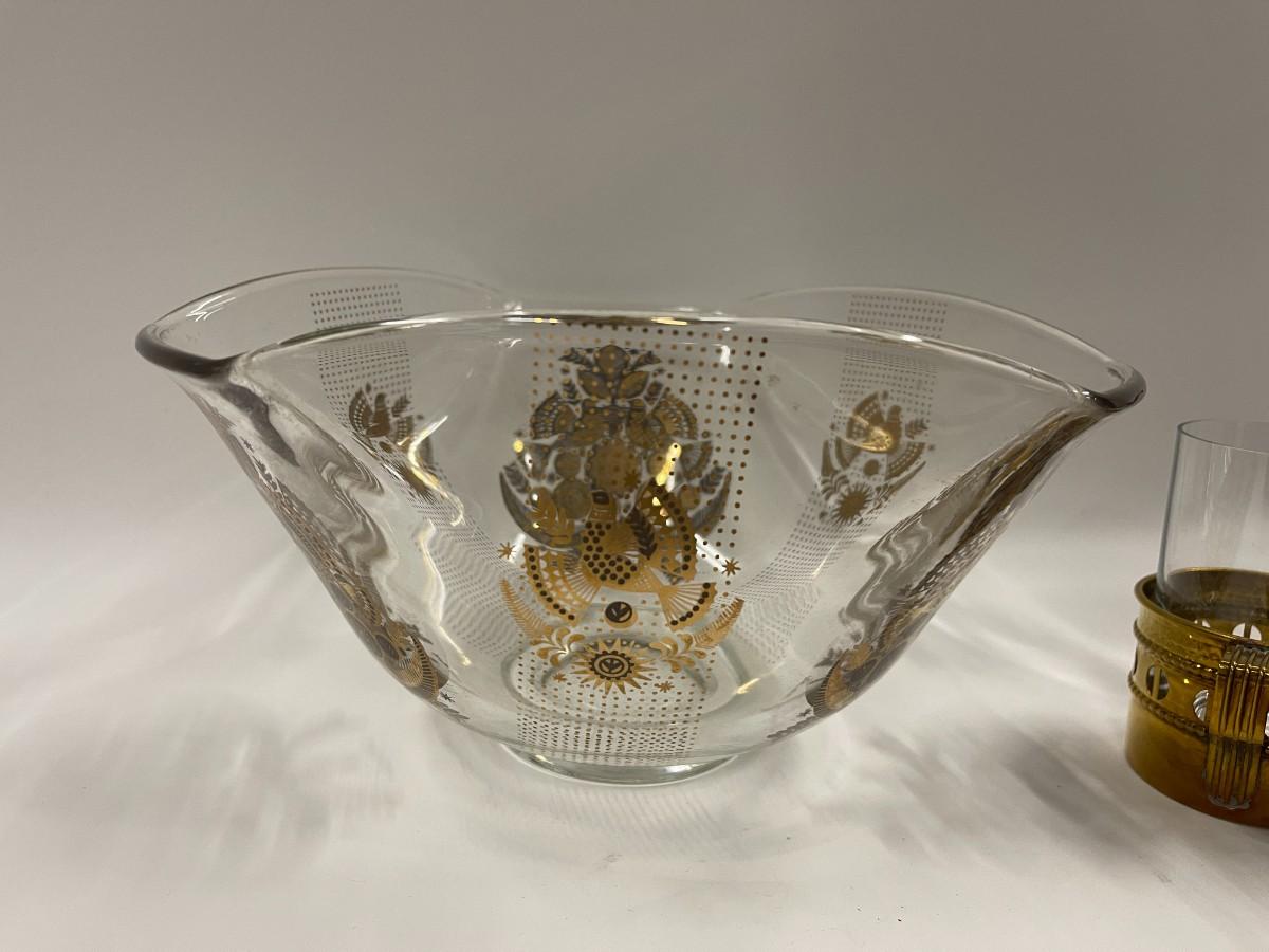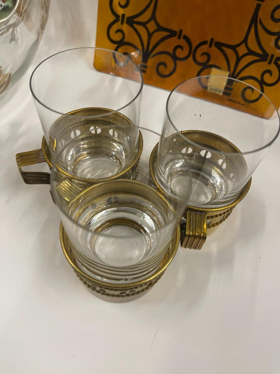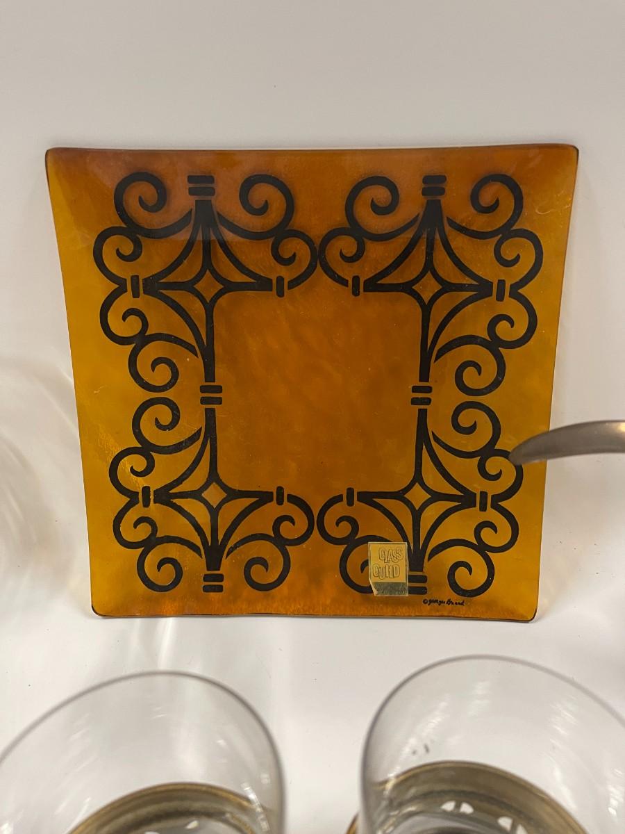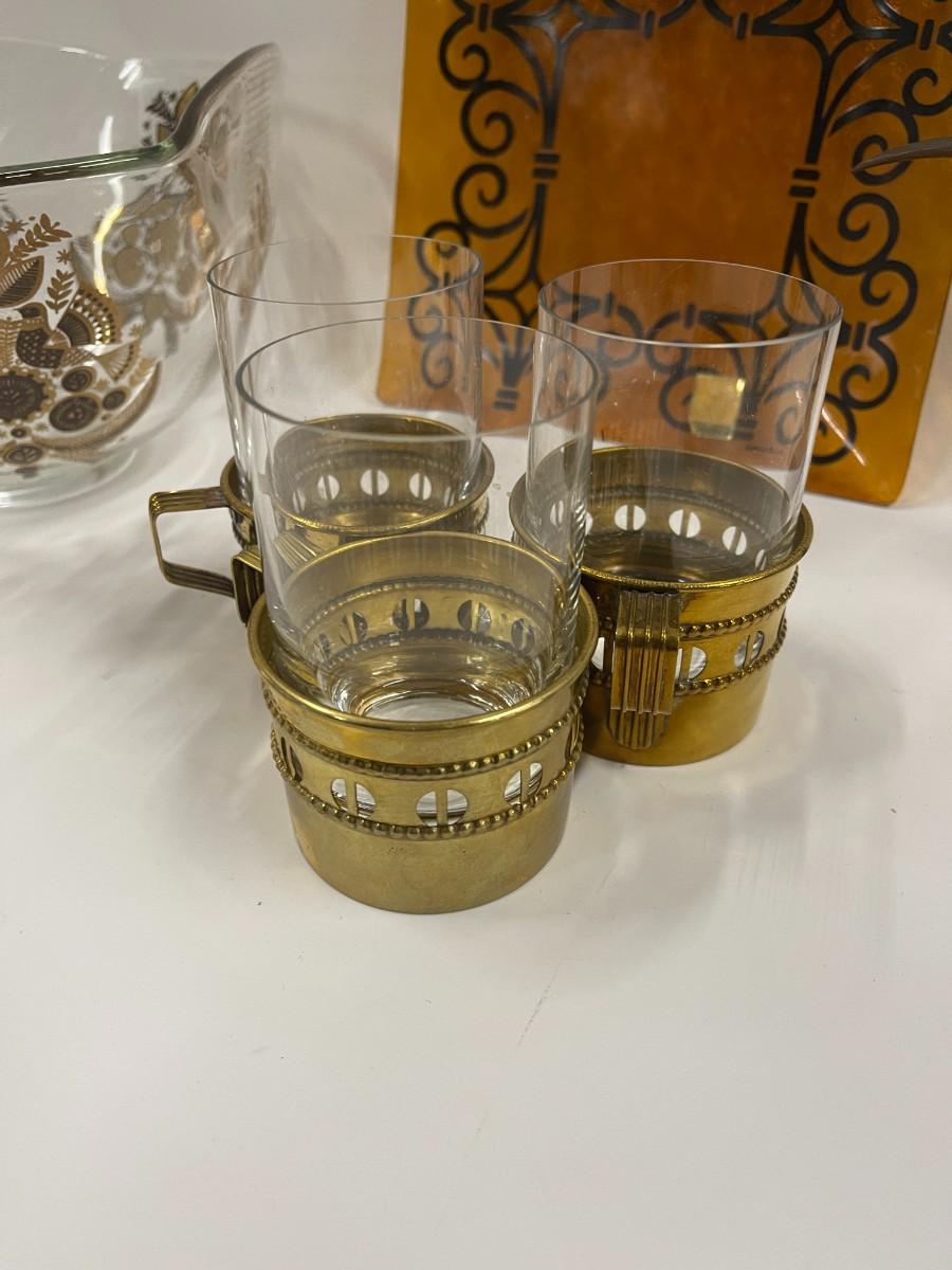 Lot of Vintage Georges Briard Glass, Ystad Candlestick & Glass Teacups With Metal Holders