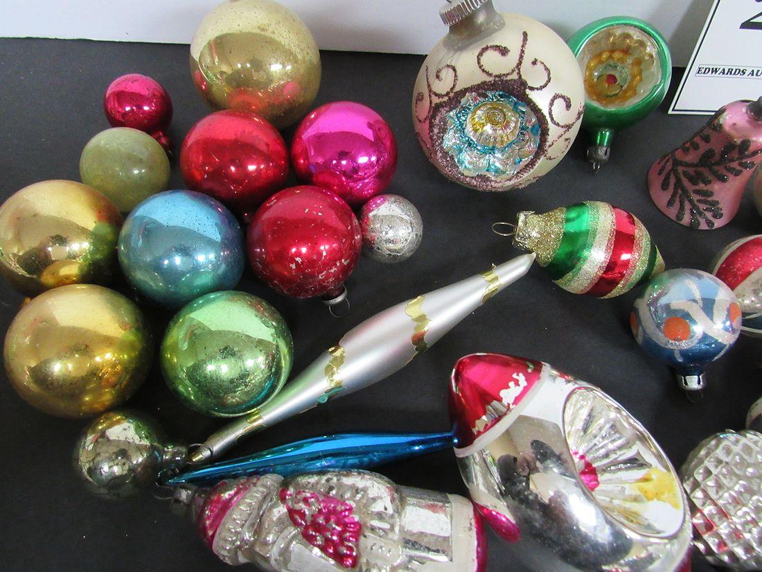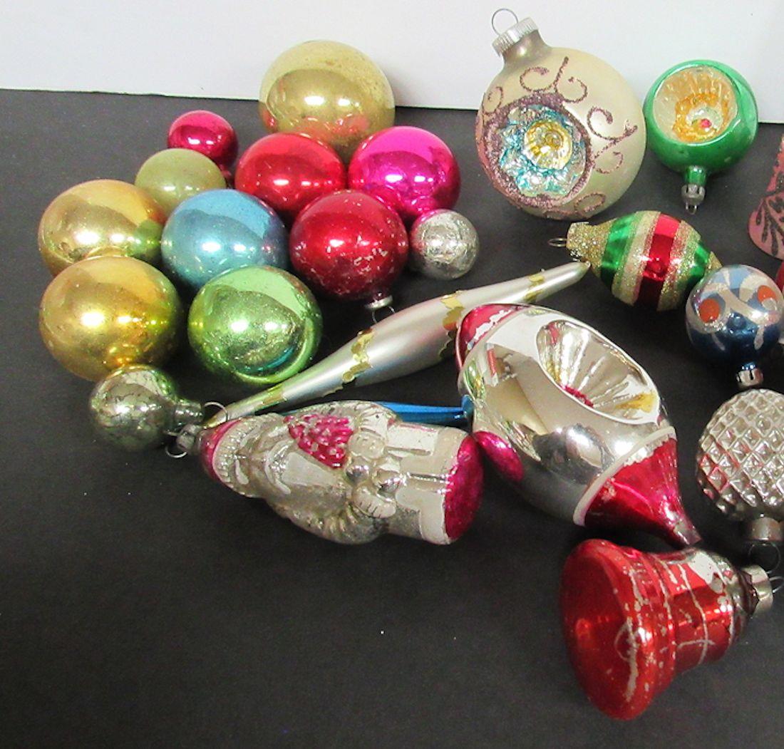 Lot of Vintage Glass Christmas Ornaments, Japan Santa and Indent, More