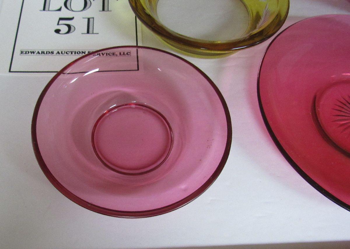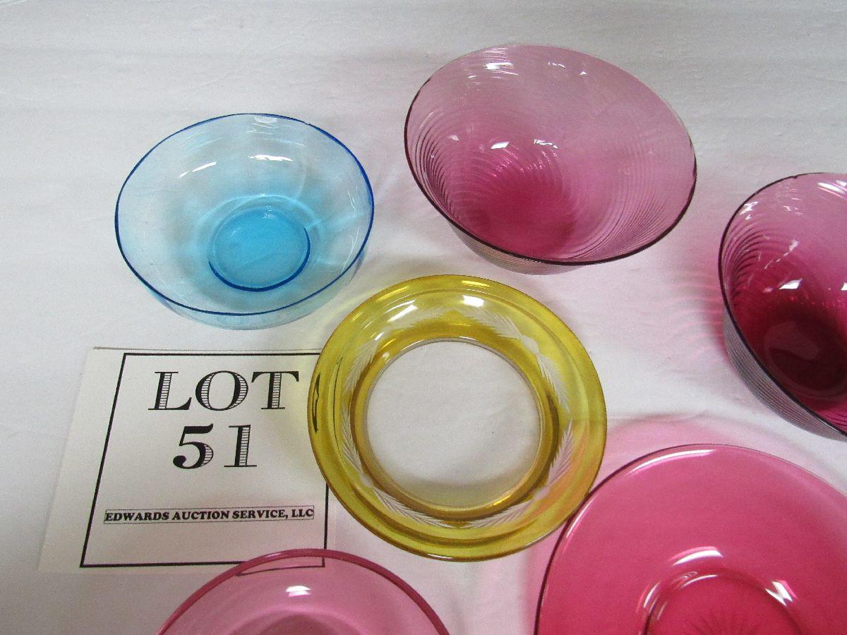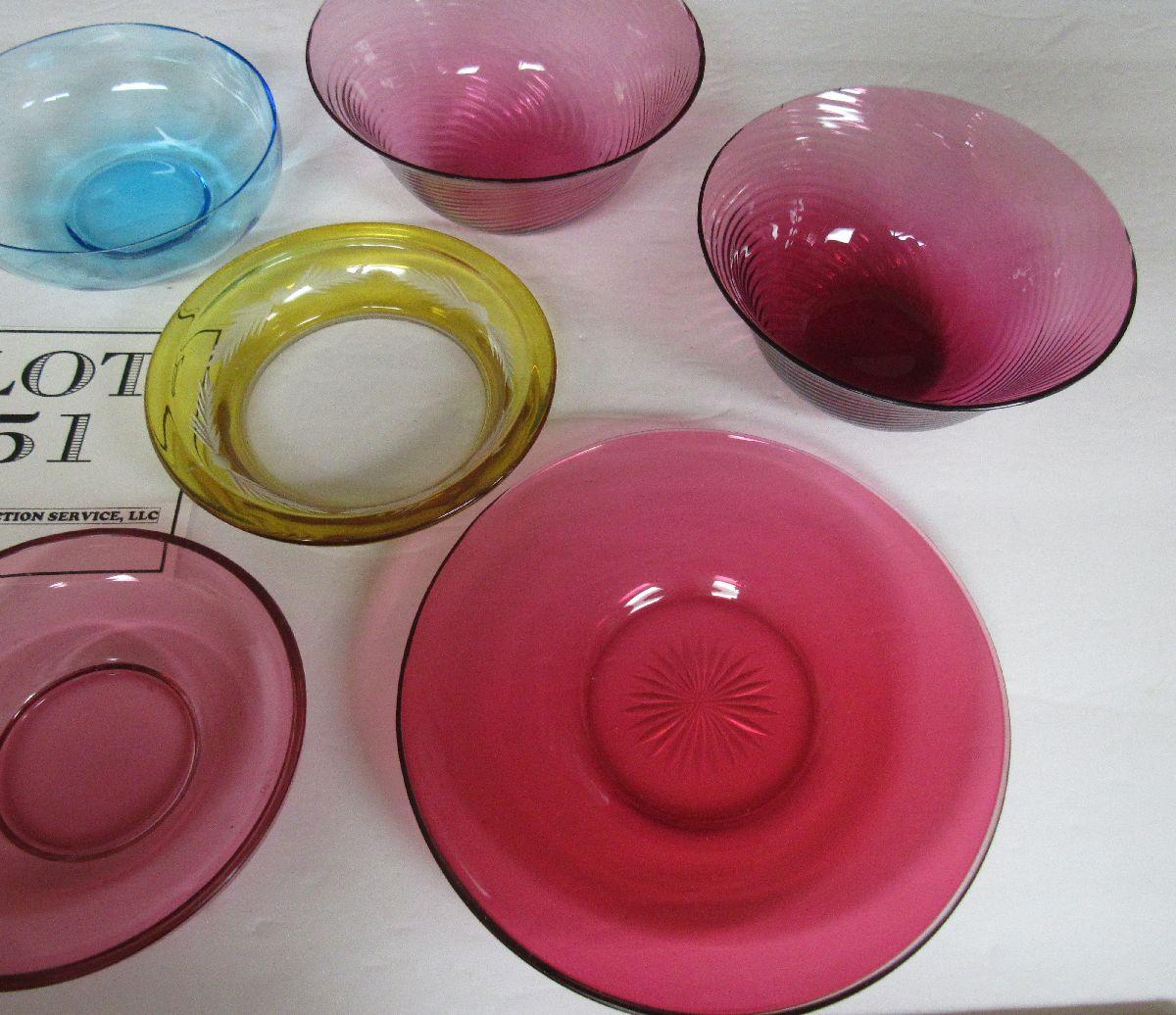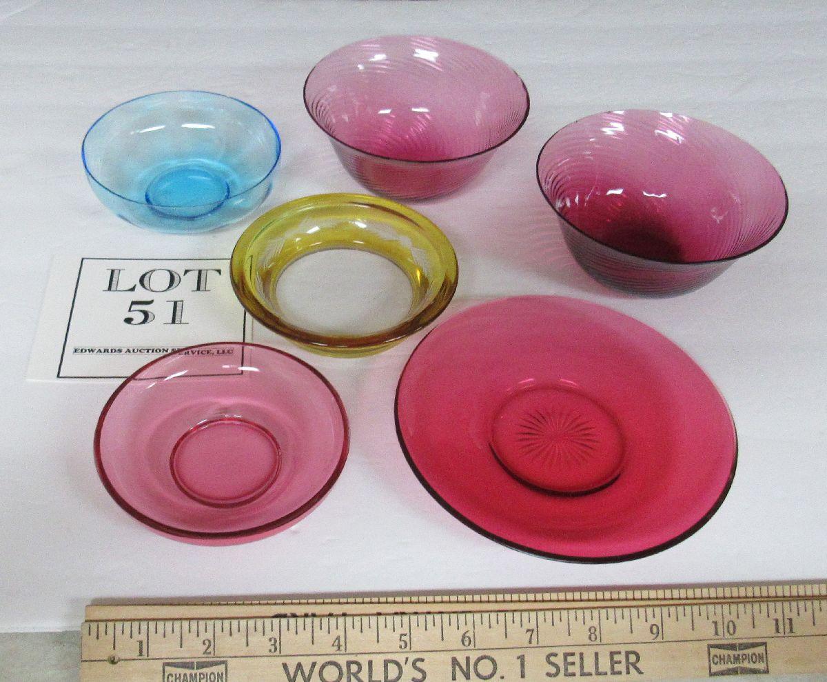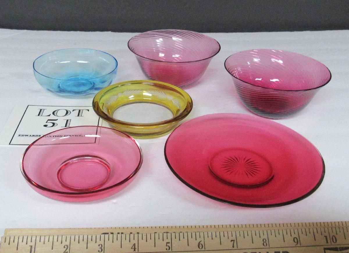 Lot of Vintage Glassware, Cut to Clear Bowl, Cranberry Glass, Blue Bowl