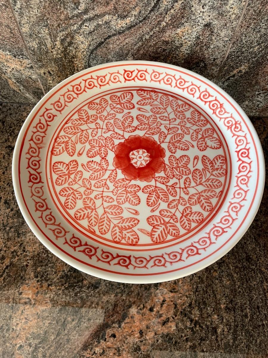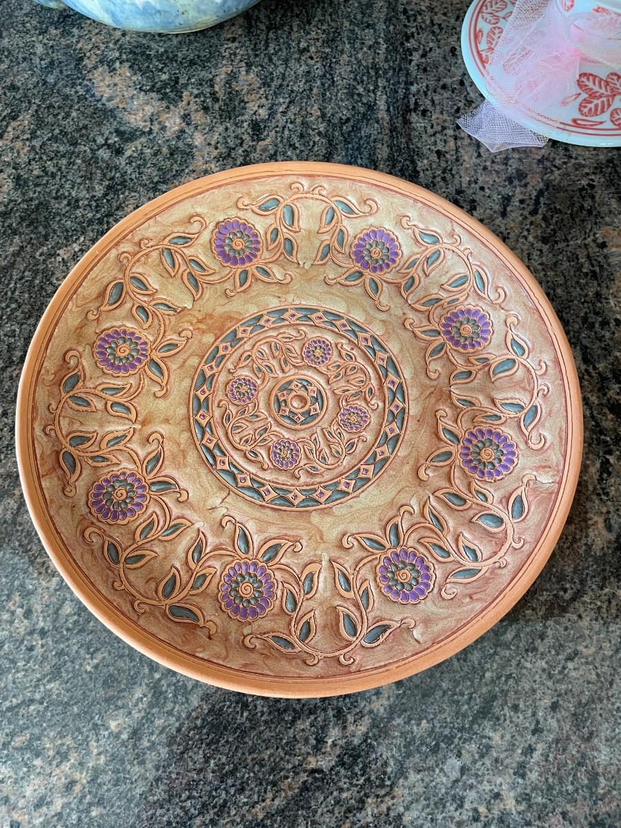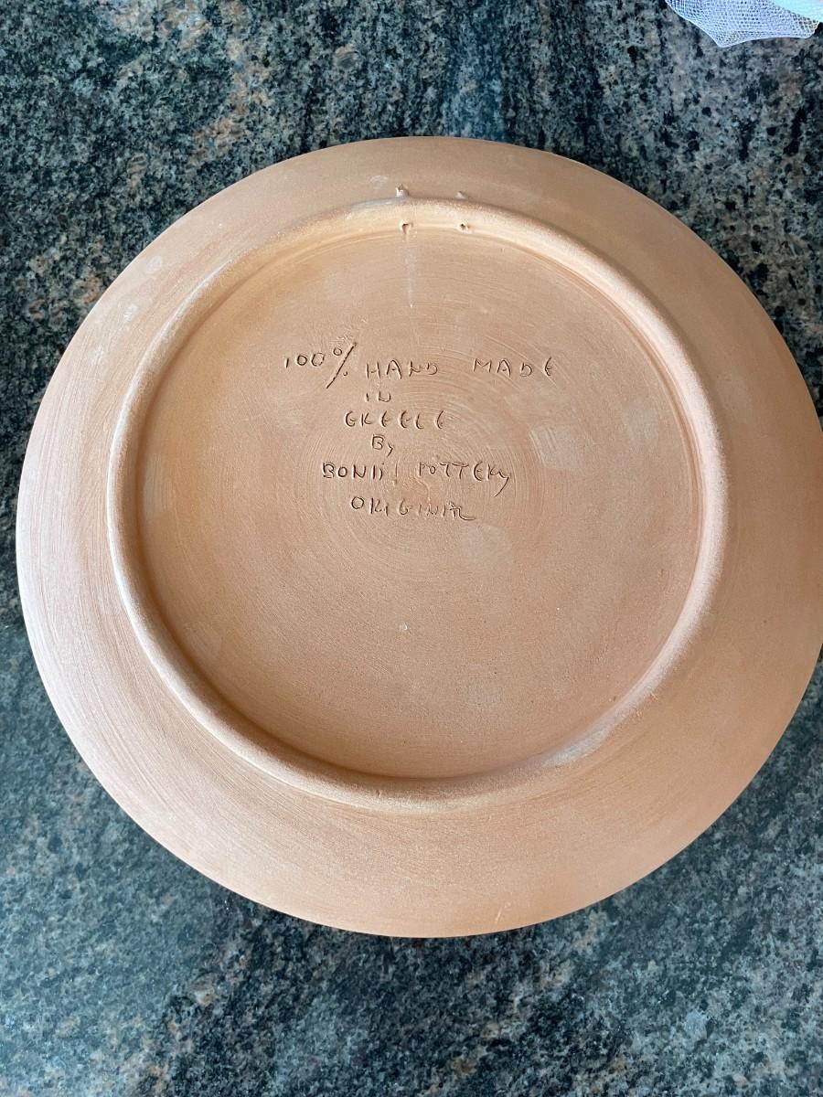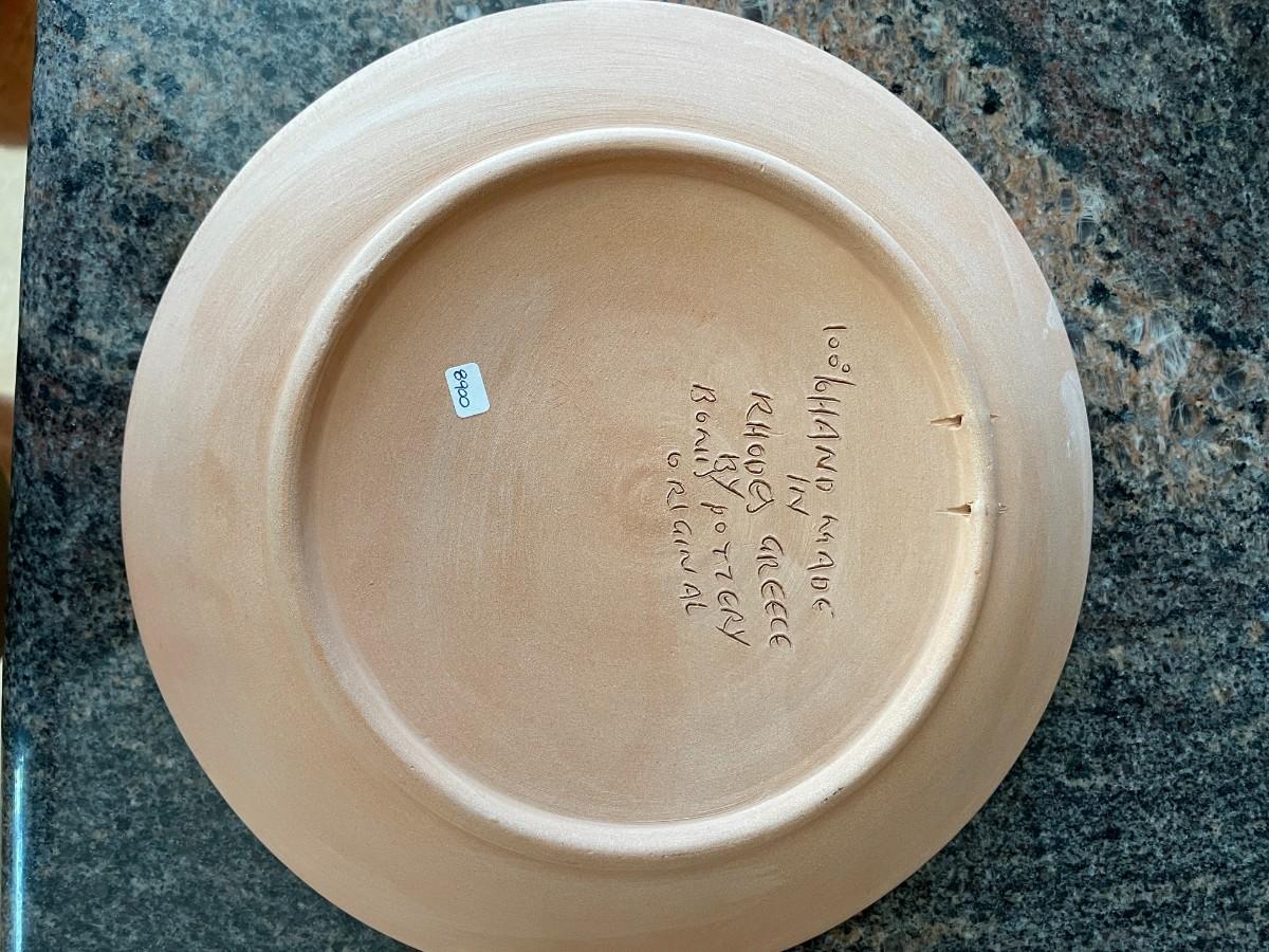 Vintage Asian print cake plate, Hand Made Plates form Greece, Hand Pained Bowl and Ceramic hand maid bowl with lid.