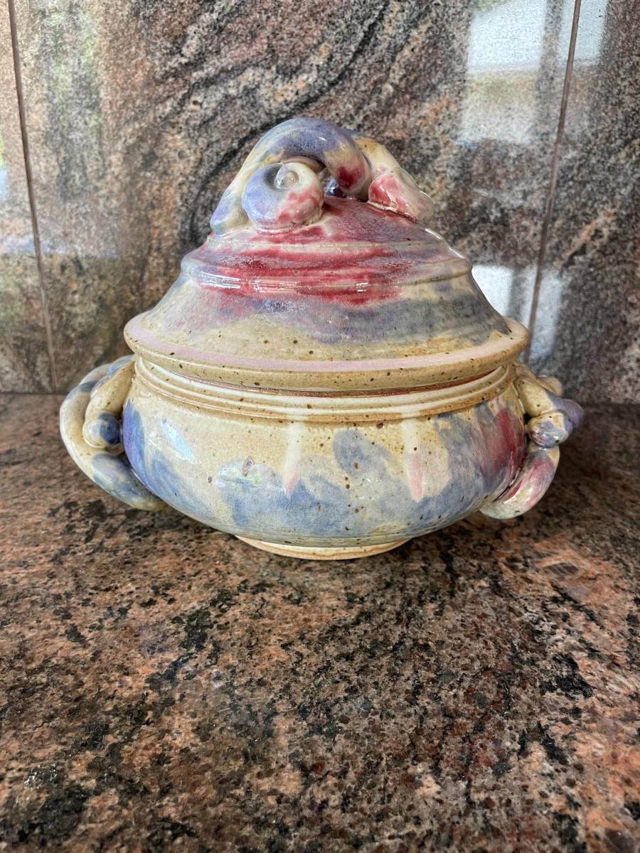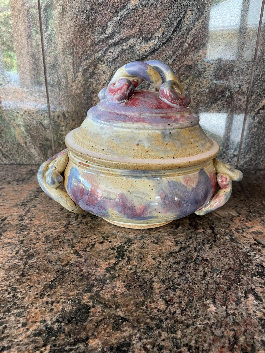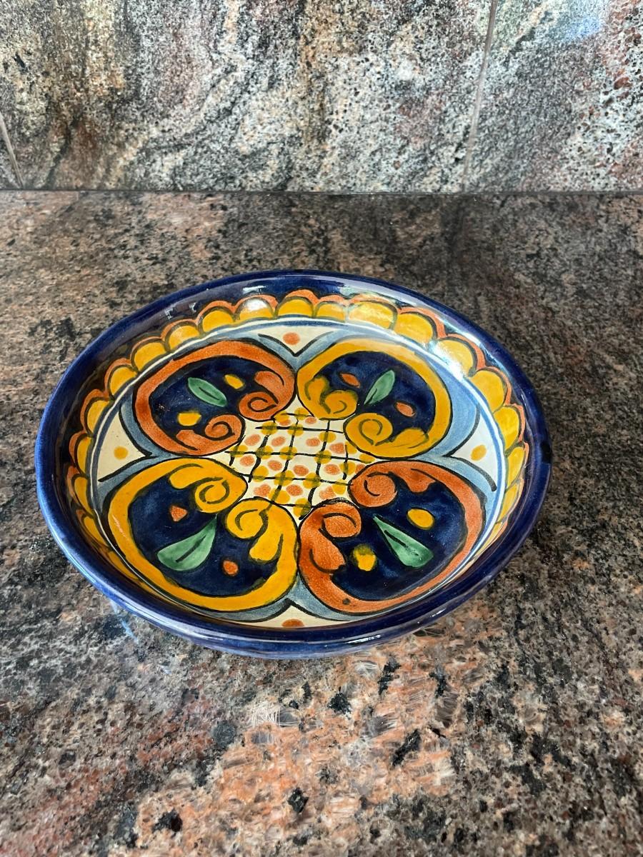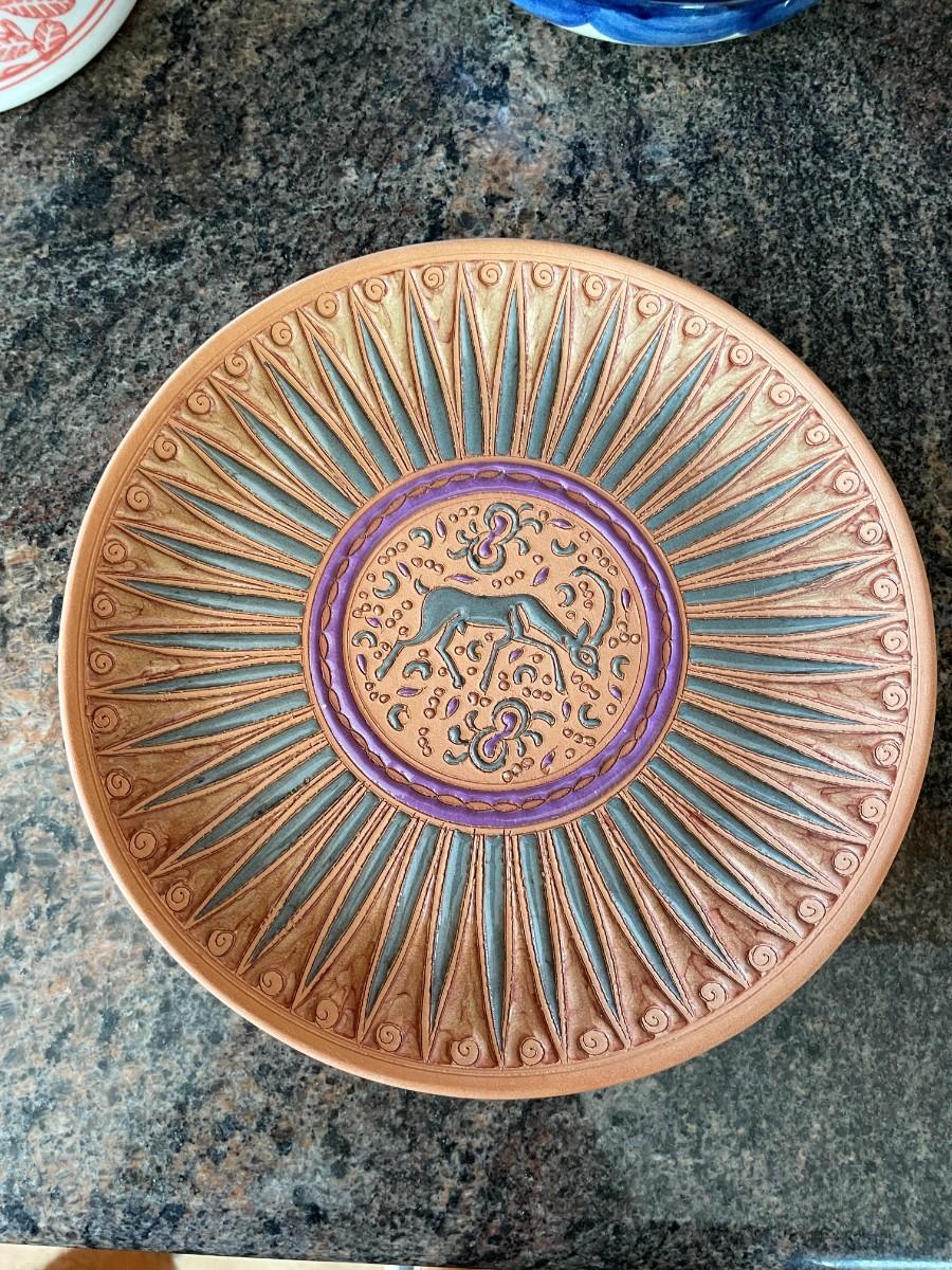 Vintage Asian print cake plate, Hand Made Plates form Greece, Hand Pained Bowl and Ceramic hand maid bowl with lid.
