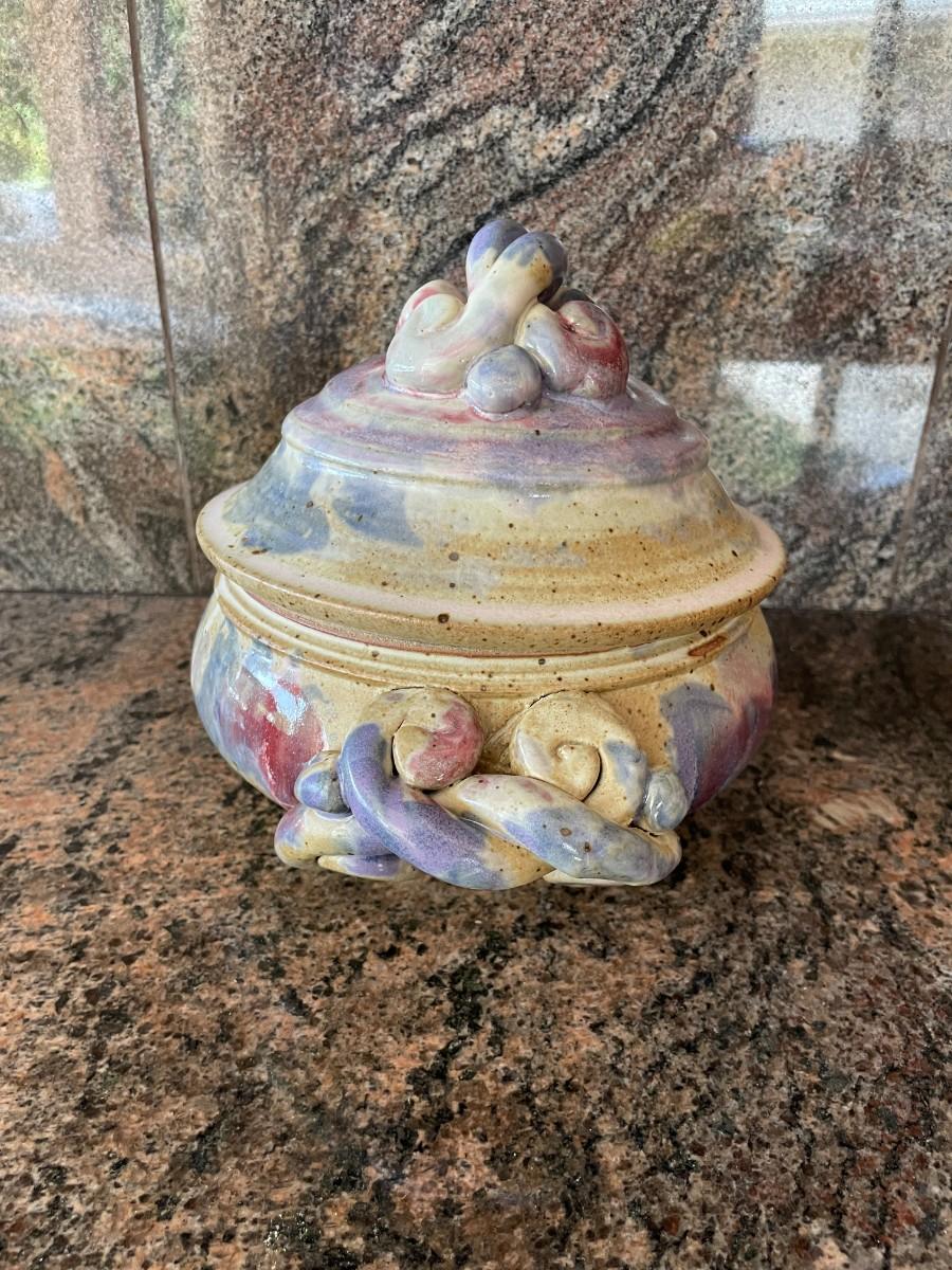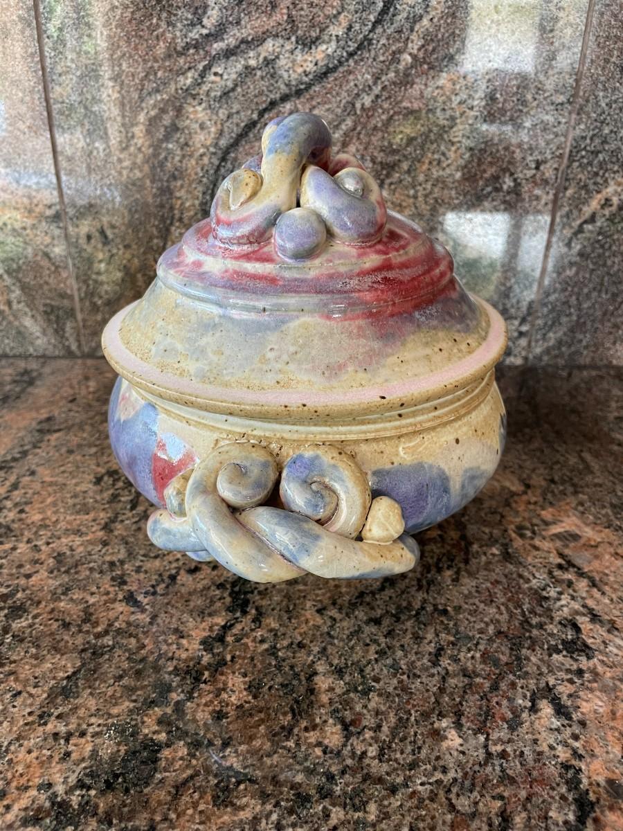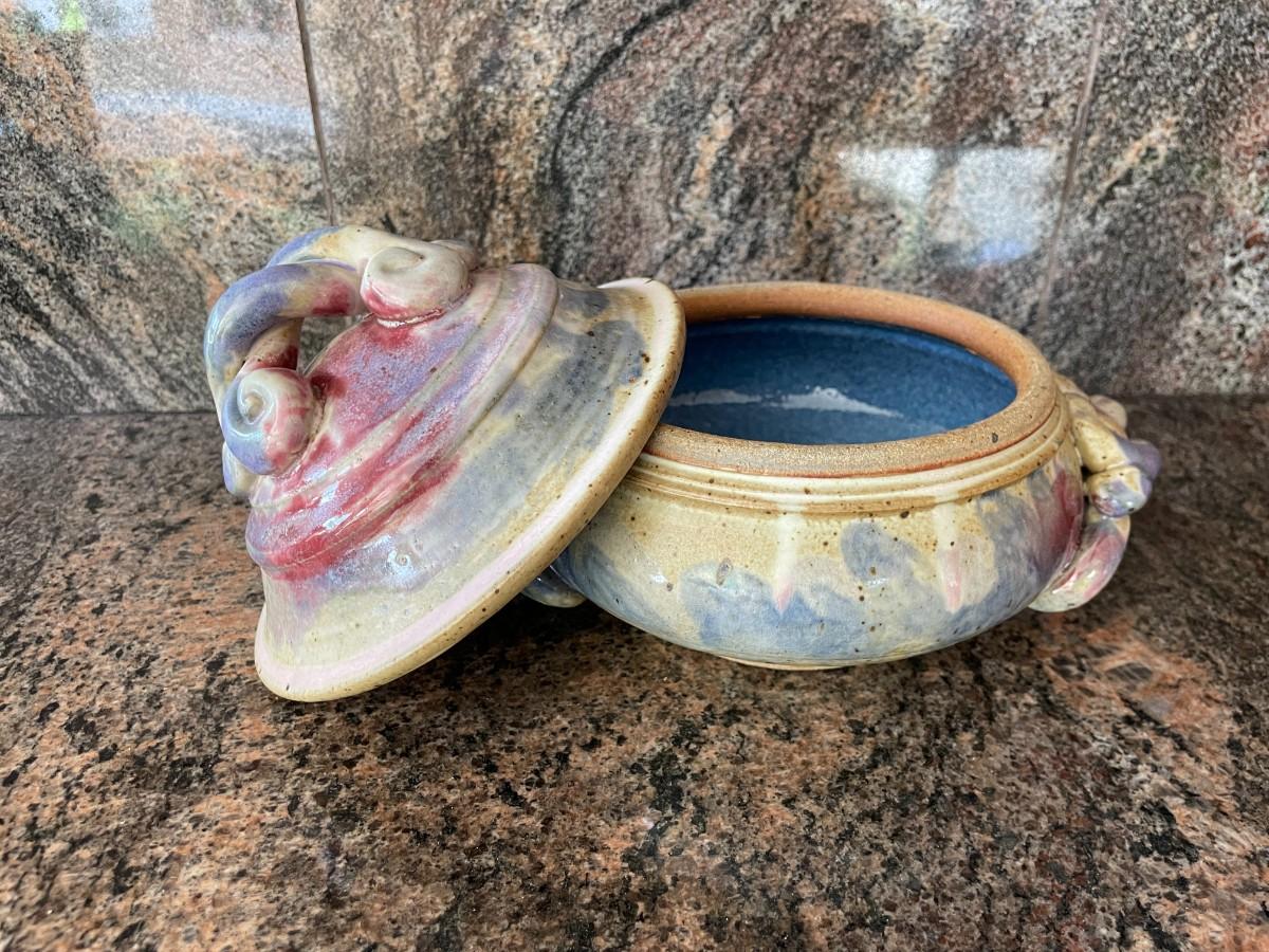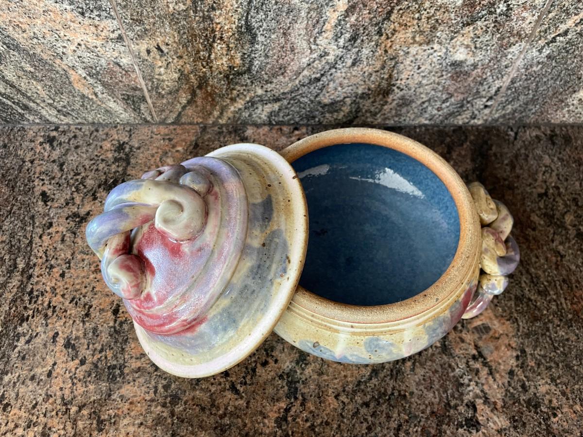Vintage Asian print cake plate, Hand Made Plates form Greece, Hand Pained Bowl and Ceramic hand maid bowl with lid.