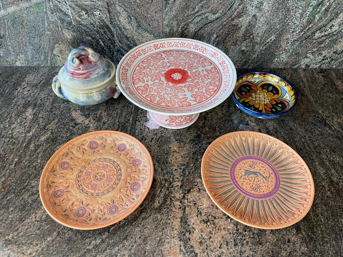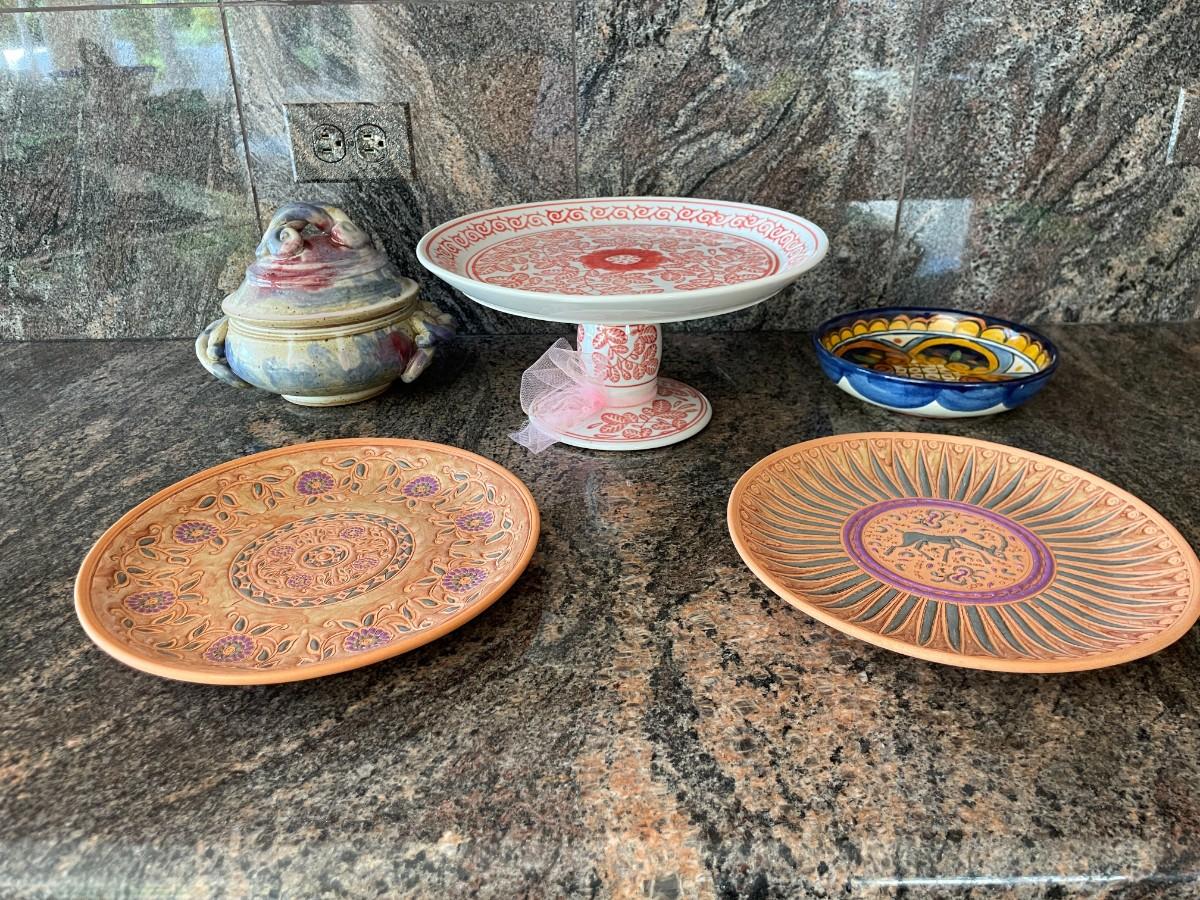 Lot of Vintage, Hand made and Painted Plates, Bowls and Cake Stand