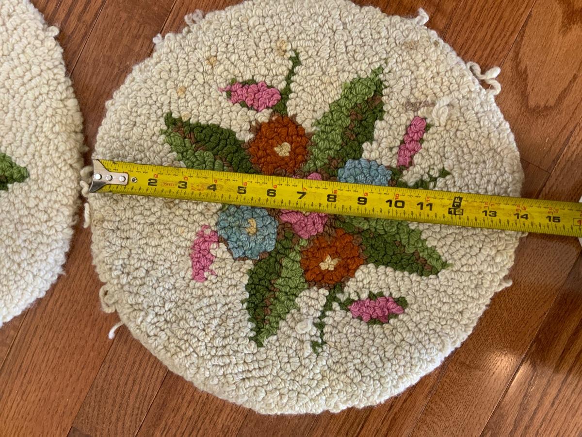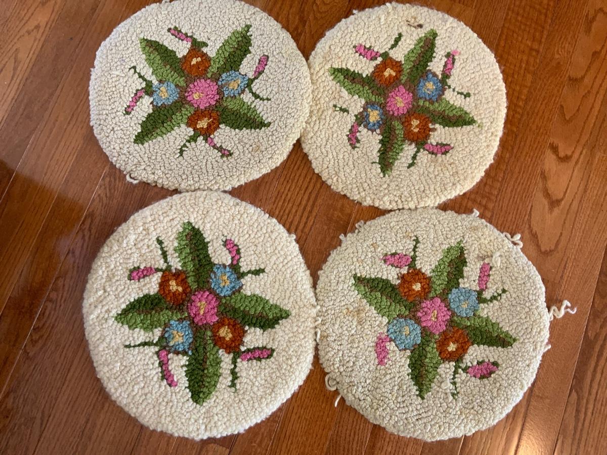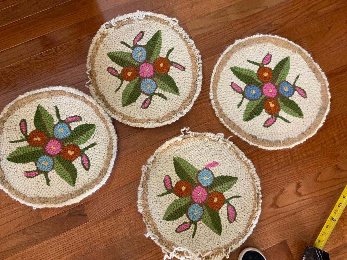 Lot of Vintage Handmade Hooked Chair Pads. 4 pieces. 14” round.