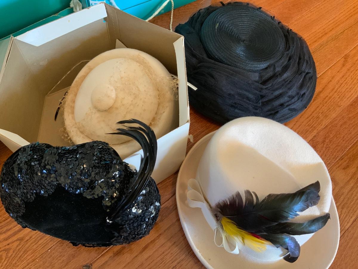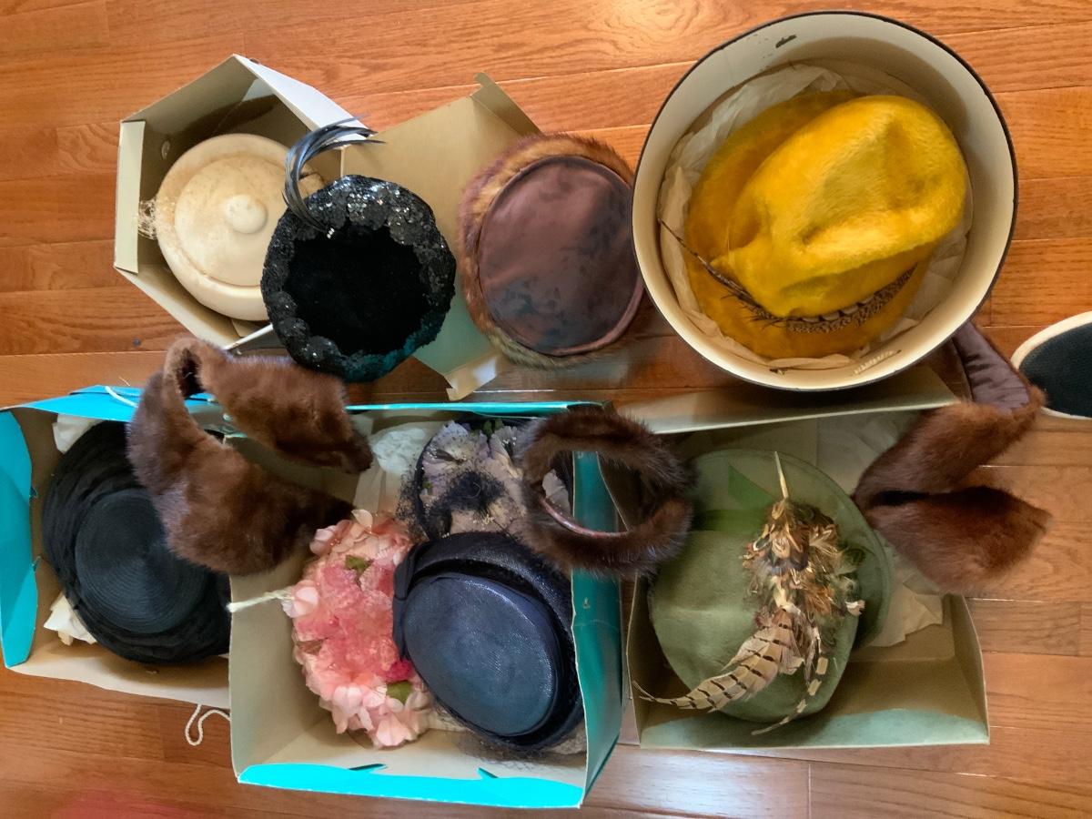 Lot of vintage hats. Hats may have stains or blemishes not pictured.
