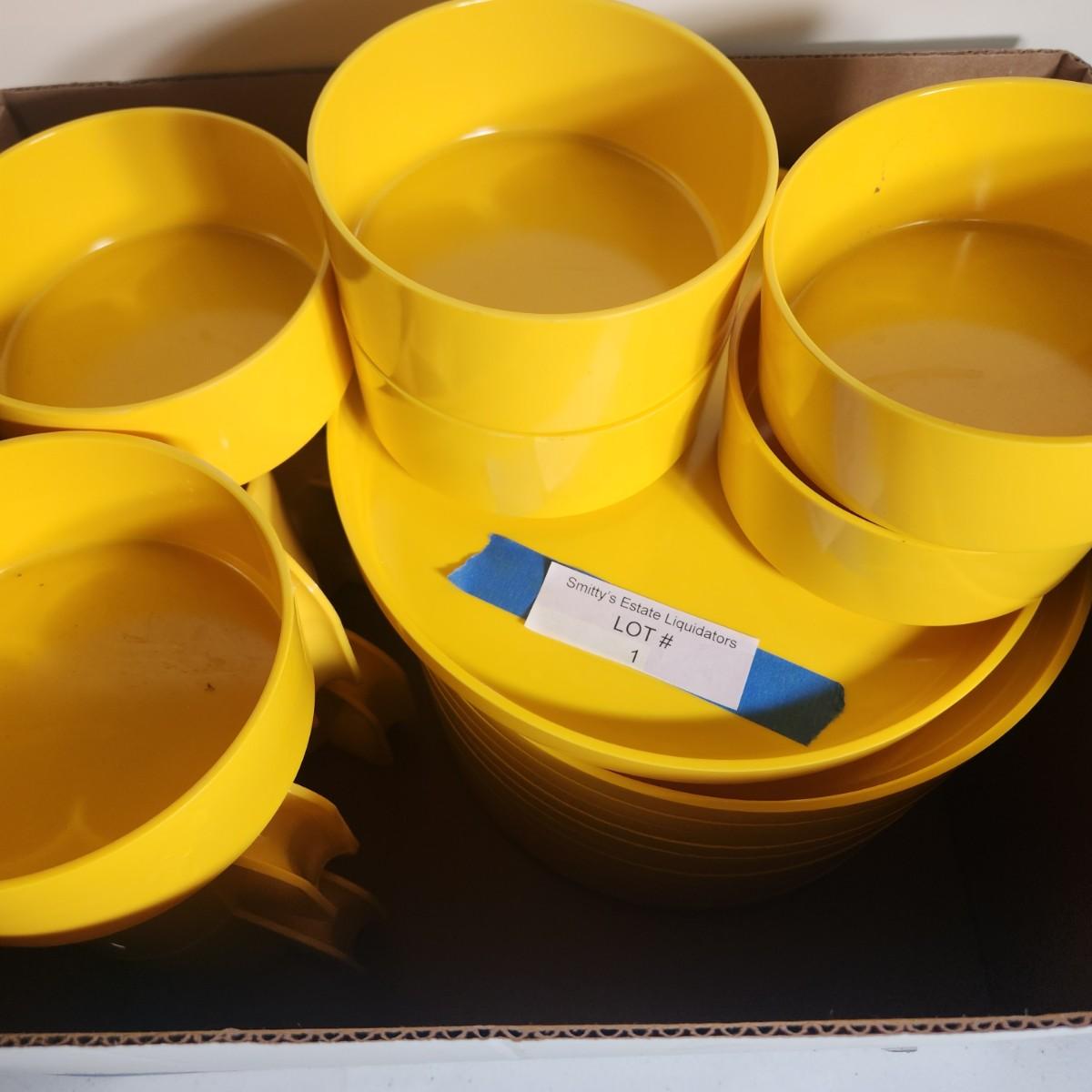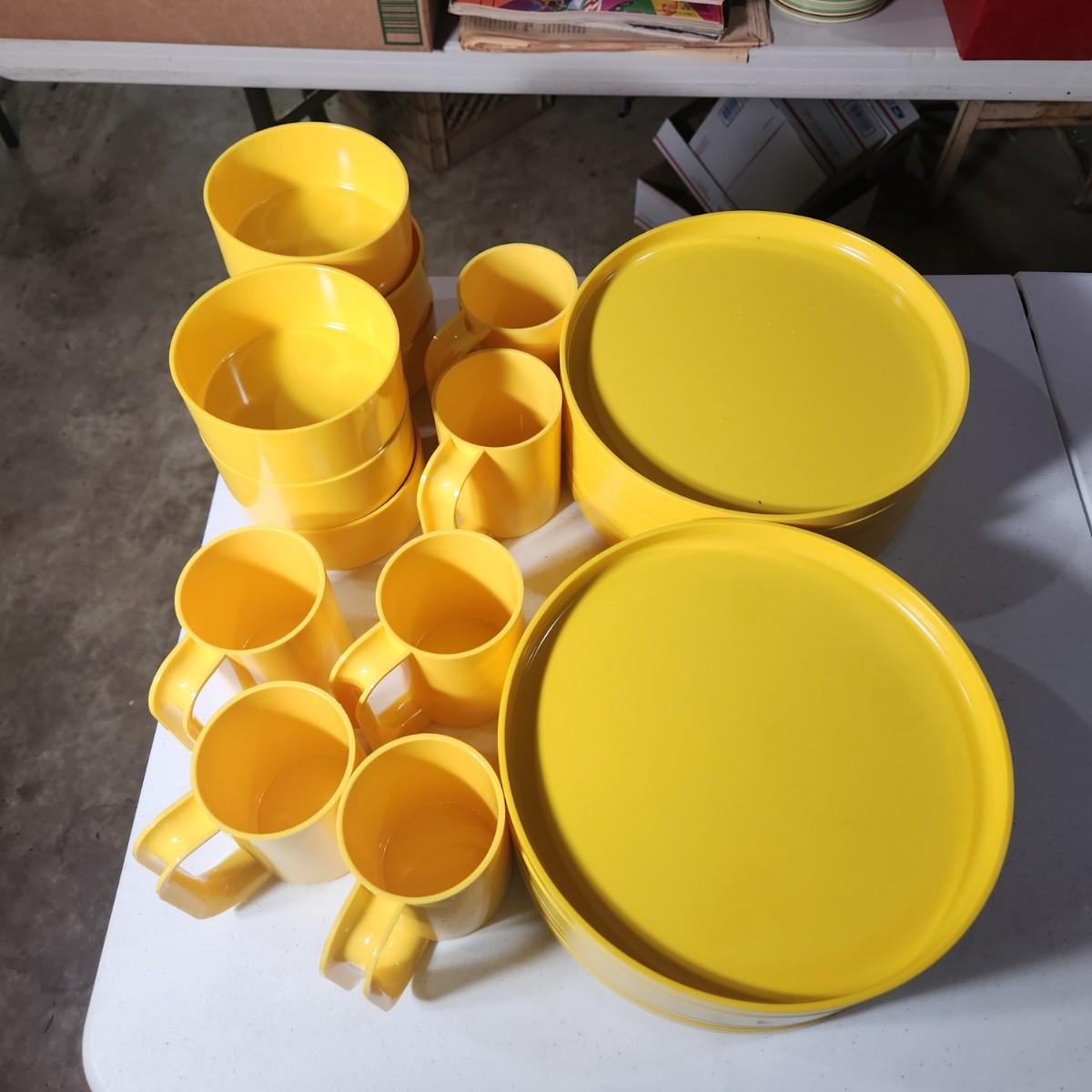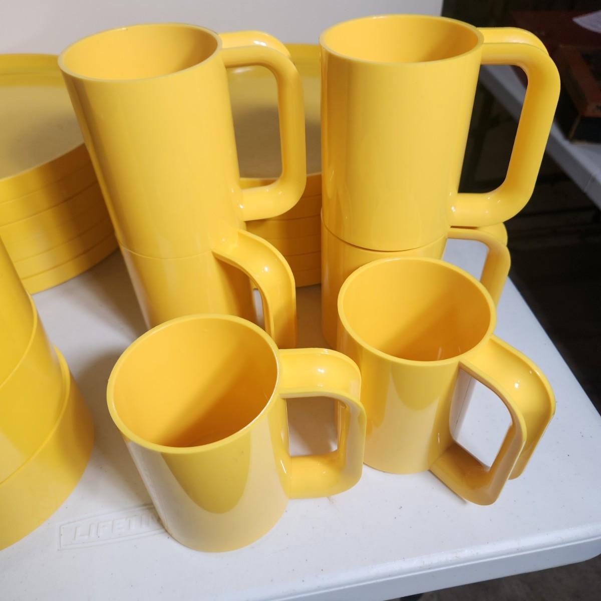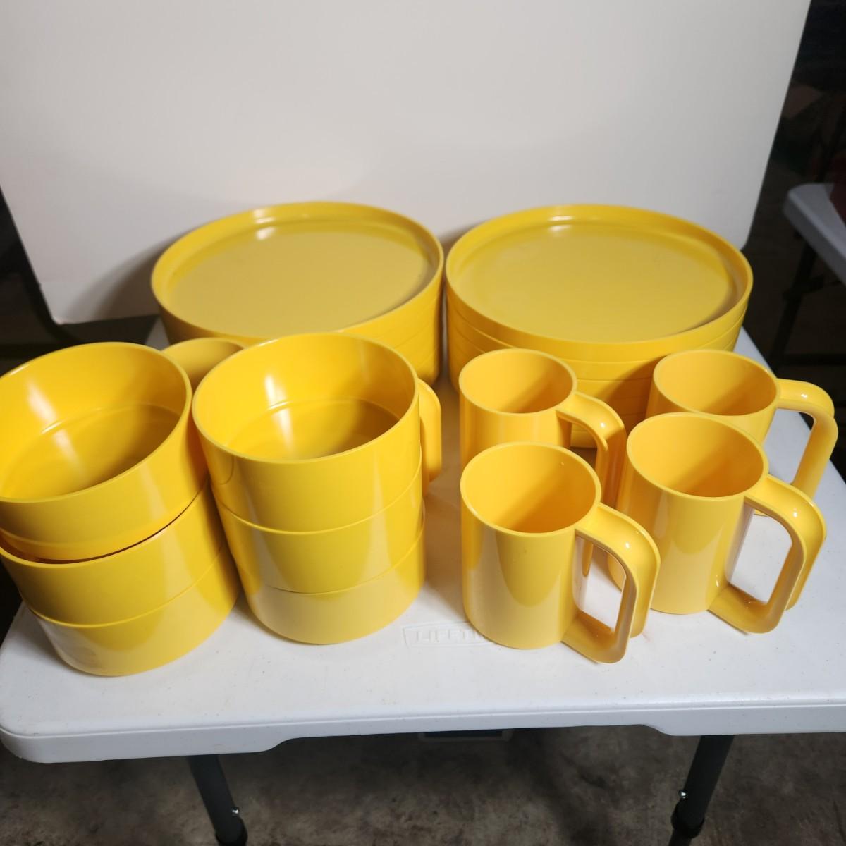 Lot of Vintage Heller Design Vignelli Dinnerware Melamine Plastic Stackable Yellow Set