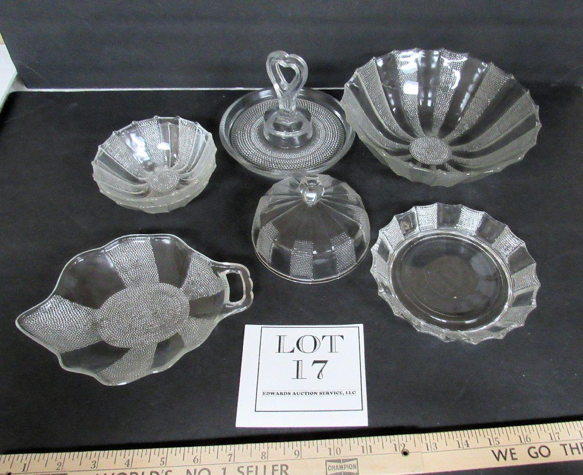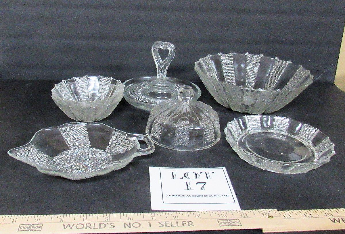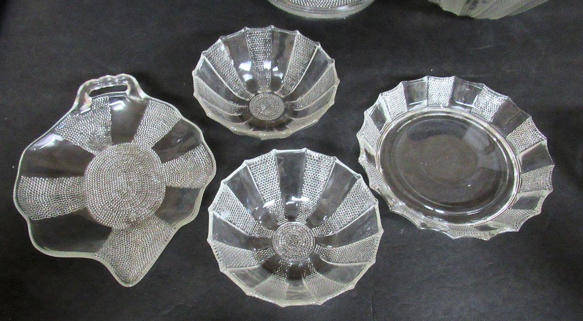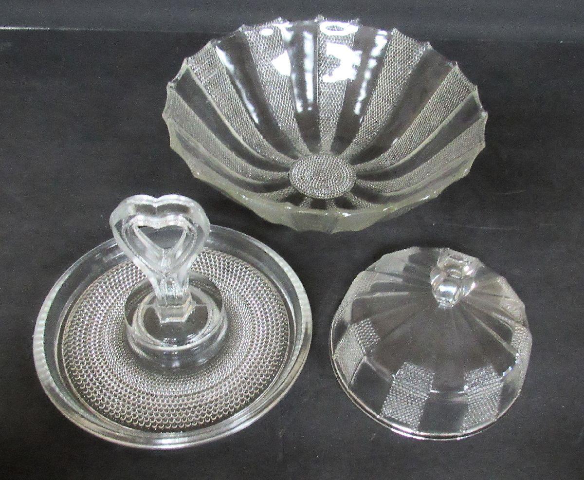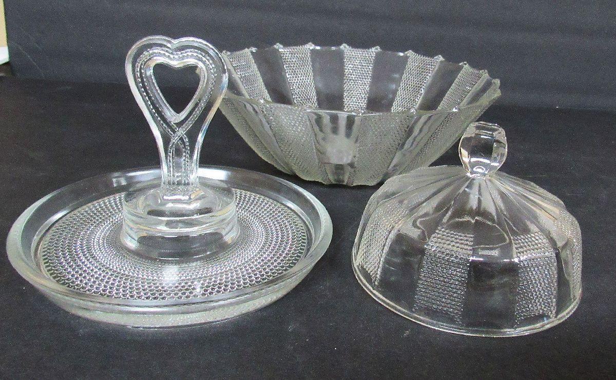 Lot of Vintage Jeanette Glass Dewdrop Pattern Dishes, Butter Cover