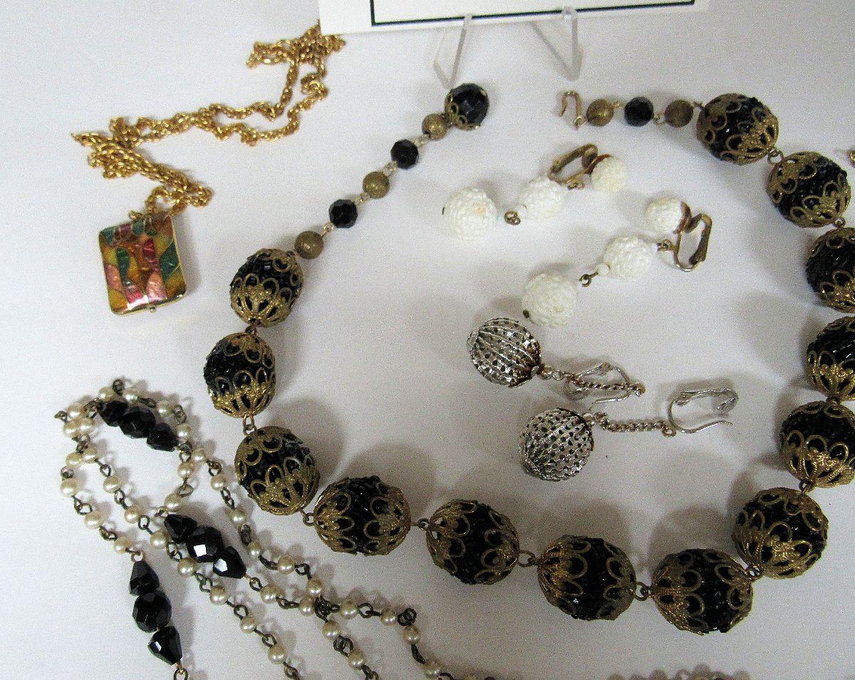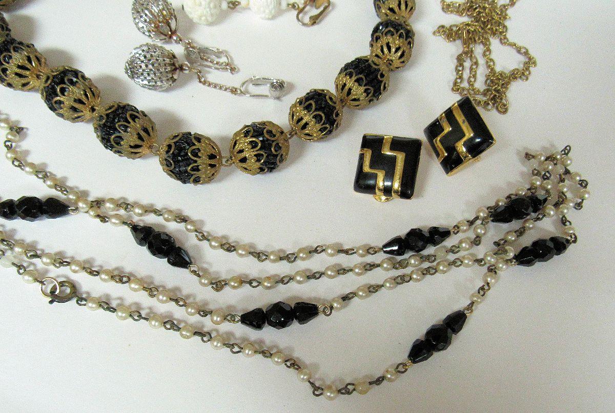 The silver and white earrings sets have some slight discoloration. The square earrings have minor wear, as do the chains. Shipping is available at shipping cost plus $5.00 handling fee on one box, $10.00 handling fee on two boxes, $15.00 handling fee on 3 boxes. Helps cover shipping materials and labor cost.