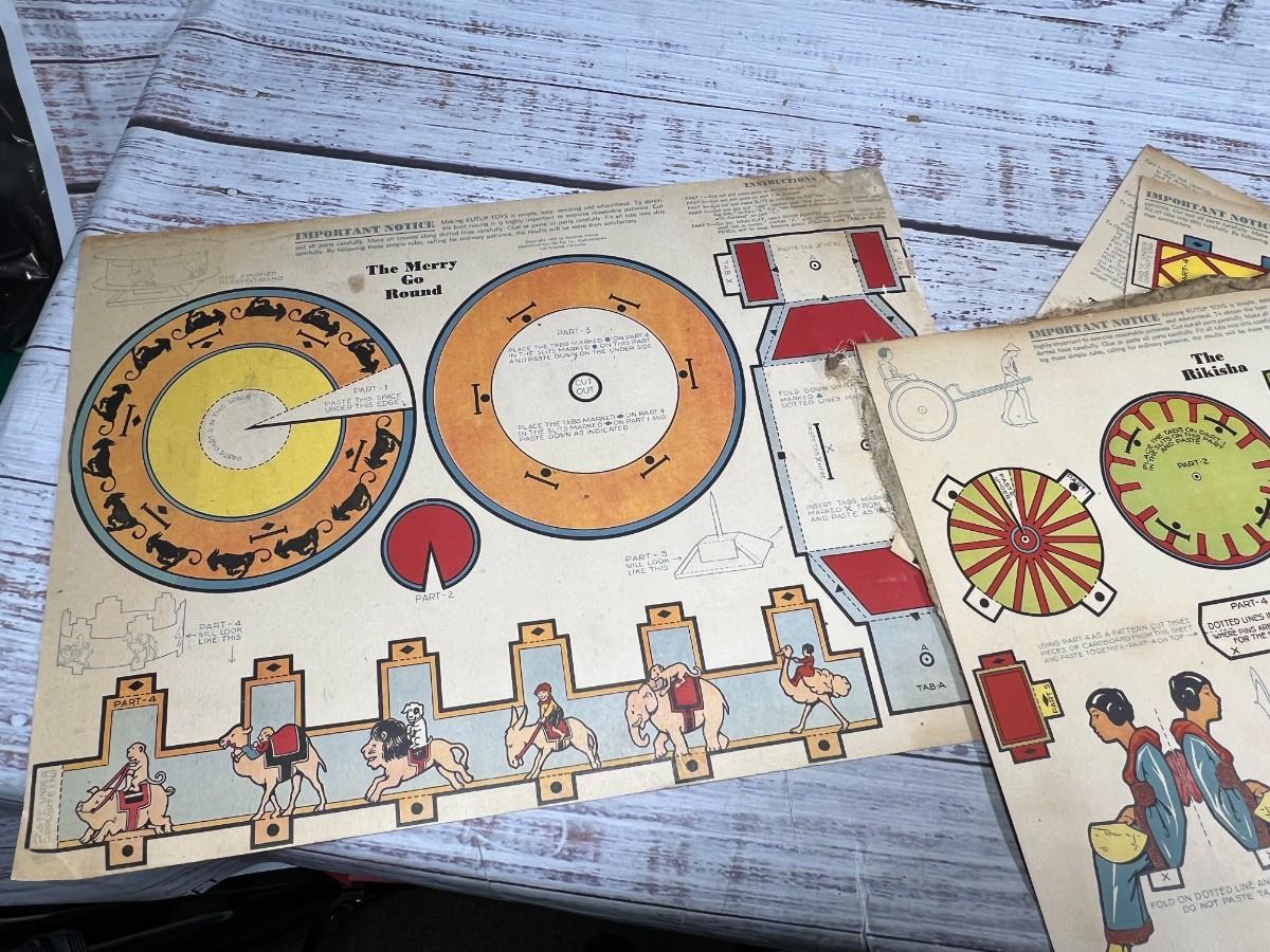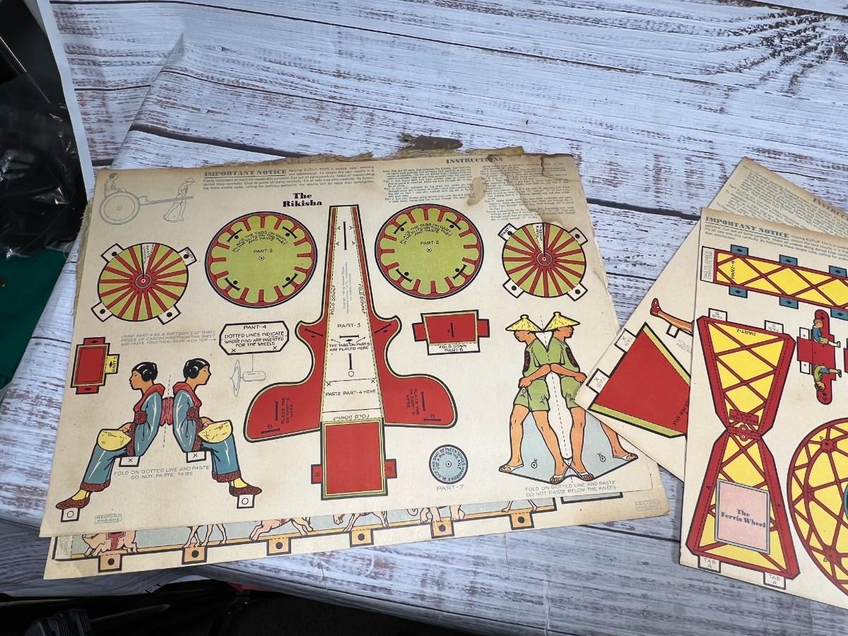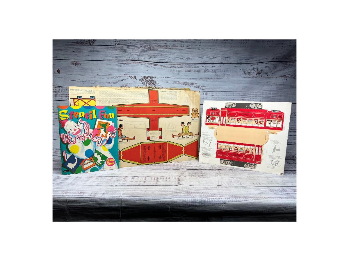 Lot of Vintage Kids Craft Stencils Book & Unused Paper Models, the stencil book has some wear to the pages and the paper models have light vintage wear and is unused. Check pictures for more details.