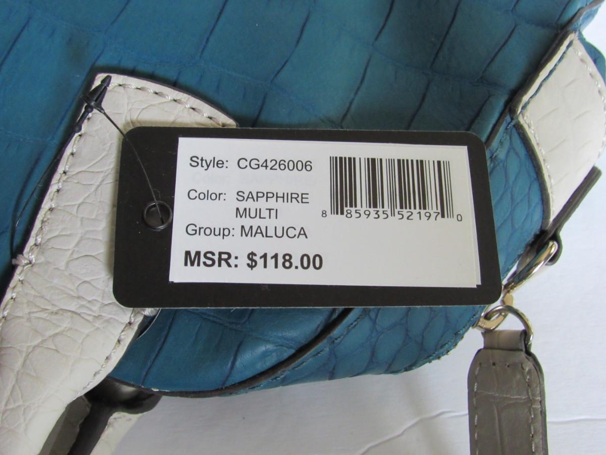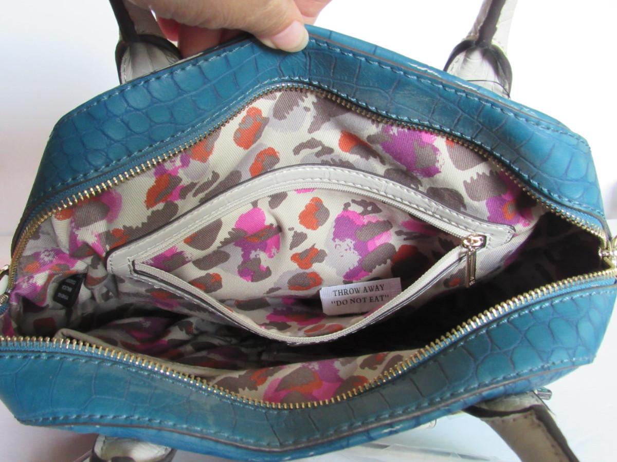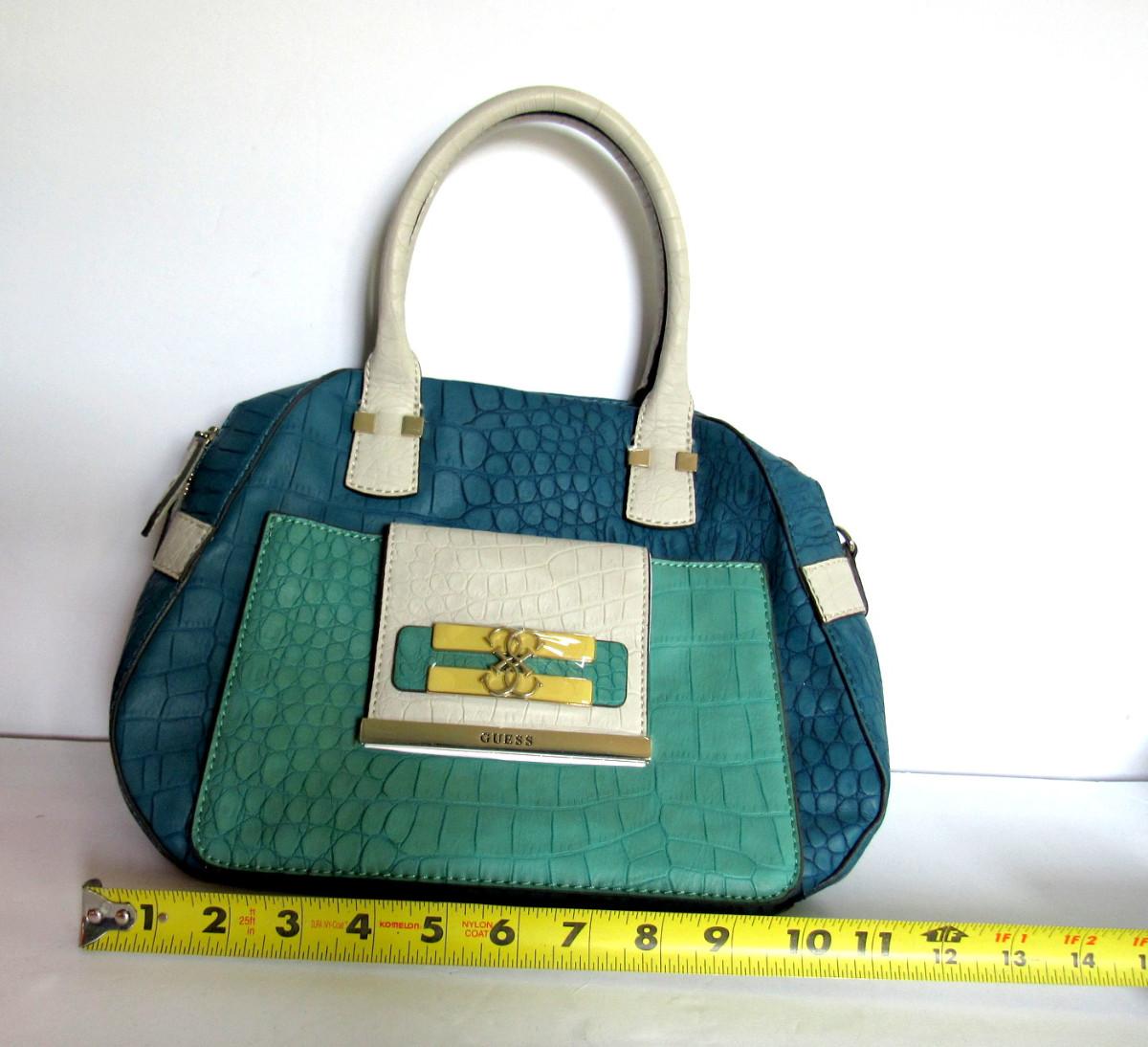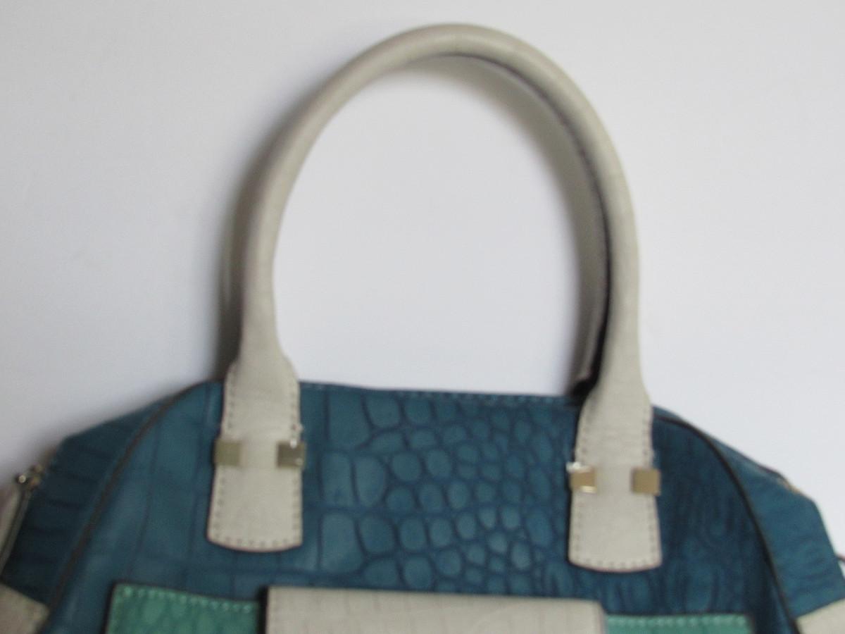 This handbag has never been used, but it is not perfect. See all photos. It has a lot of little surface tears on the dark teal sides and bottom seam. Have no idea what happened to it since it still has its original price tag on it and was never used. The film was never removed from the hardware. I am wondering if the lady's cat scratched it up some how? Anyway, it is still very usable, great zippers and hardware, good solid straps. Nice pockets. Includes extra long shoulder strap. If you can overlook the scratches, it is a nice bag. Some wear and staining on the Minnie Mouse one. Shipping is available at actual shipping cost plus $5.00 handling fee per box for supplies/labor. See our terms for details. All sales are final. Condition notes may not be all inclusive, we may miss some issues as most vintage items are not in mint condition and have some degree of wear, paint loss, etc, but we always try to note obvious damage.