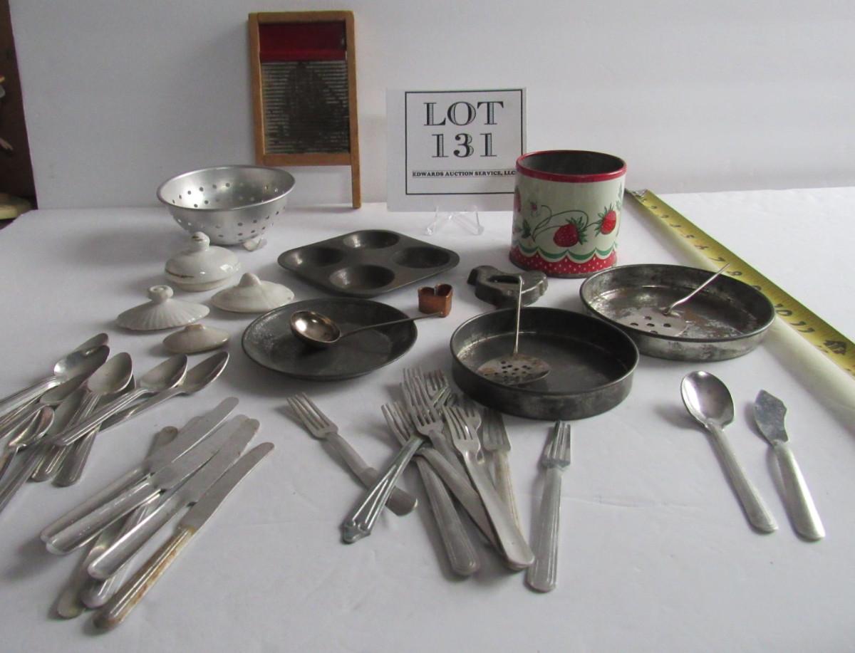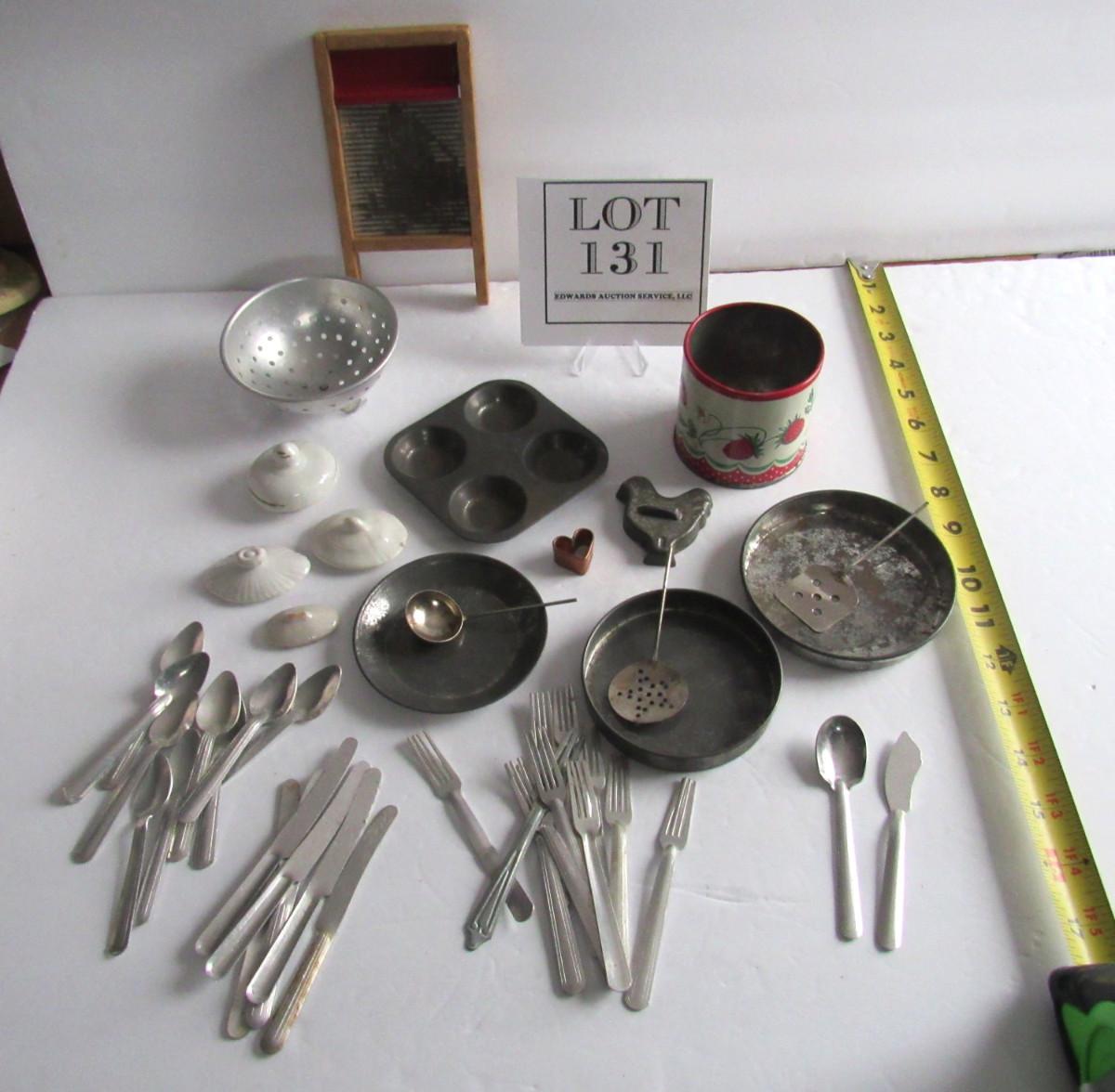 Lot of Vintage Kid's Kitchenware Toys and Washboard
