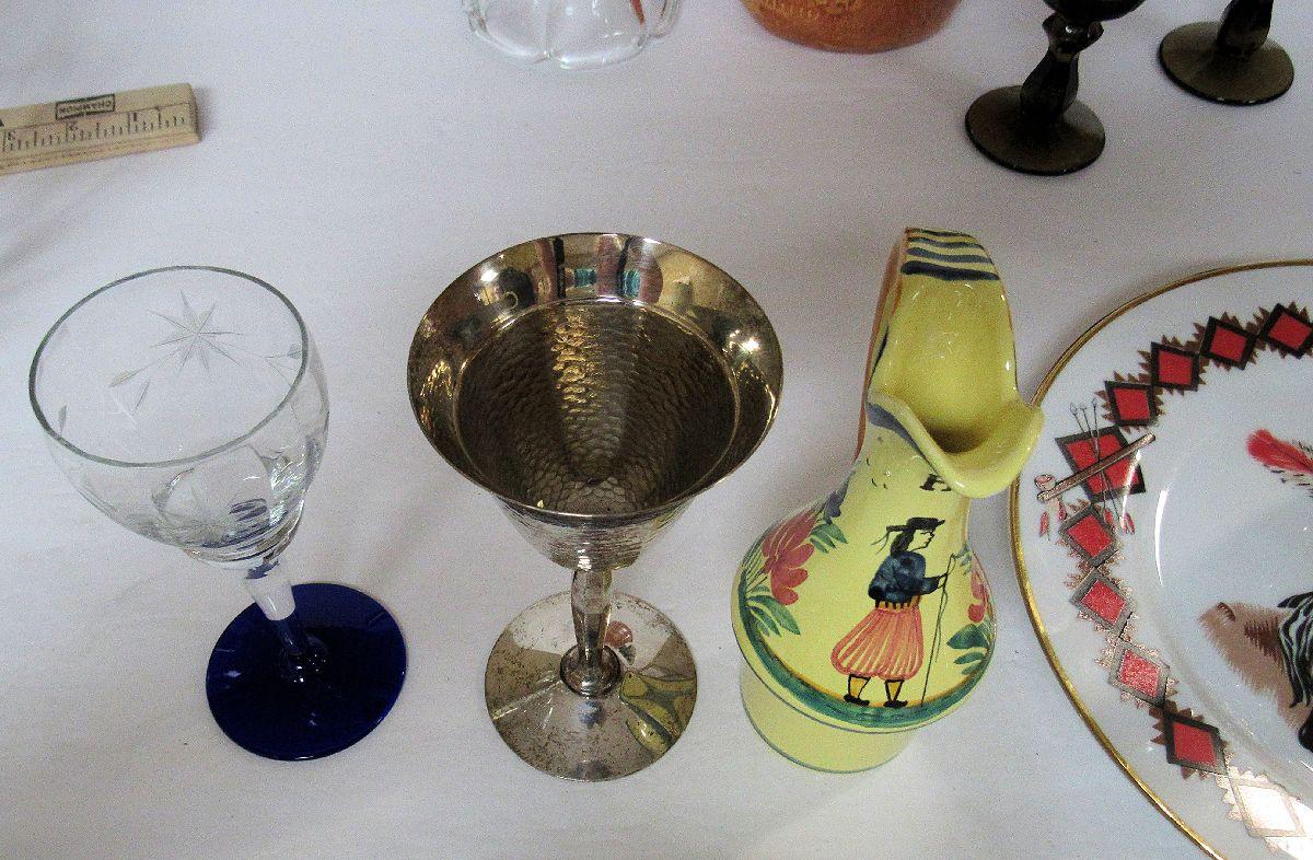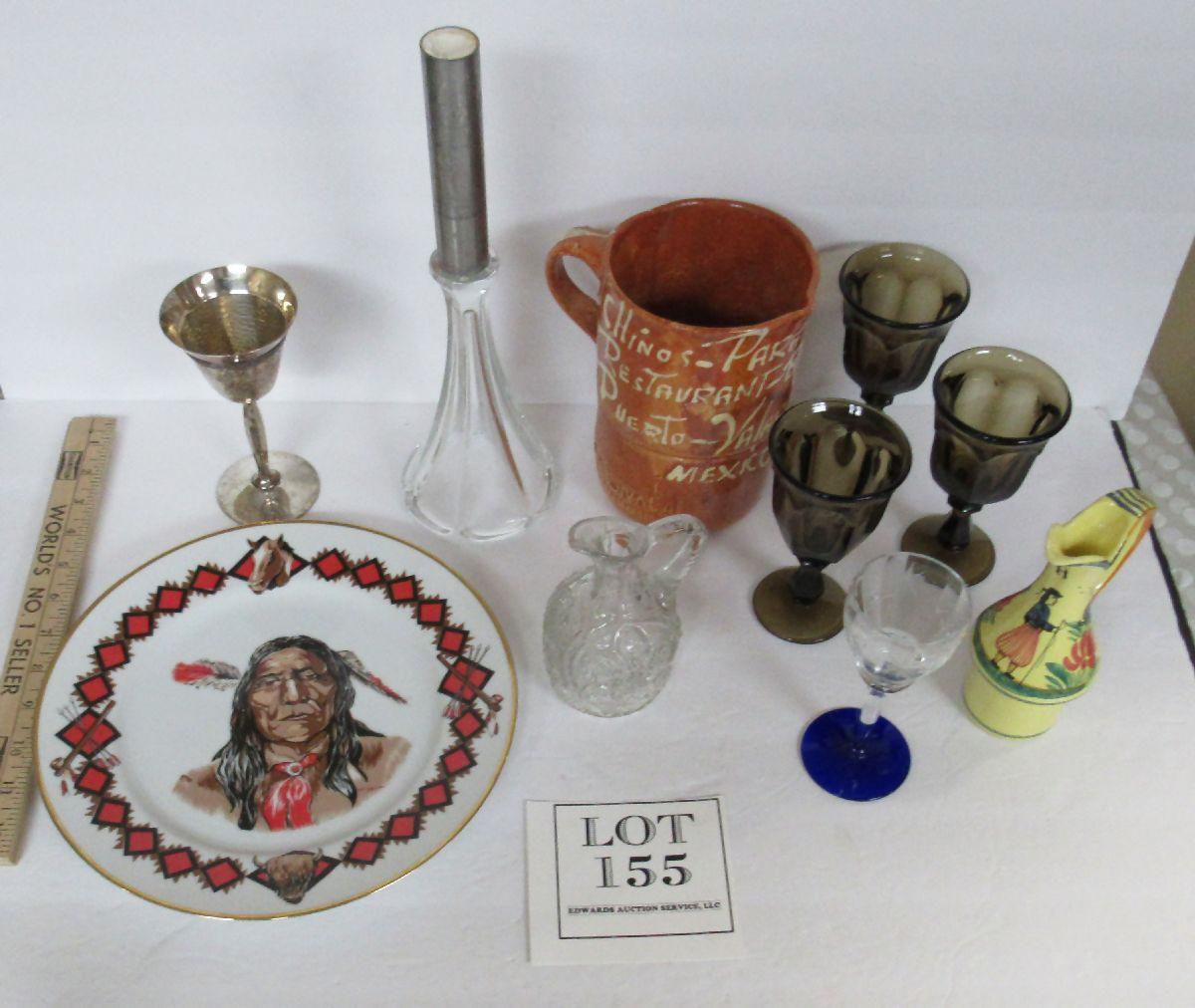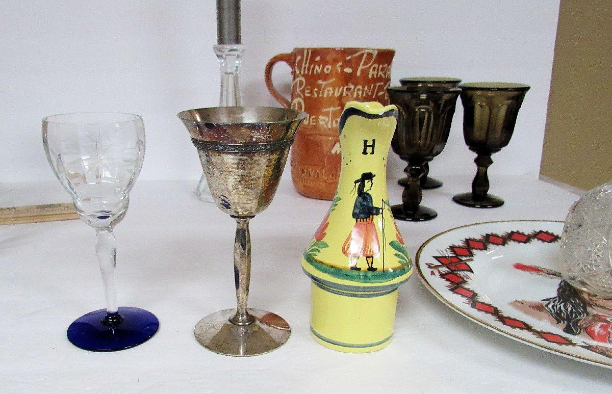 Lot of Vintage Kitchen Glass, Plate, Pitcher, Heisey Glass Candle Base, More