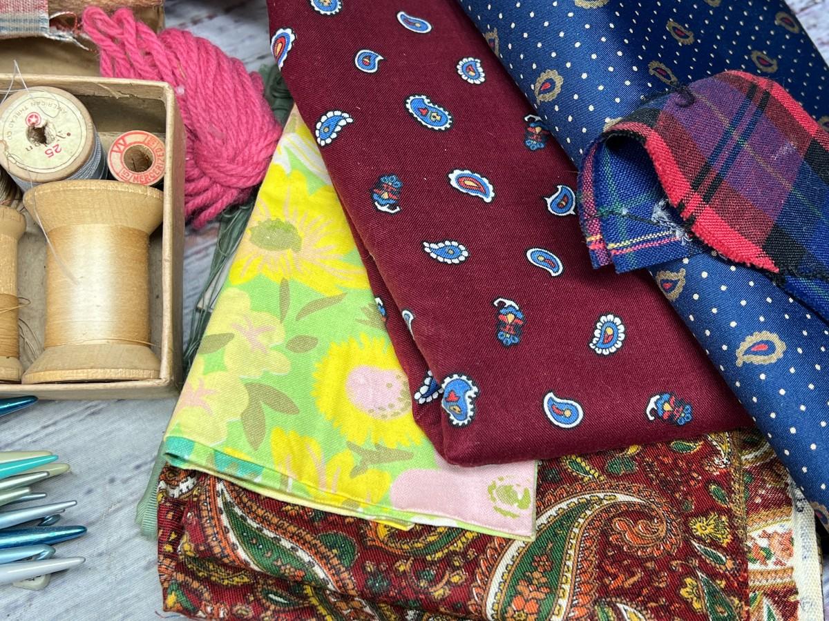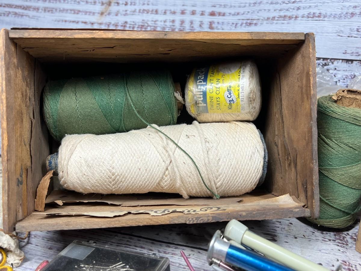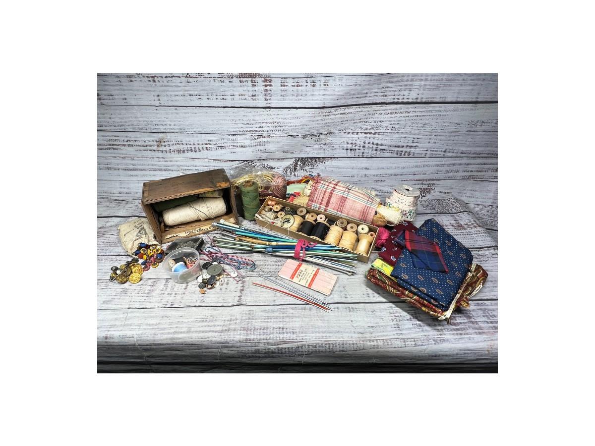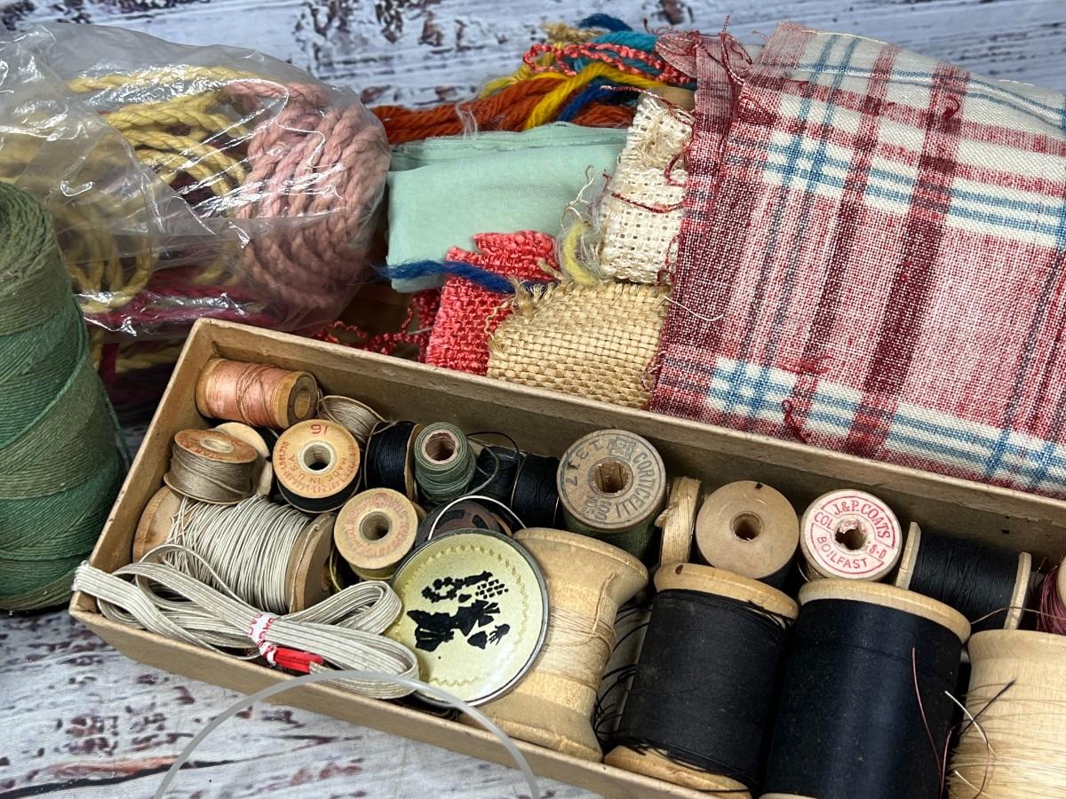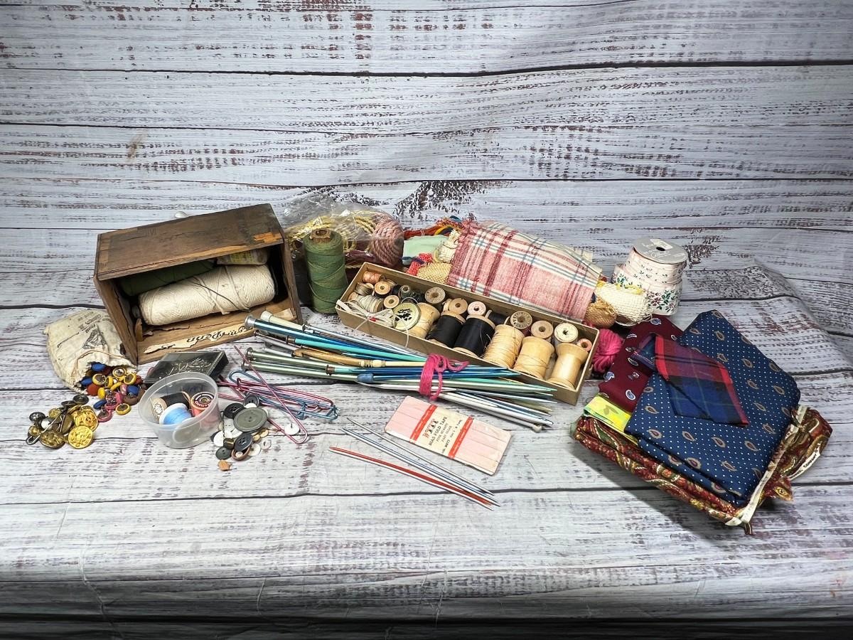 Lot of Vintage Knitting Crocheting Needles, Sewing Materials, Spools & More