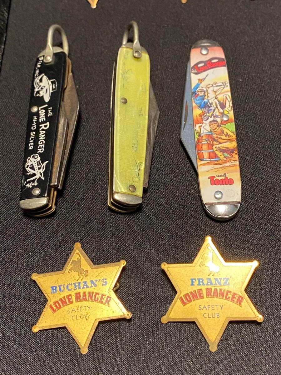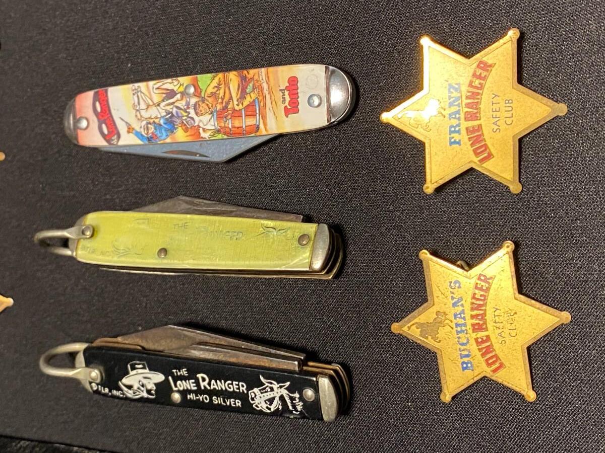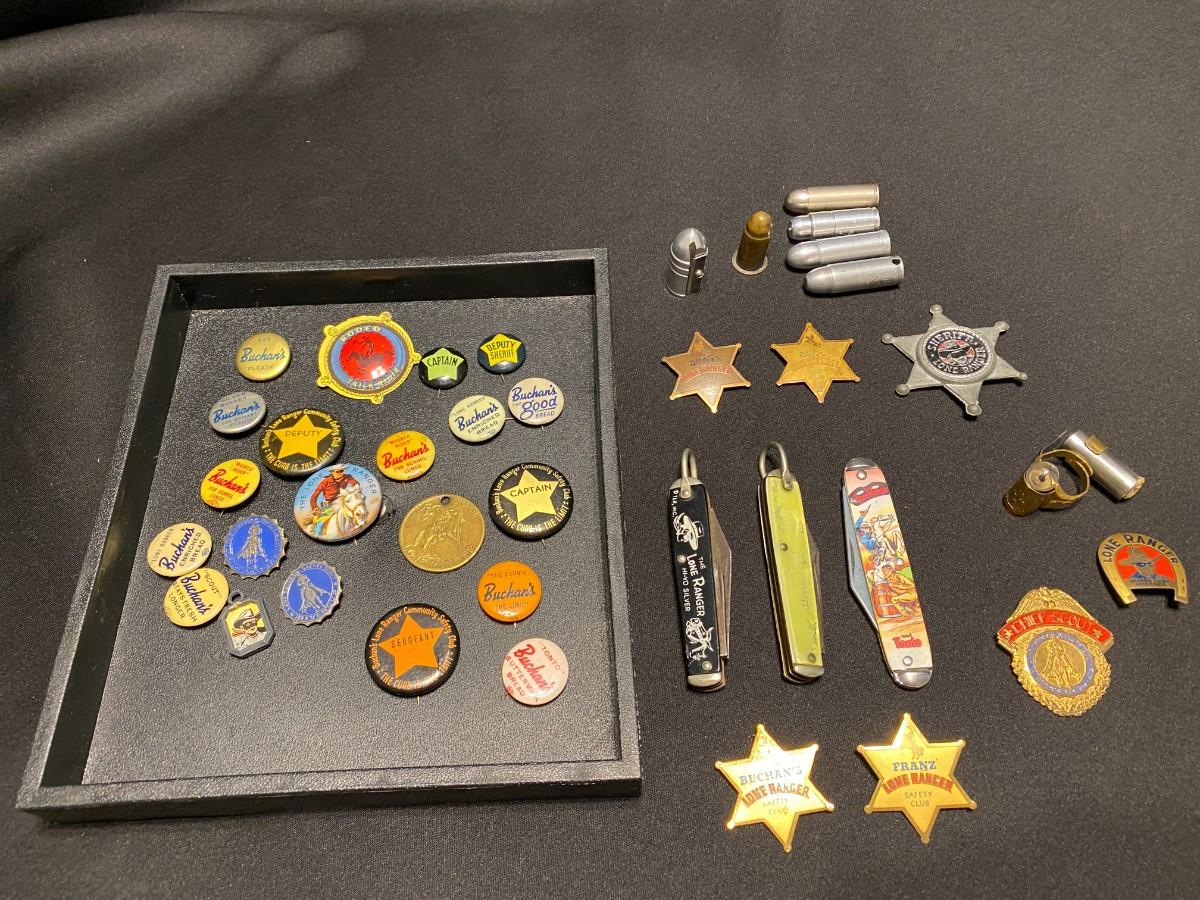 Lot of Vintage Lone Ranger Badges Buttons Pins Ring Pocket Knife Bullets
