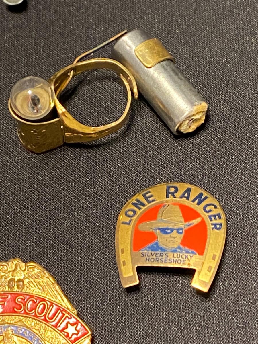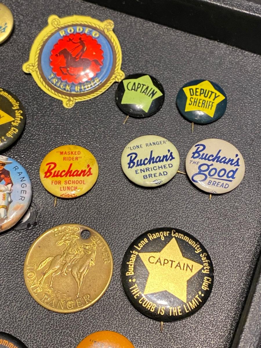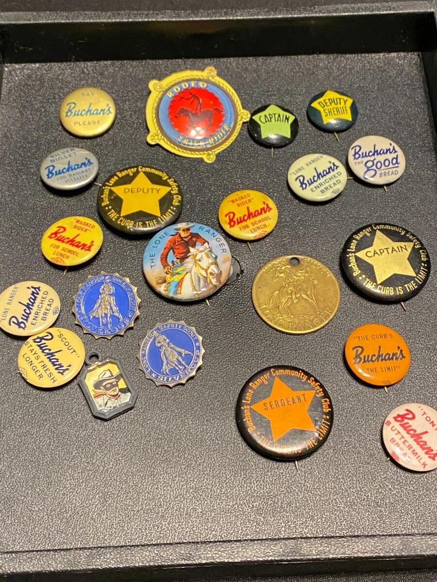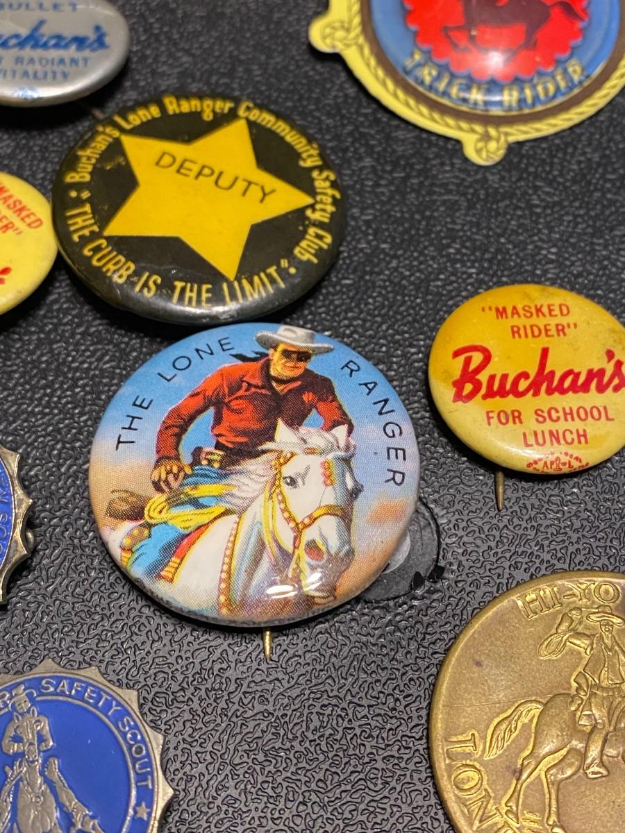 Lot of Vintage Lone Ranger Badges Buttons Pins Ring Pocket Knife Bullets